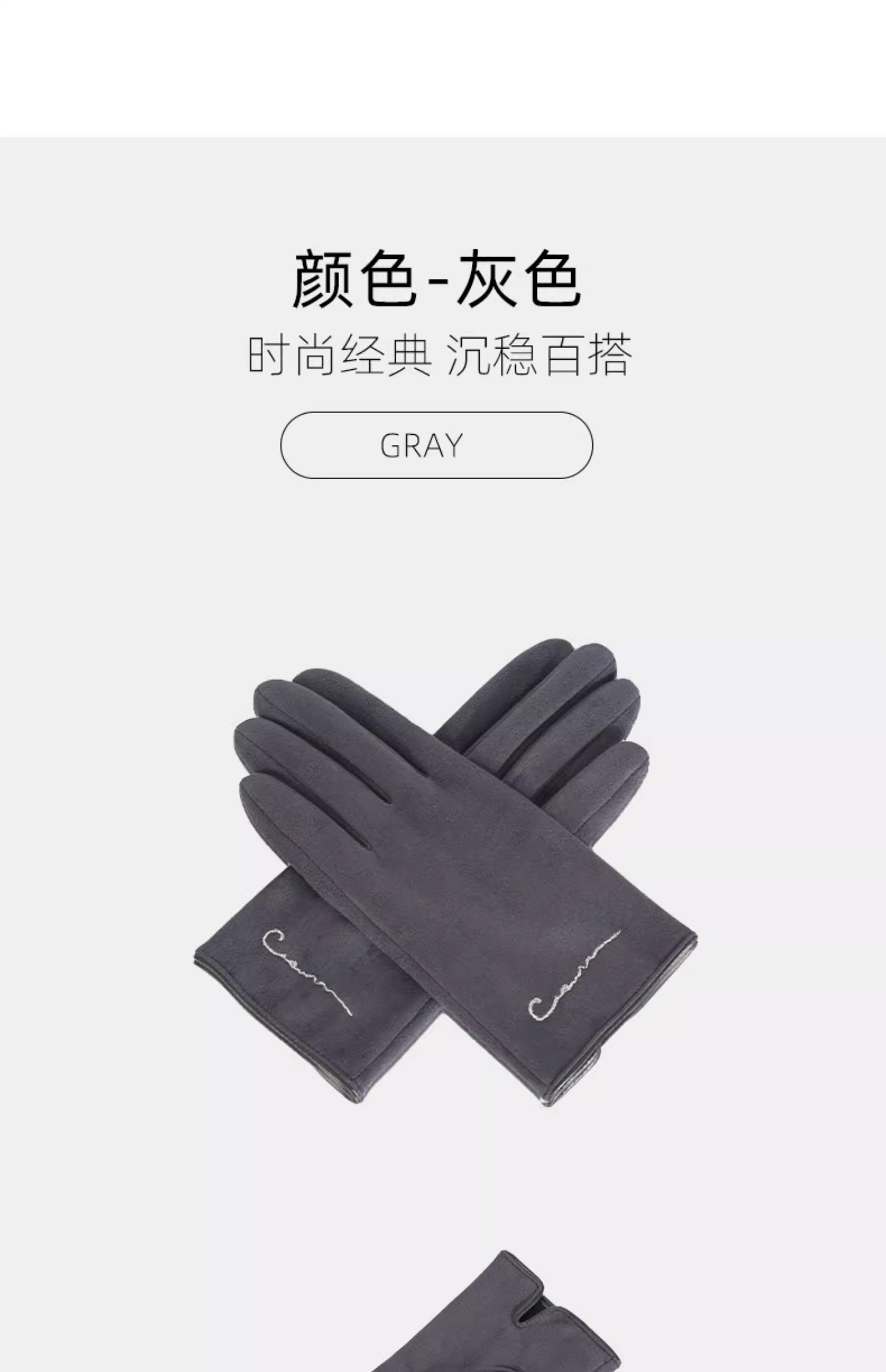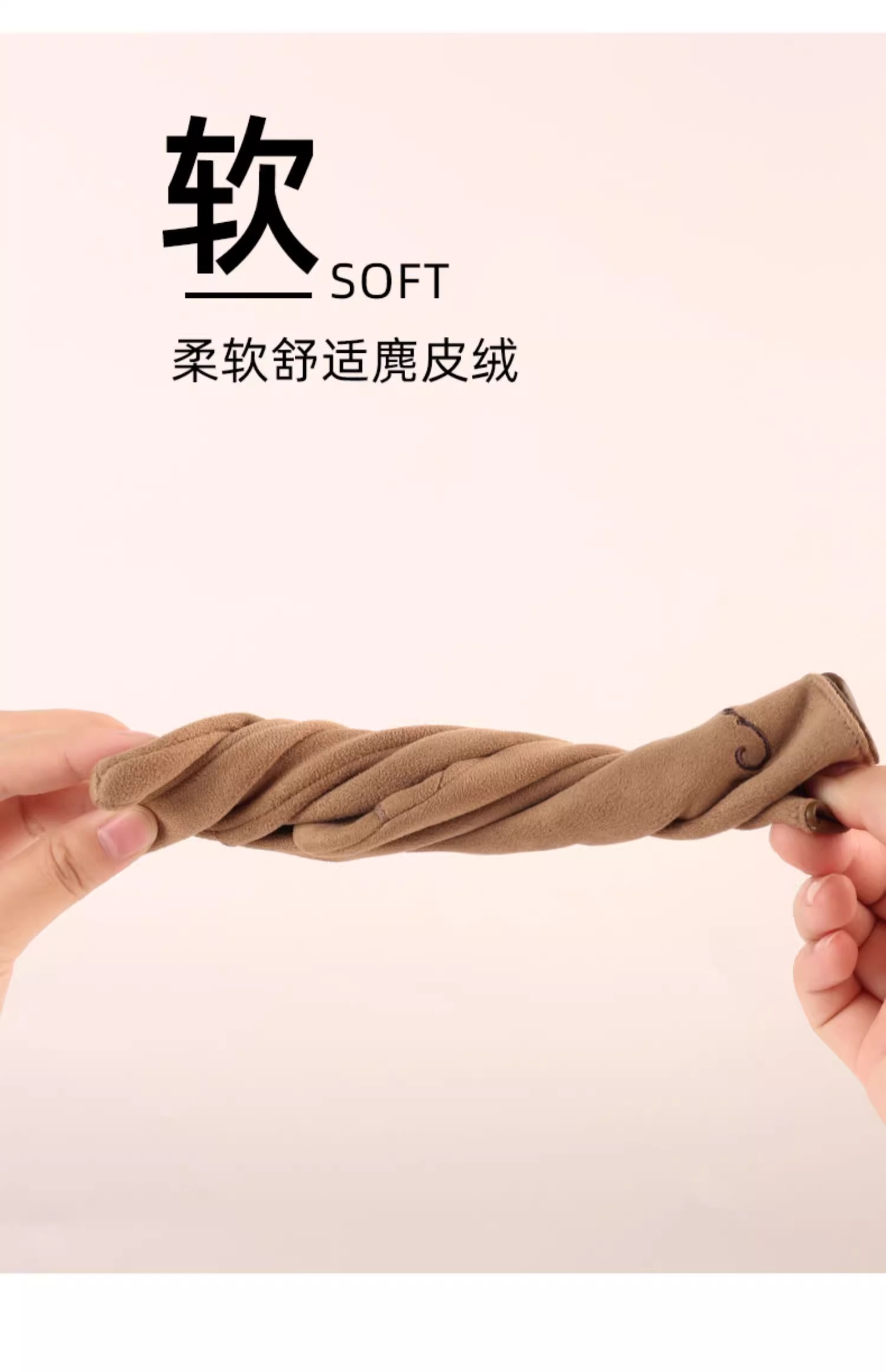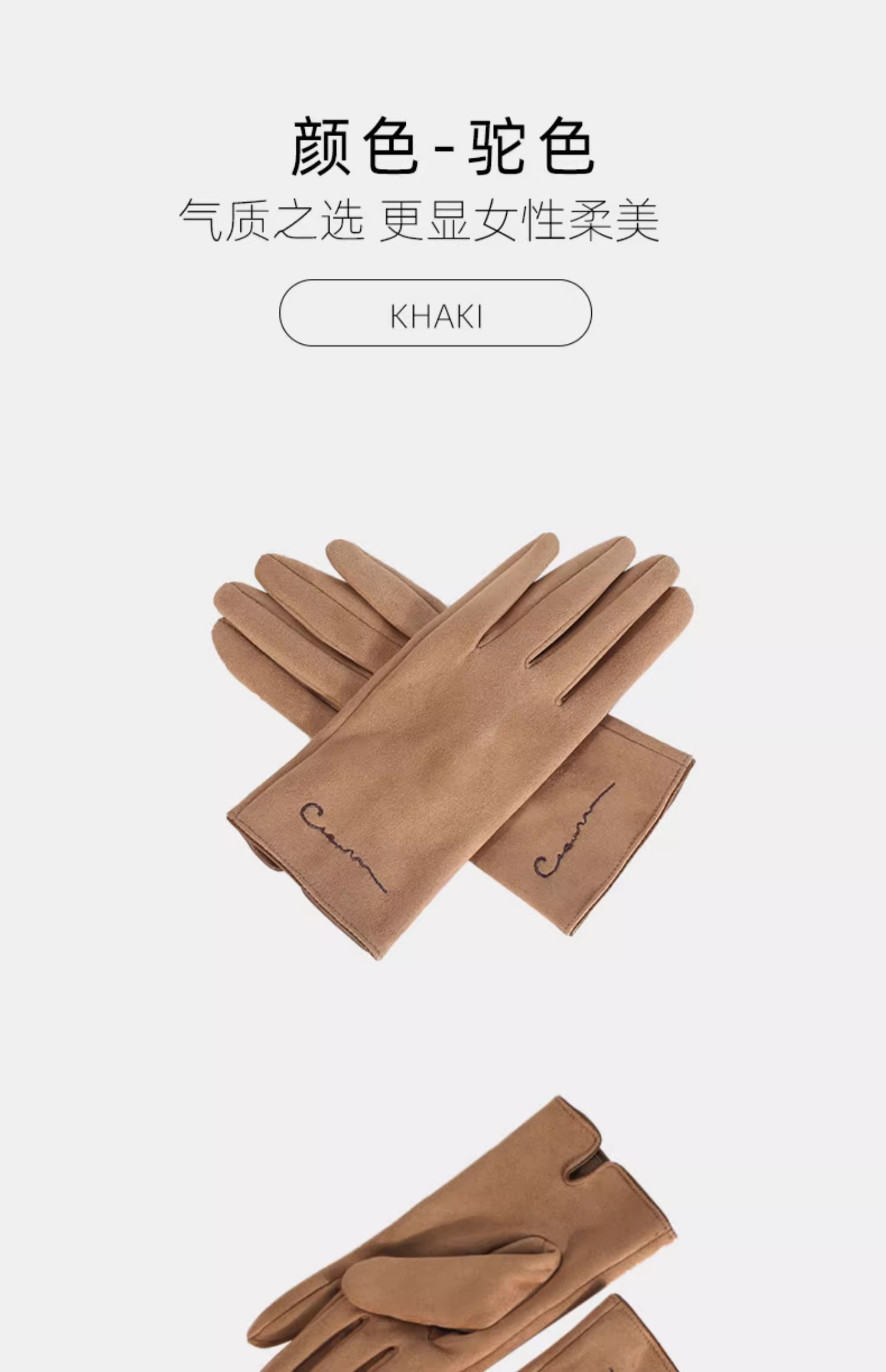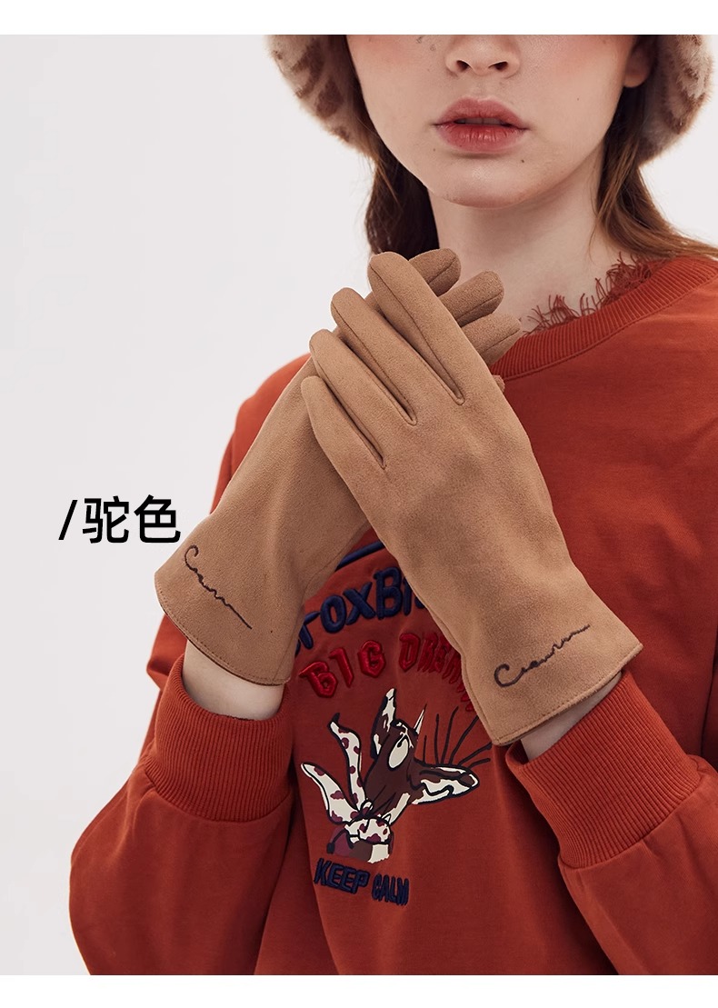 CACUSS冬季麂皮绒手套女 柔软细腻加绒保暖纤细修长 防风防寒抗起球 食指拇指开口设计可触屏