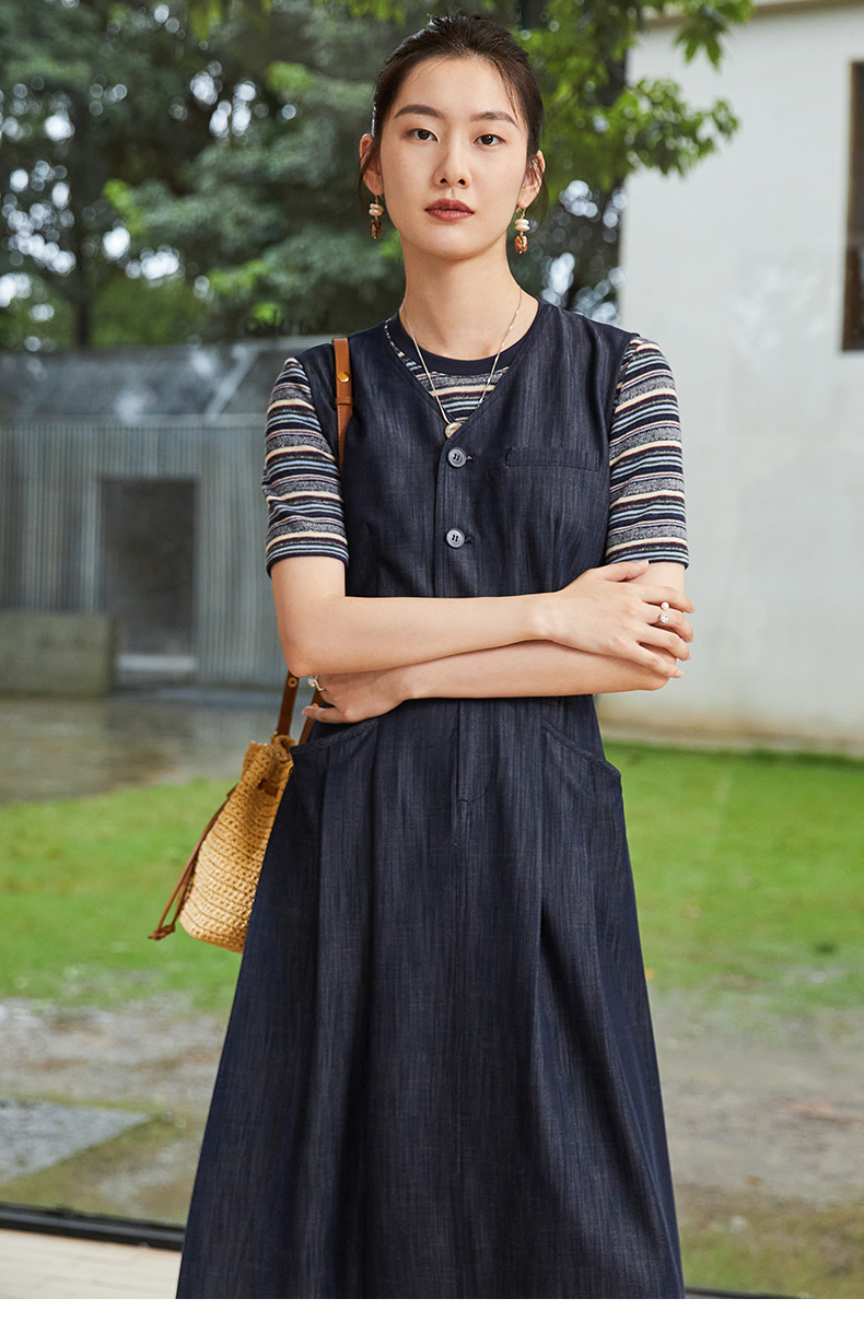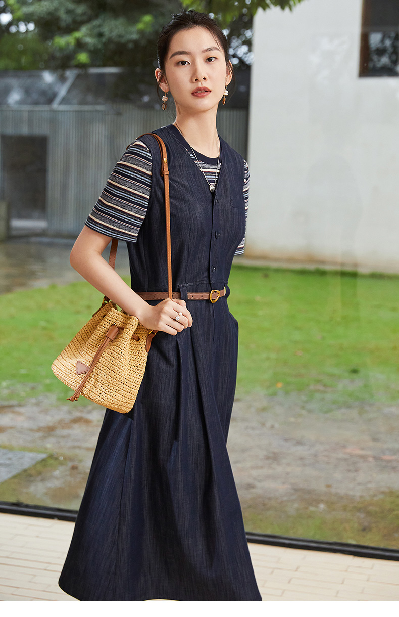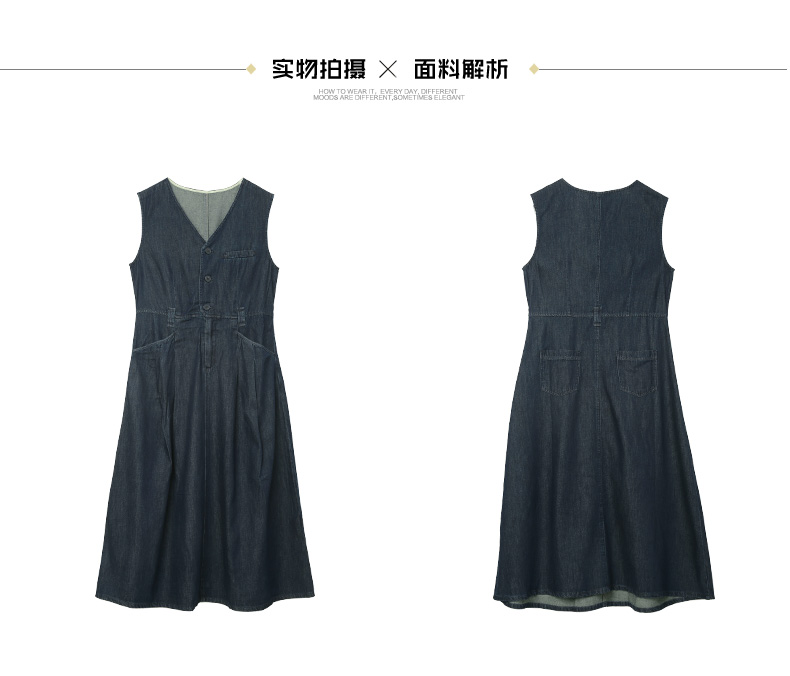 V 领牛仔背心裙女 2026 春装新品 原色深蓝收腰显瘦通勤中长款 A 字裙