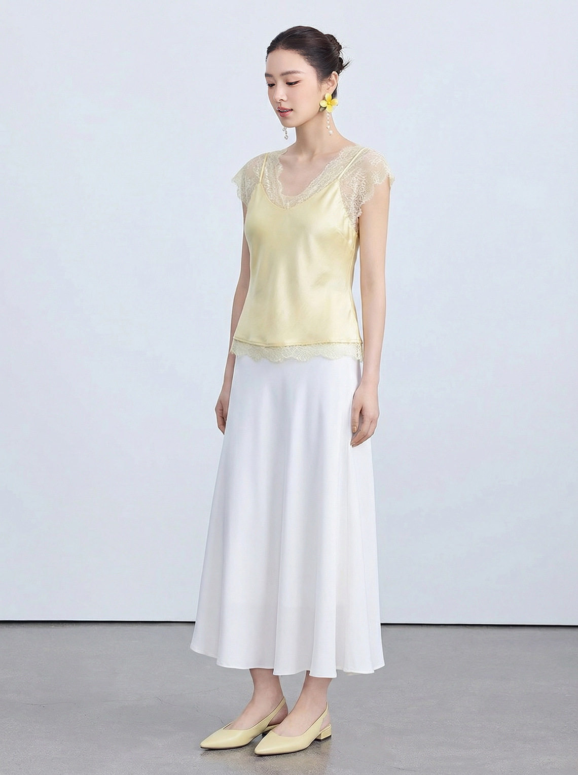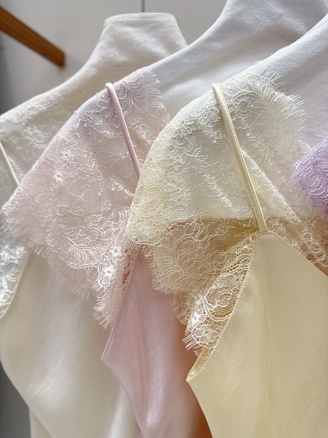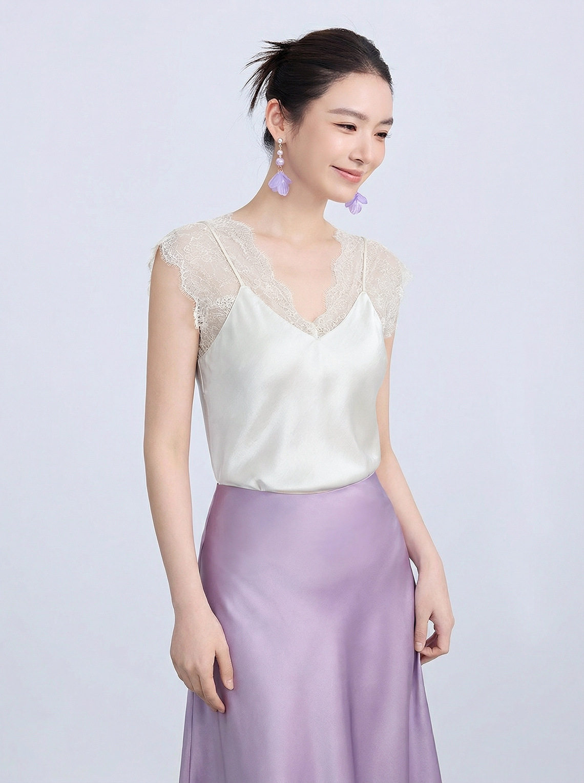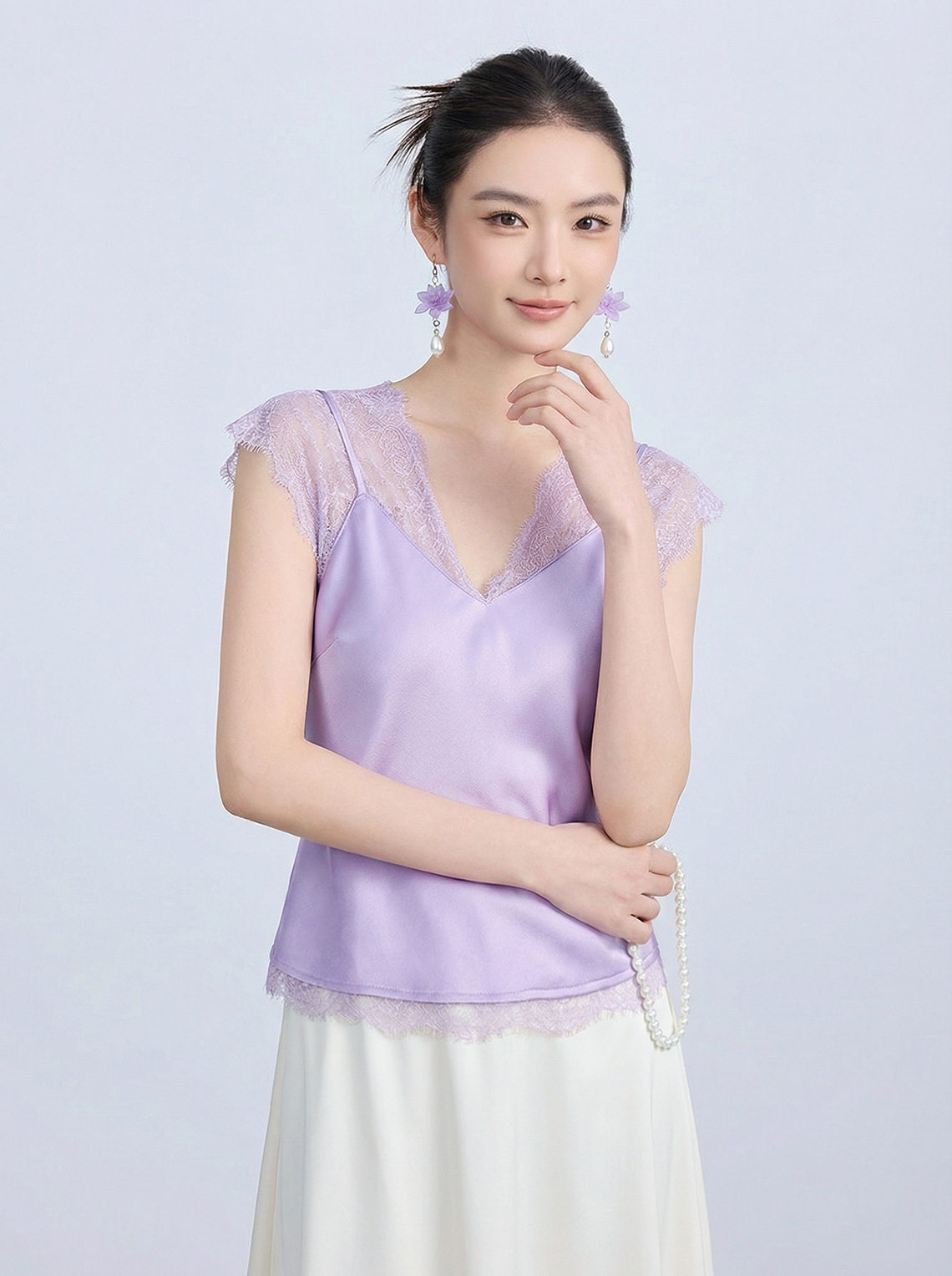 「自」全新升级【铂金会员146/天猫199/差价53】(13606)洛诗琳气质V领蕾丝背心2026夏季新款仿真丝修身显瘦打底上衣
