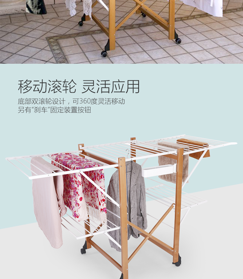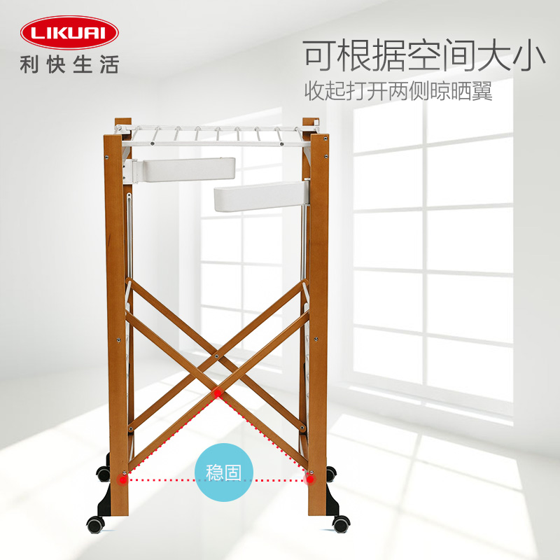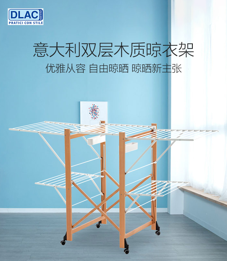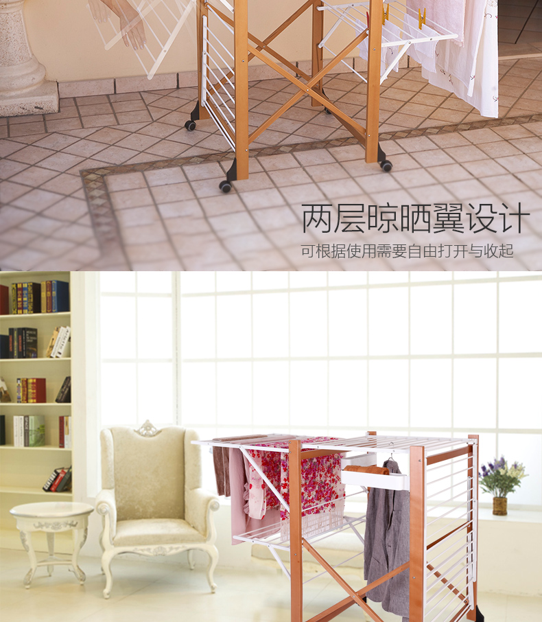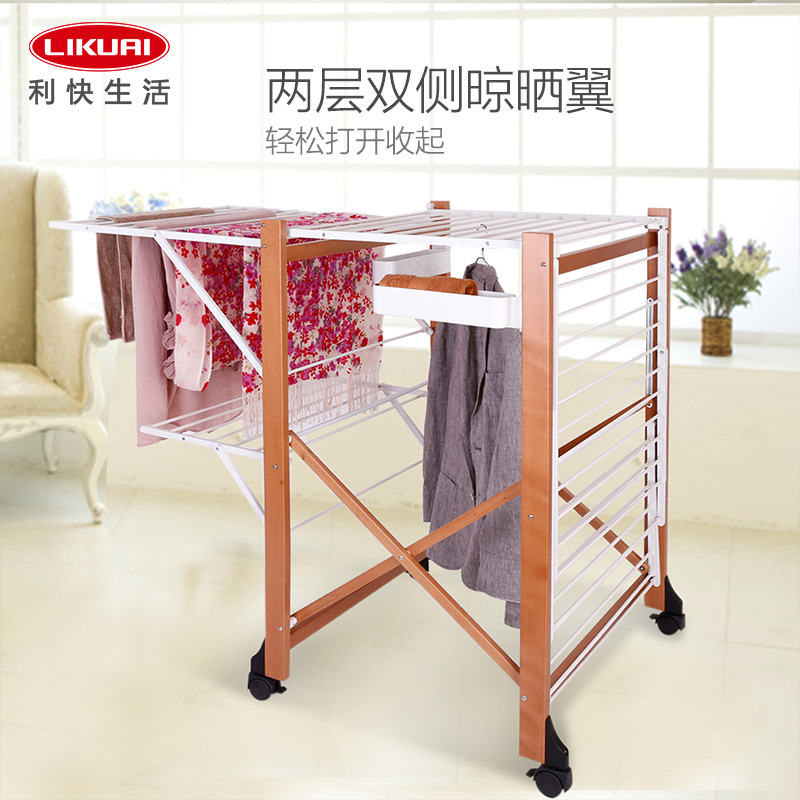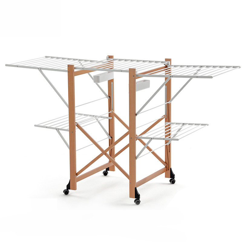 双层可折叠木质晾衣架 27M 配6个小夹子