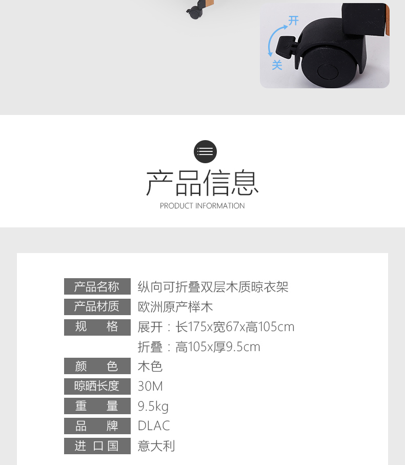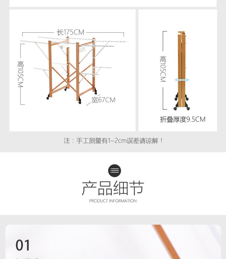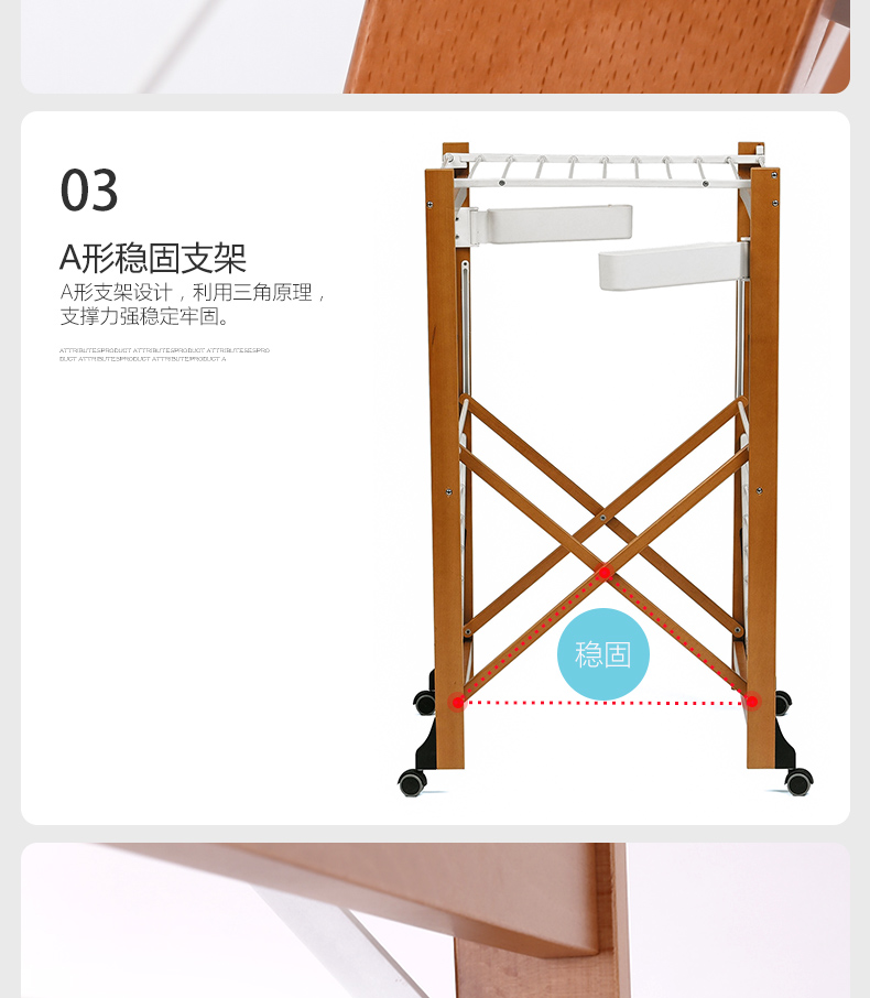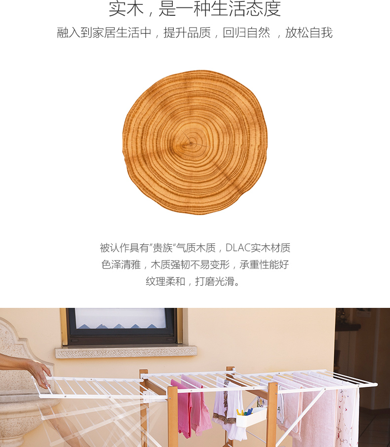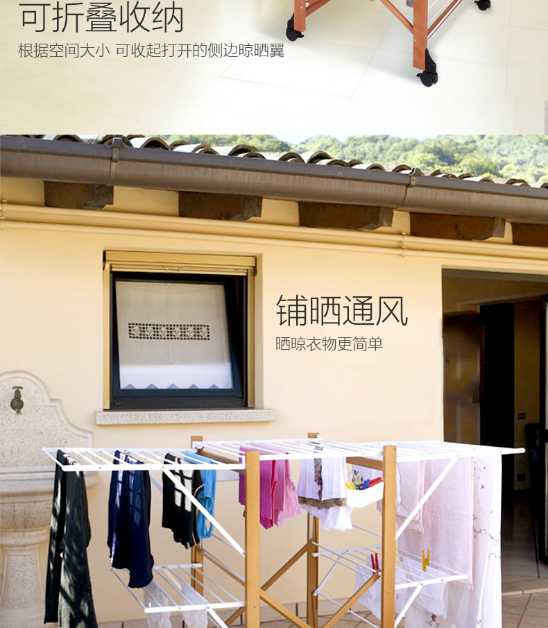 双层可折叠木质晾衣架 27M 配6个小夹子