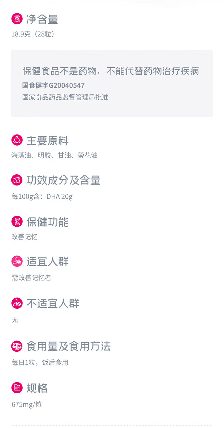葆婴海藻油胶囊DHA孕妇儿童成人18.9g(28粒)