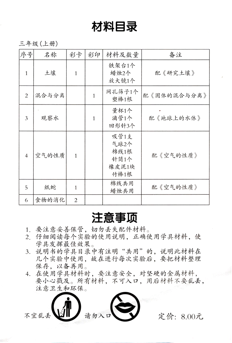 2025秋 小学科学实验册 三年级上册 含配套实验材料 含电子答案 苏教版 3上 小学教辅 科学配套用书 江苏凤凰教育出版社