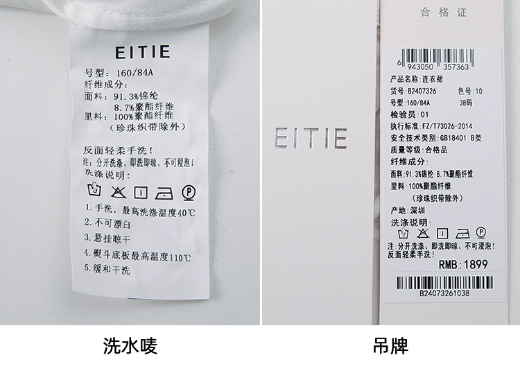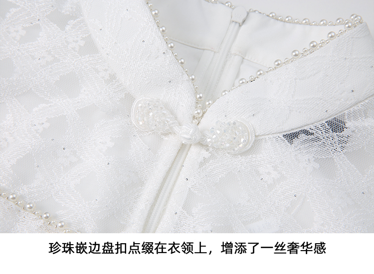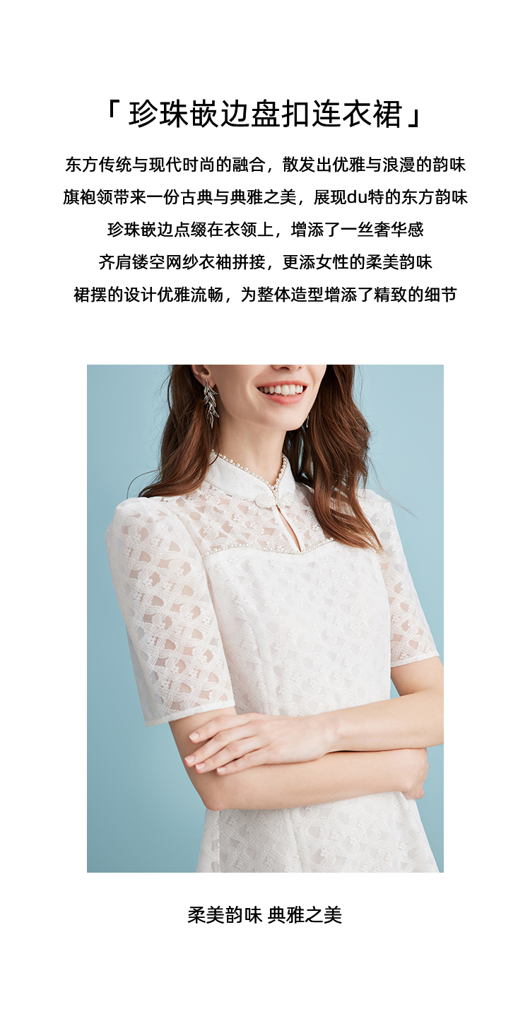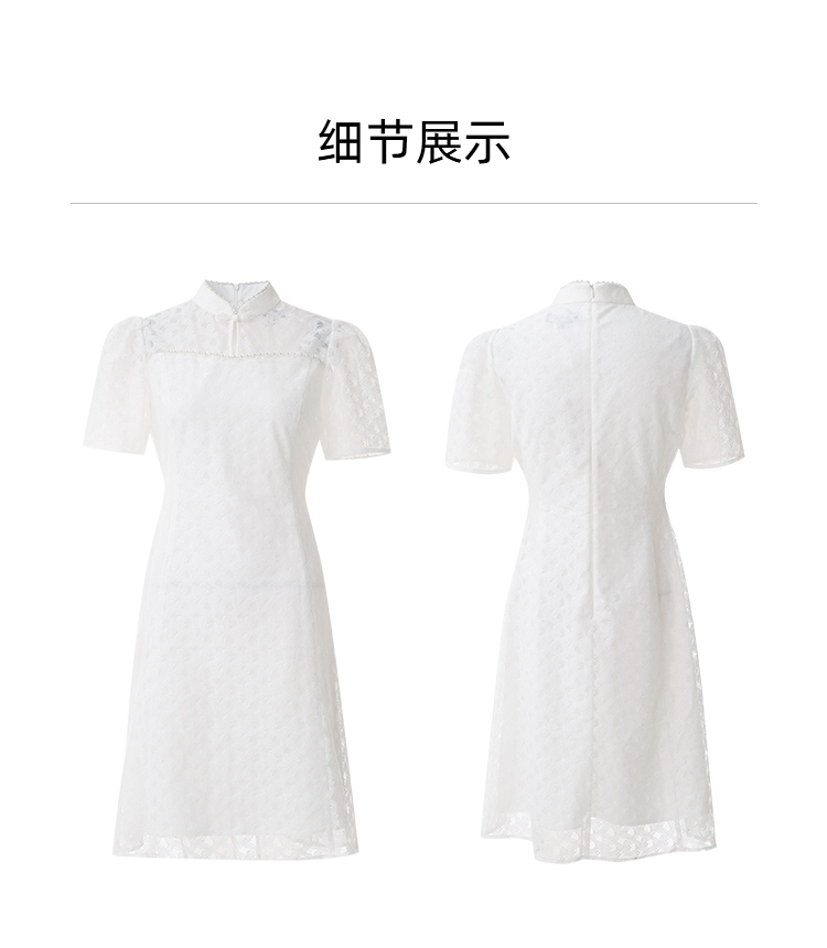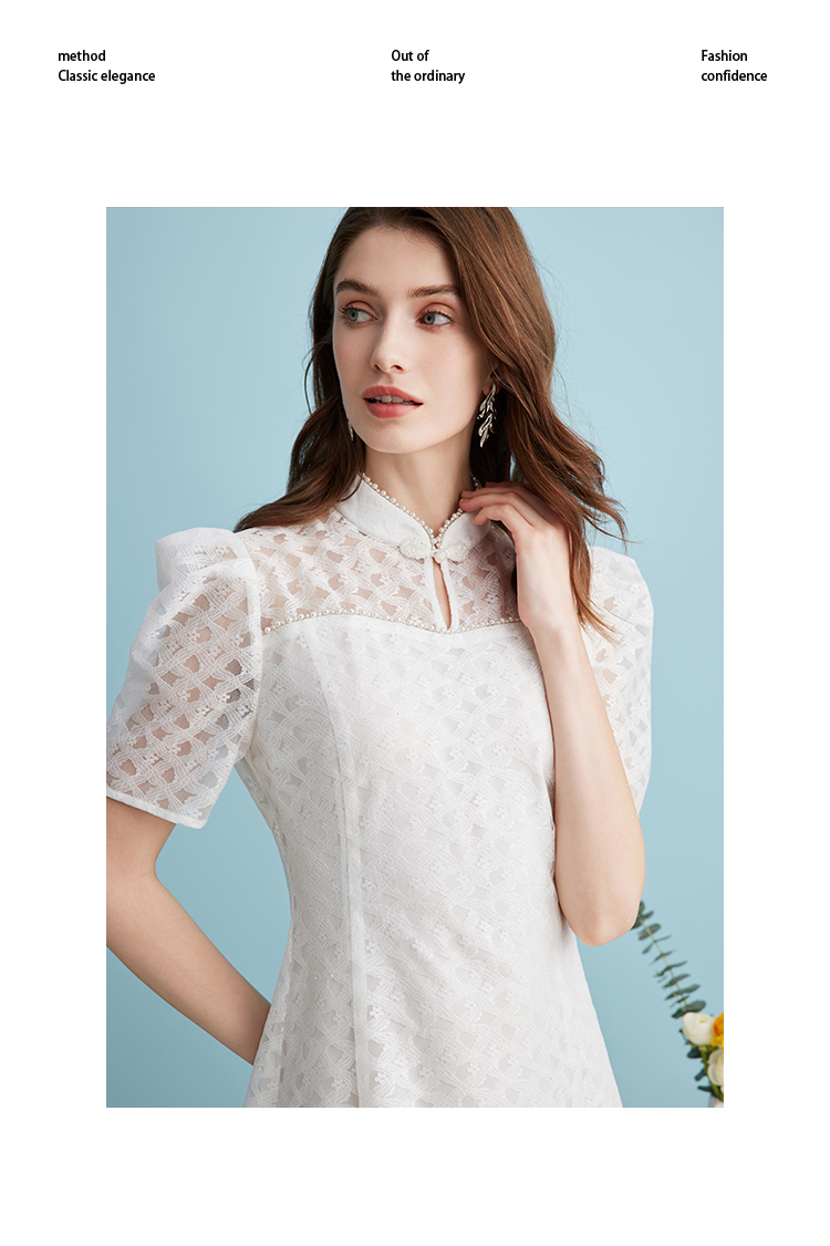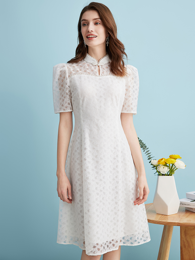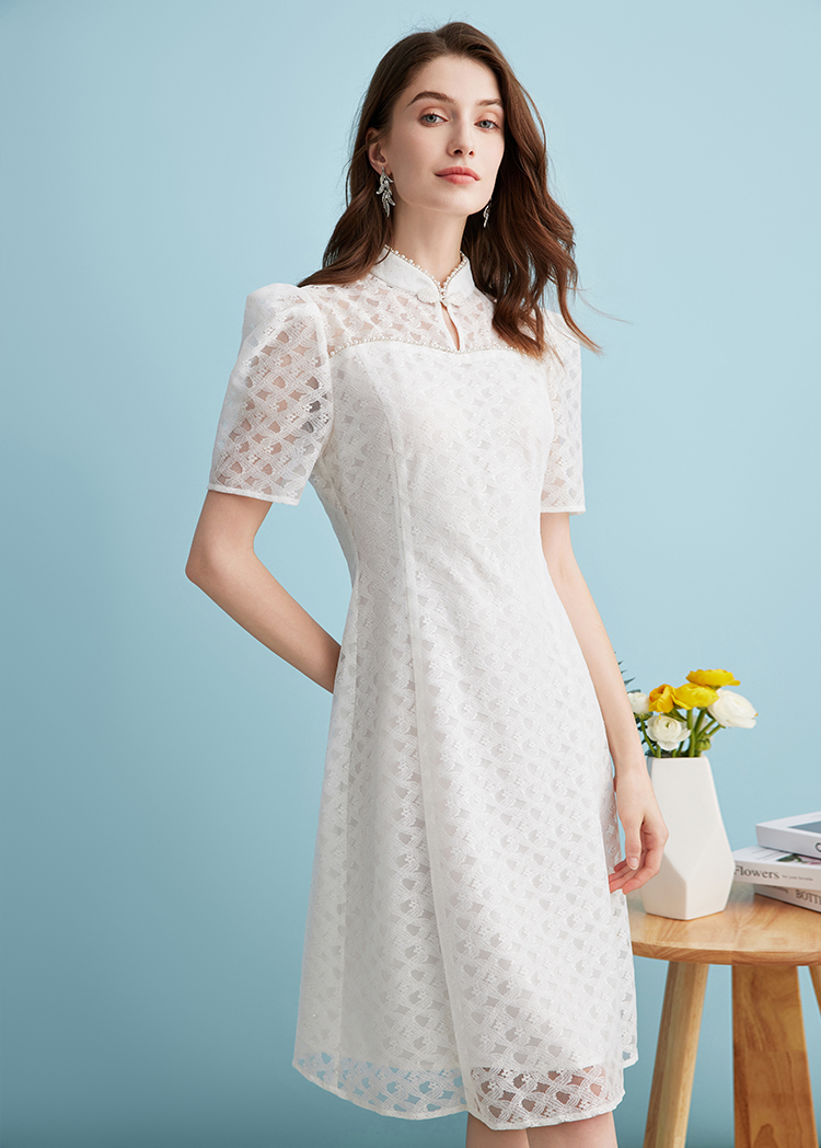 EITIE爱特爱温柔小白裙新中式立领盘扣泡泡袖连衣裙夏季新款B2407326