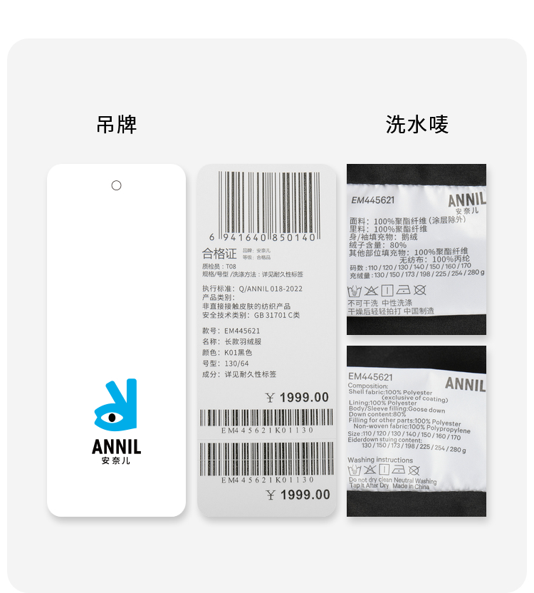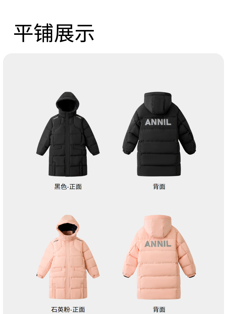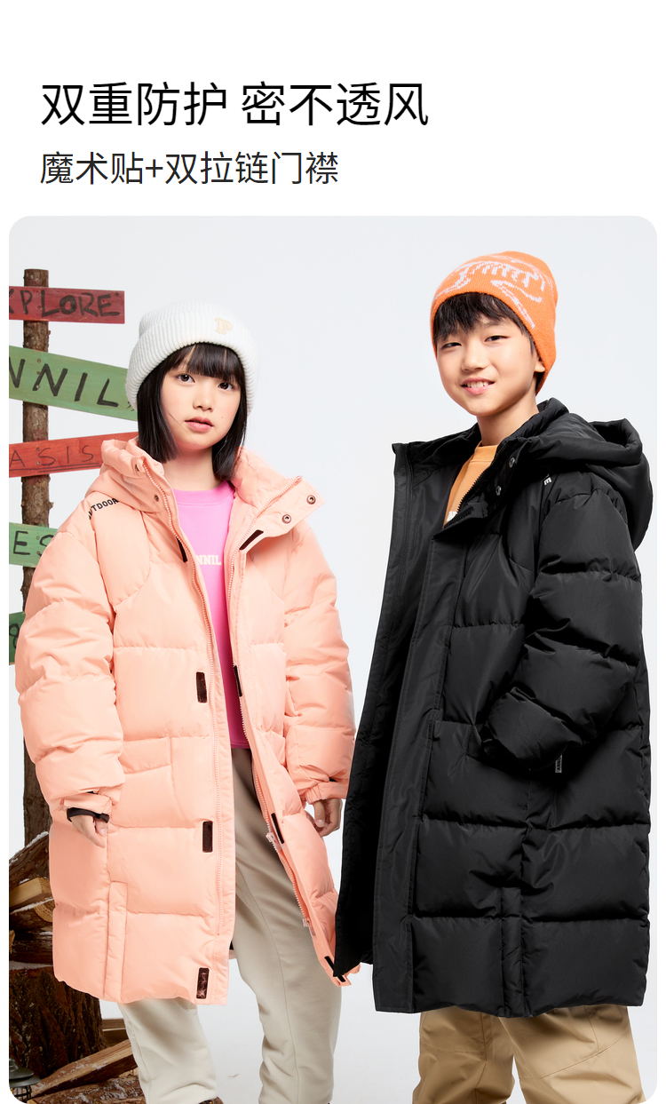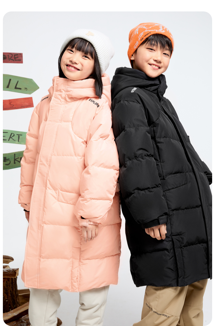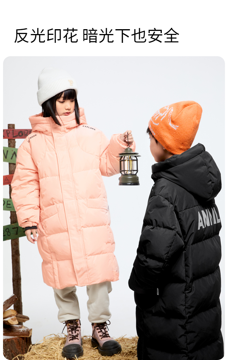 【极寒-15~-5℃】【怕冷买鹅绒】男女童长款羽绒服外套黑科技蓄热保暖冬季新款安奈儿童装EM445621