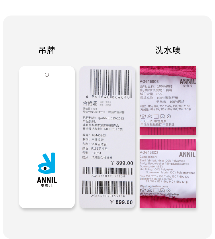 【御寒-5~5℃】女童蓄热短款羽绒外套冬季新款安奈儿童装实体店同款AG445803