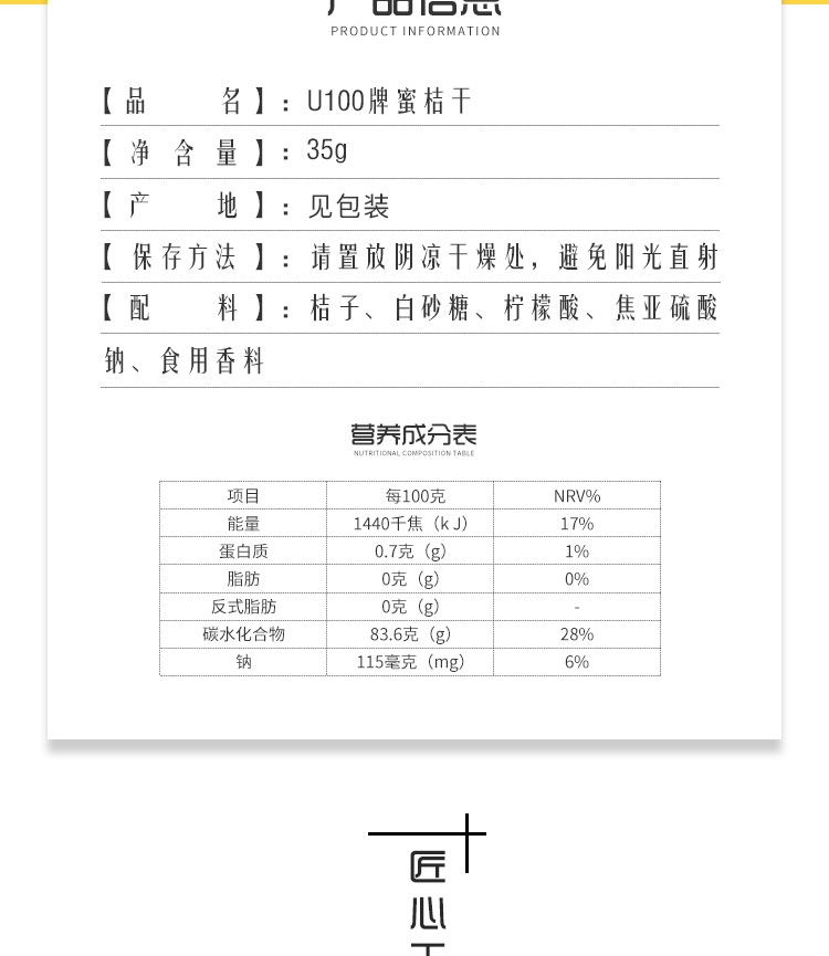 U100蜜桔干(蜜饯)35g/152443 精选优才果肉厚实饱满