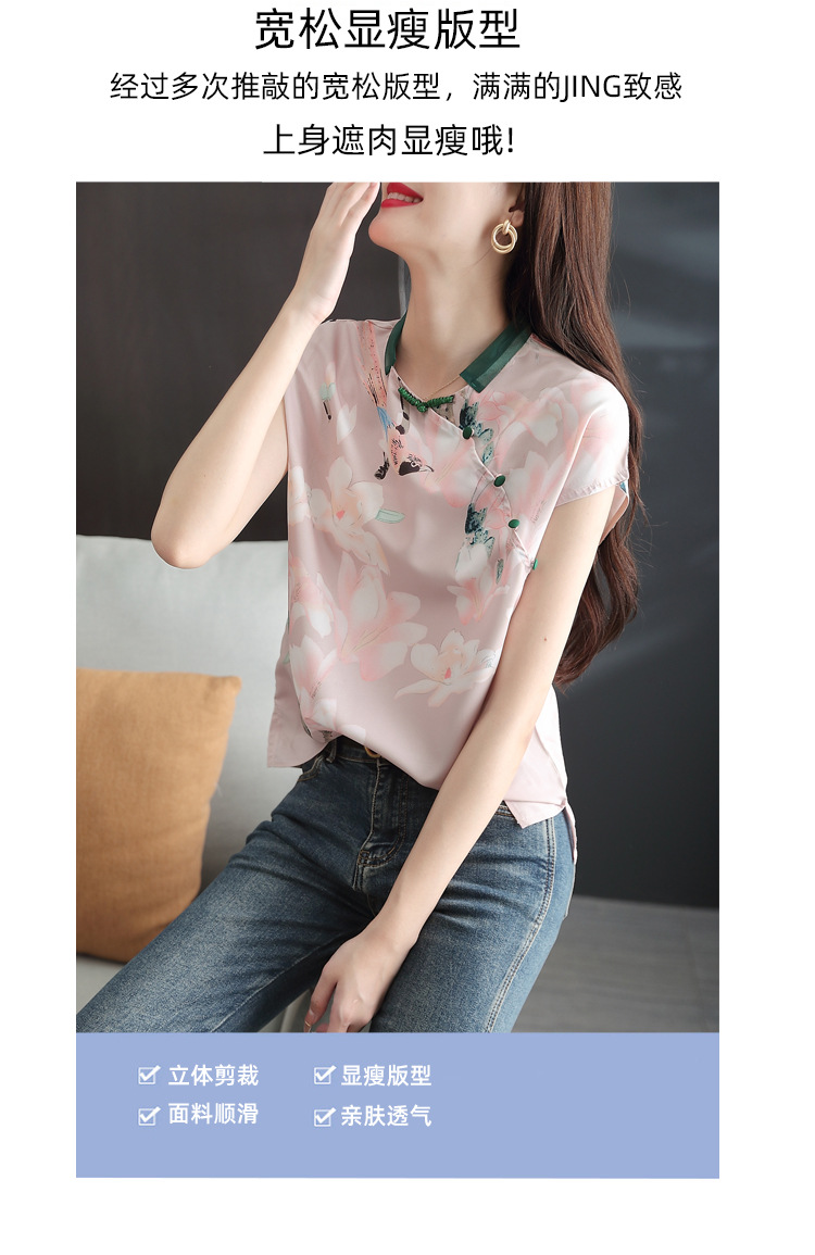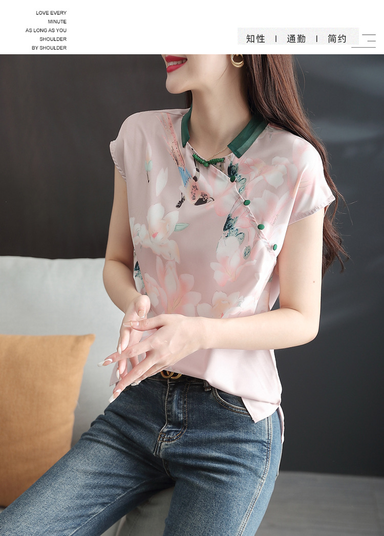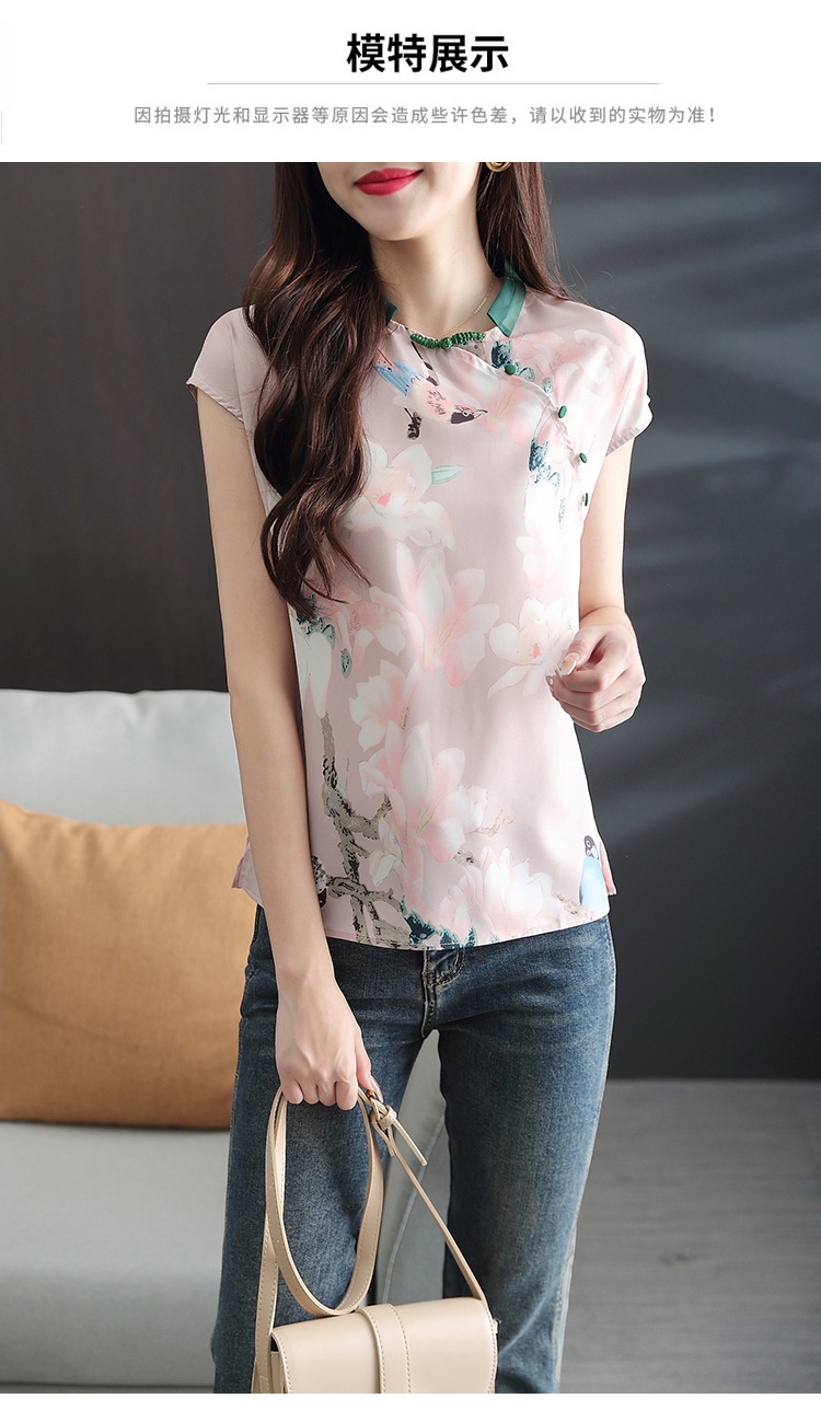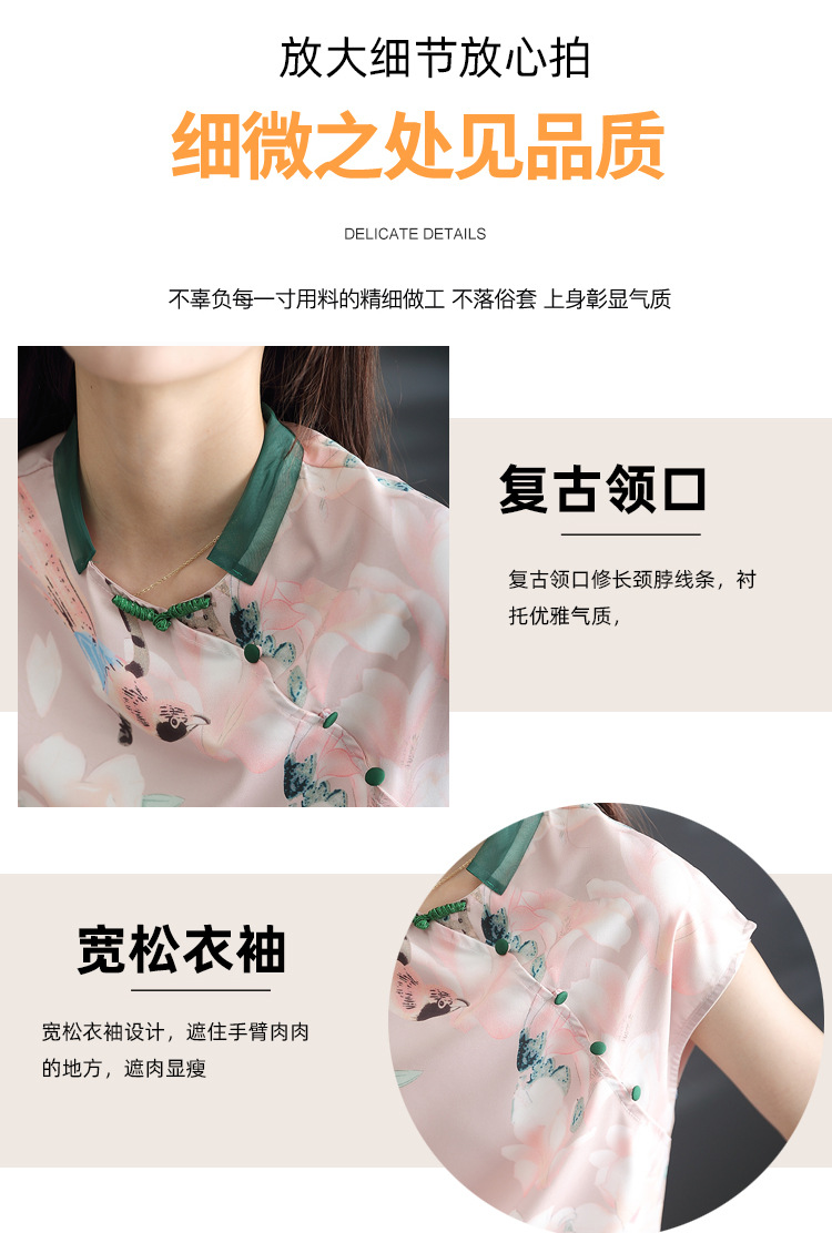复古中国风,改良旗袍气质设计感小众新款碎花衬衫雪纺衫KQL-2084