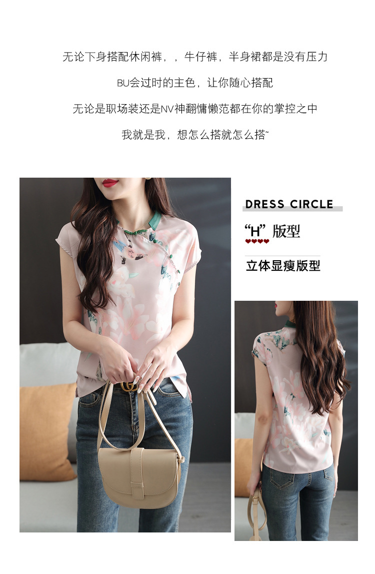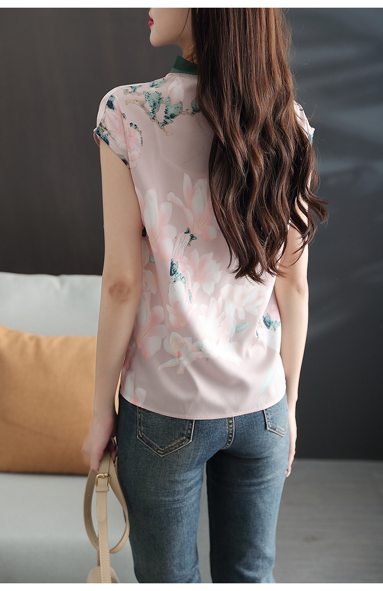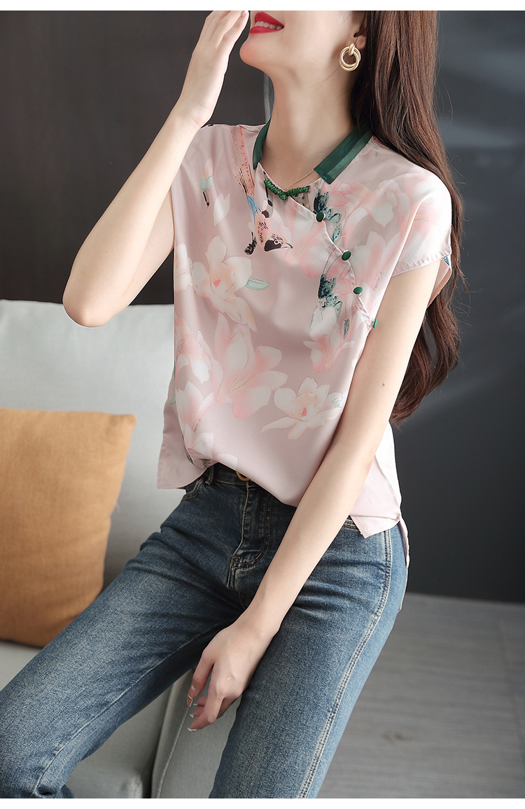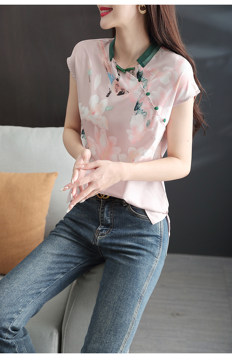复古中国风,改良旗袍气质设计感小众新款碎花衬衫雪纺衫KQL-2084