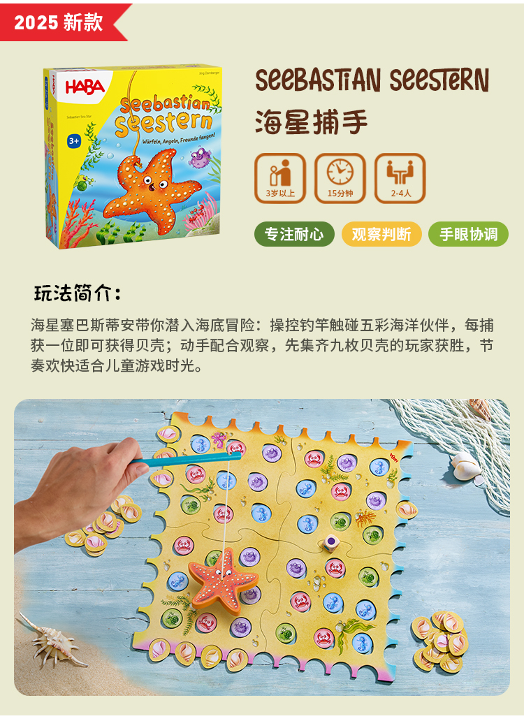 HABA 海星捕手 桌游 适合3岁+ 手眼协调 德国品牌-2012229001