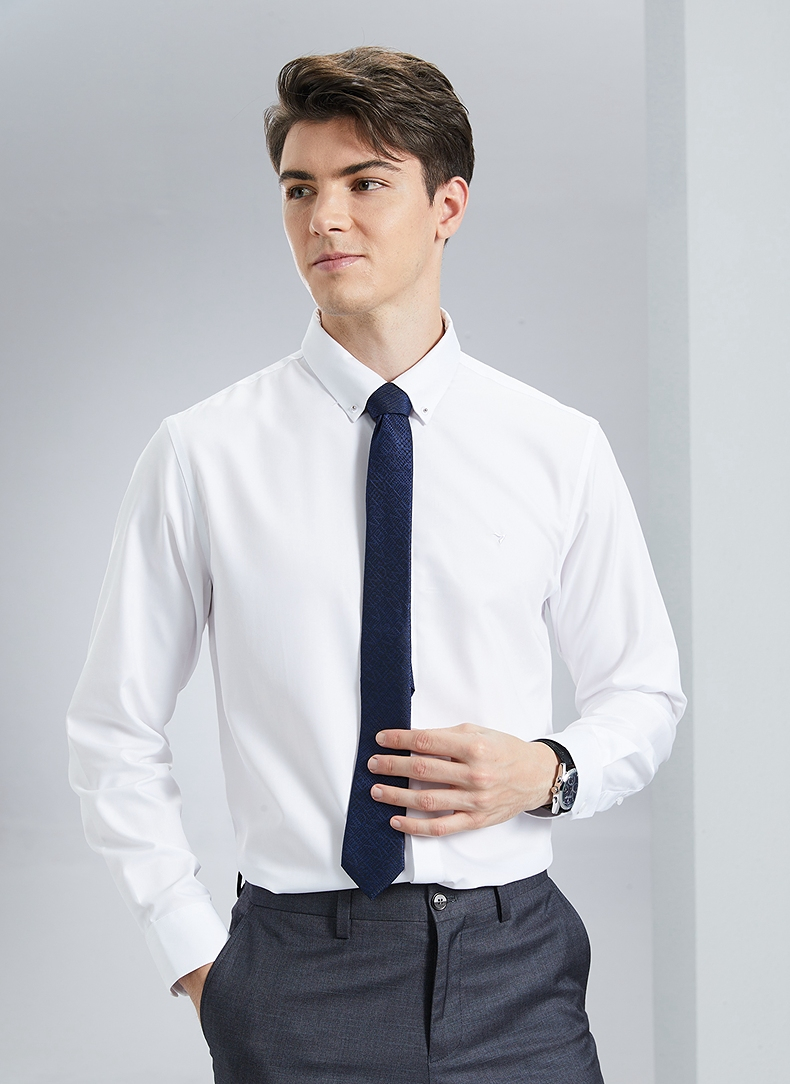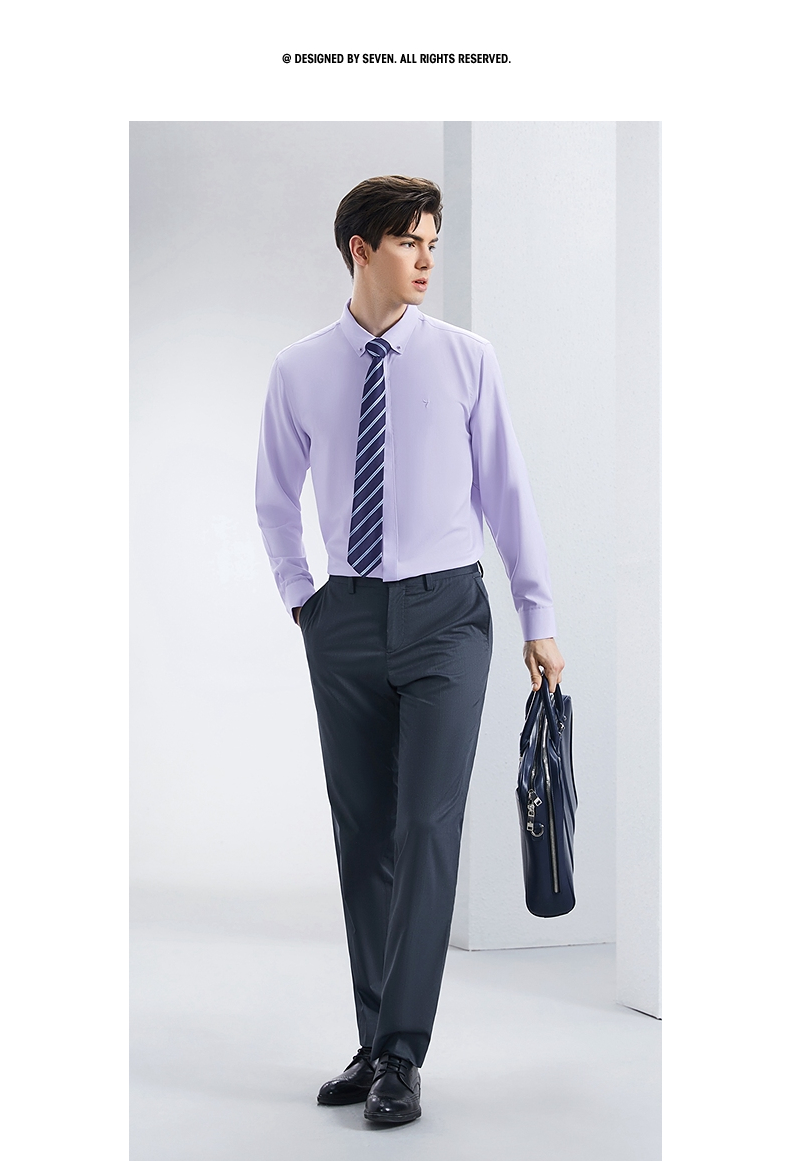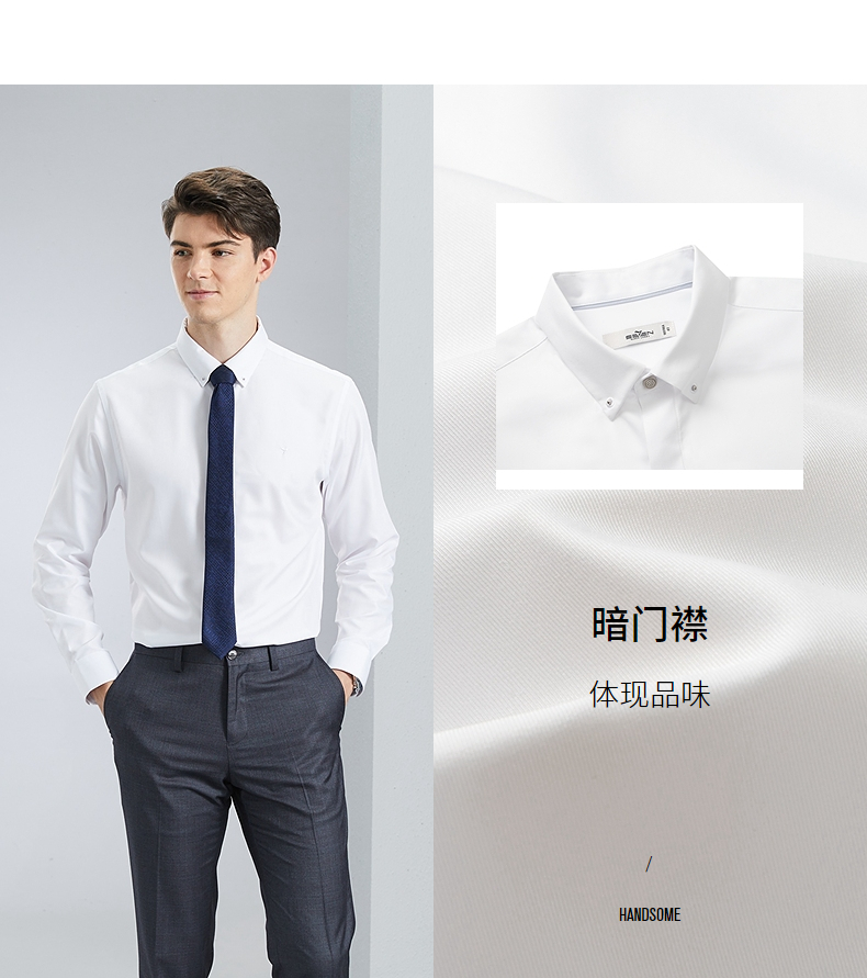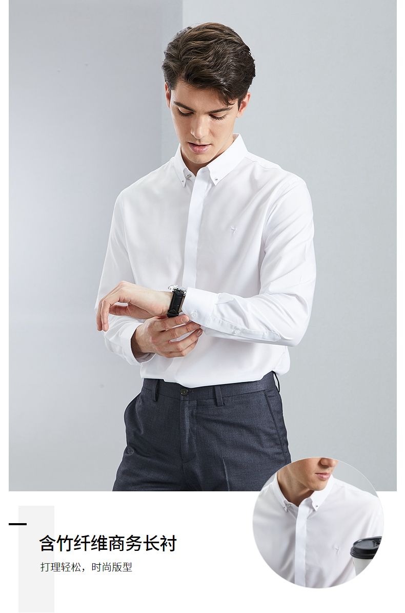 【含竹纤维】柒牌男士长袖衬衫2024春季新款商务职场正装翻领衬衣 126A70770