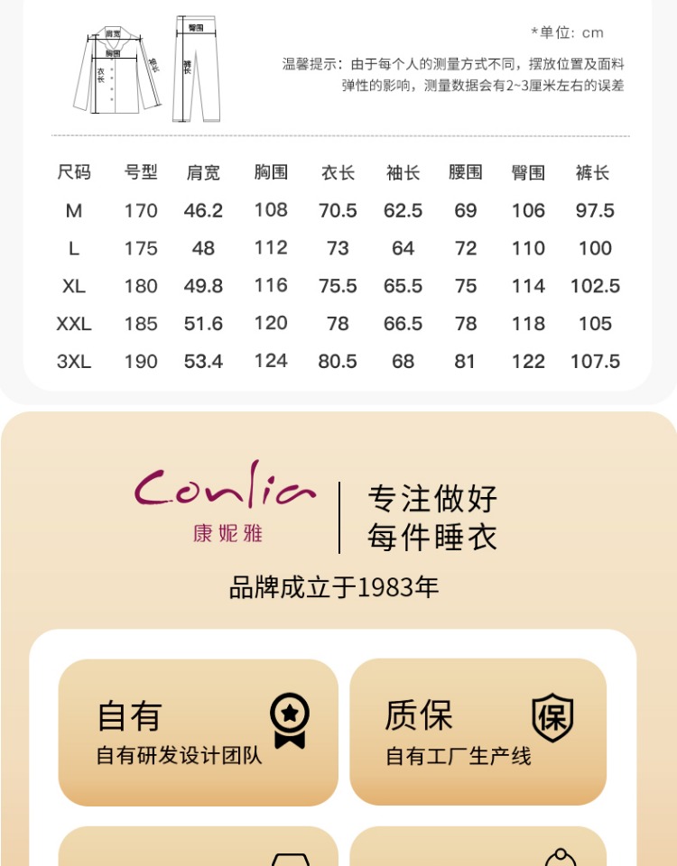 康妮雅男式长袖长裤开襟套装