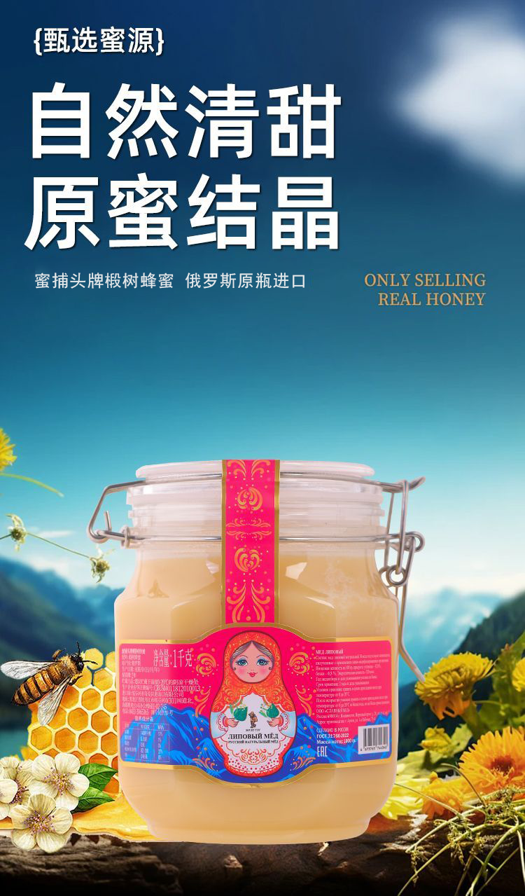 疯抢中!!【俄罗斯原瓶进口】【椴树&蒲公英蜂蜜】天然原始森林 新鲜直采口感香甜软糯 甜而不腻