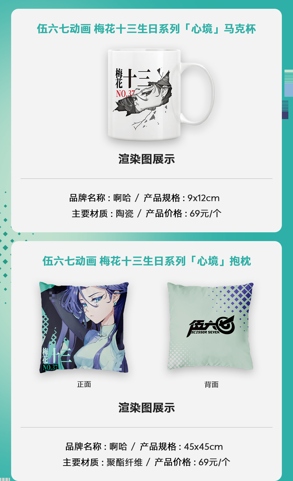 伍六七动画 梅花十三生日系列「心境」角色徽章书签钥匙扣立牌