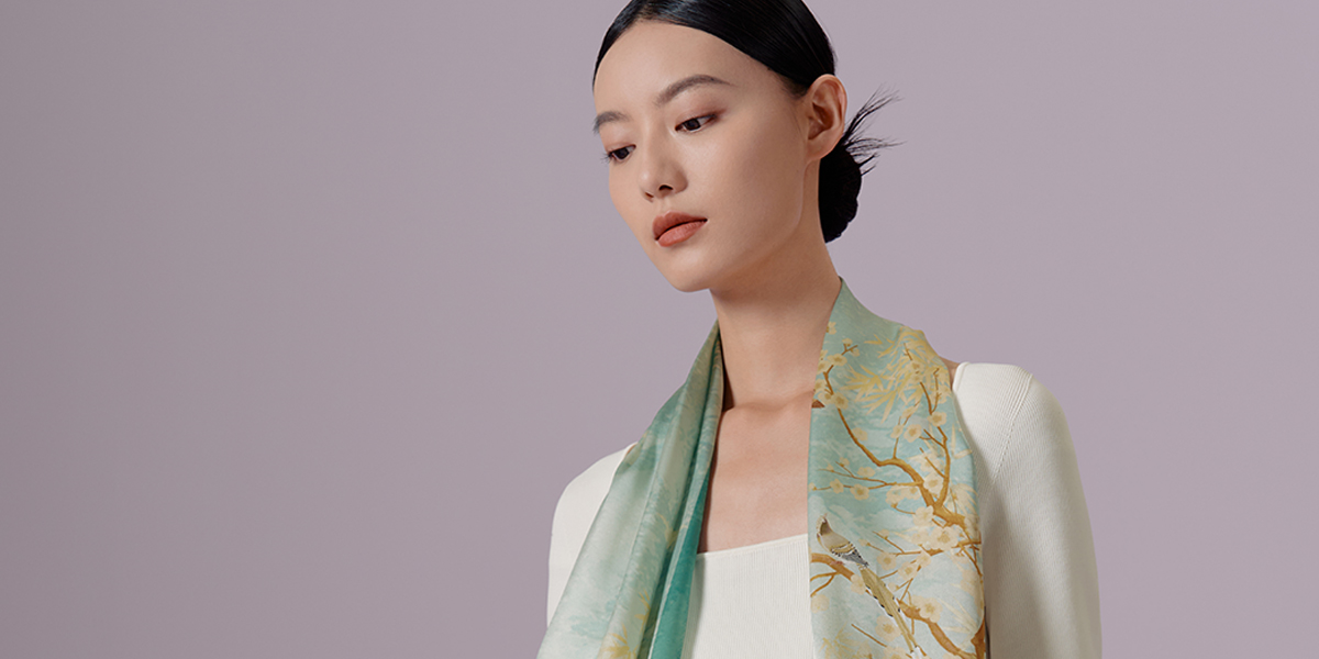 万事利丝绸 X总台文创联名方巾-玉兰赋·颂福