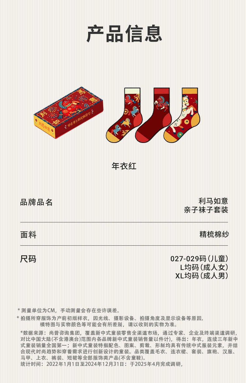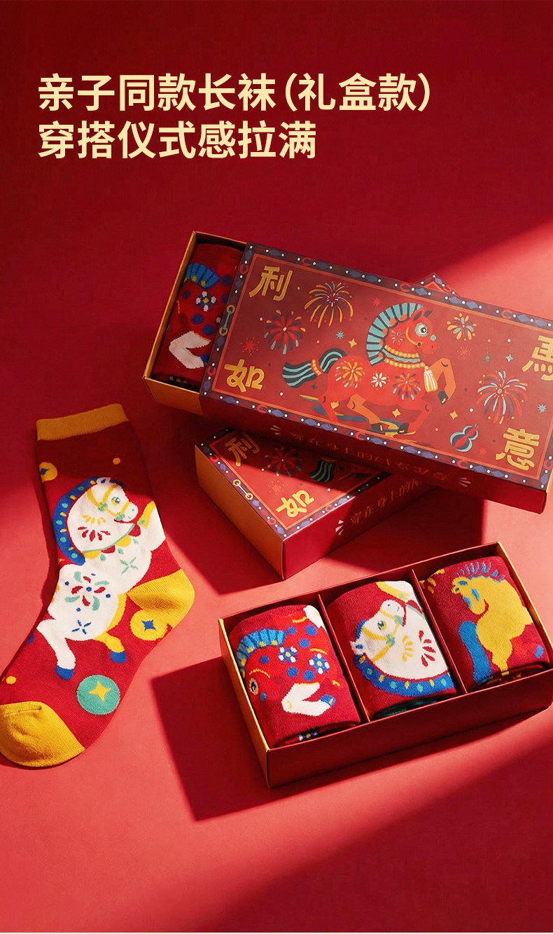 【利马如意袜子套装】年衣儿童礼盒装送礼本命年马年红袜子中筒袜