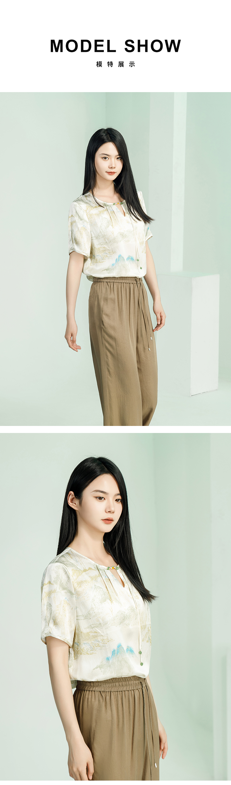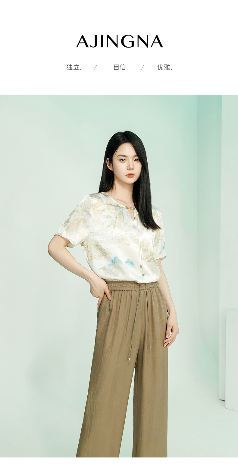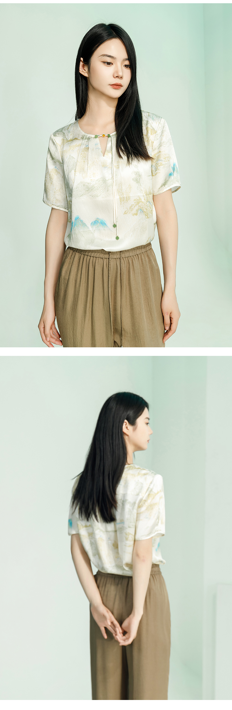 【商场同款】阿菁娜2024夏季新款新中式水墨画宽松小衫A30X202035