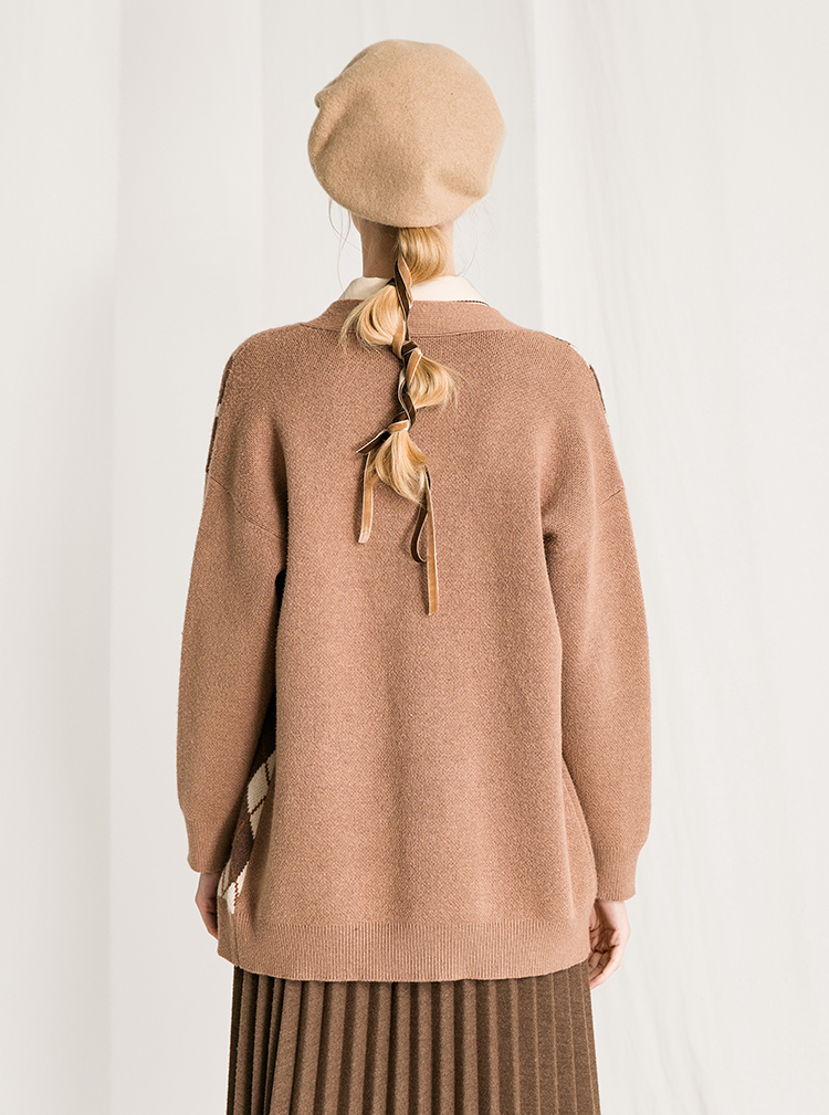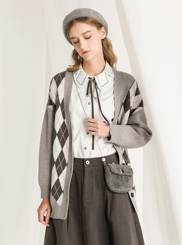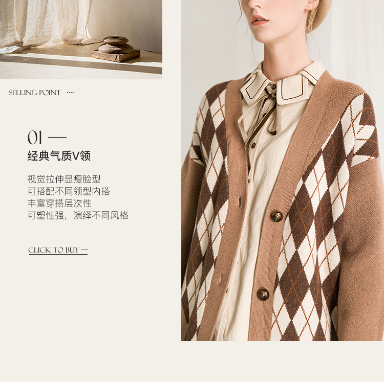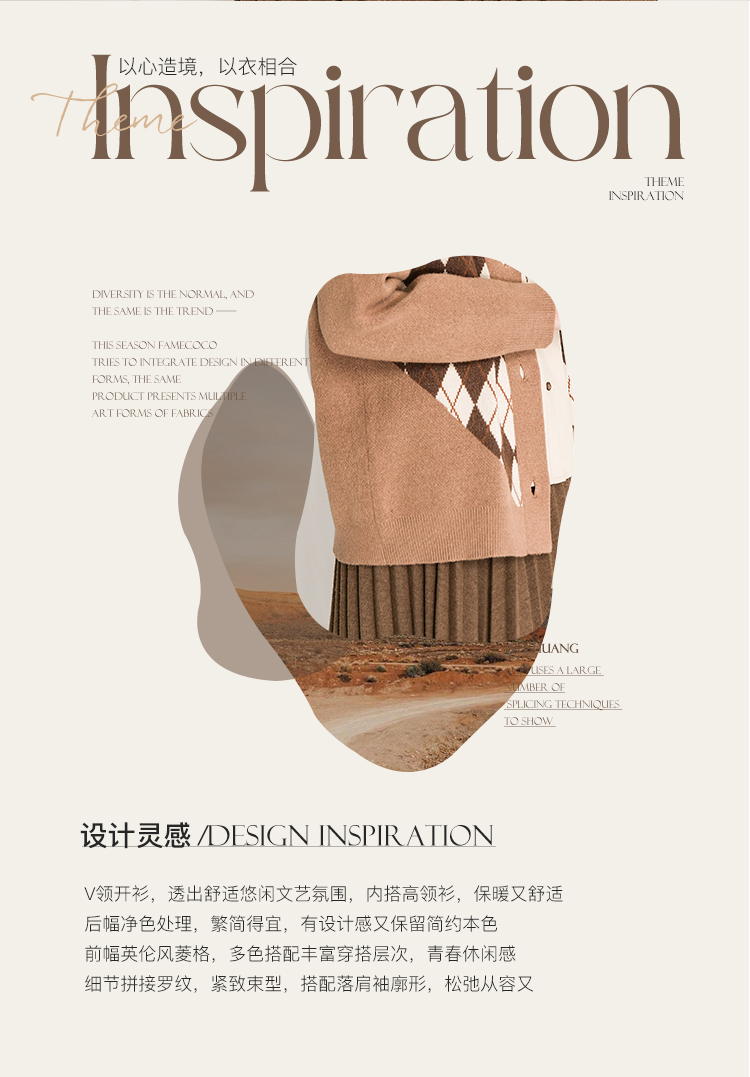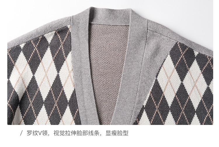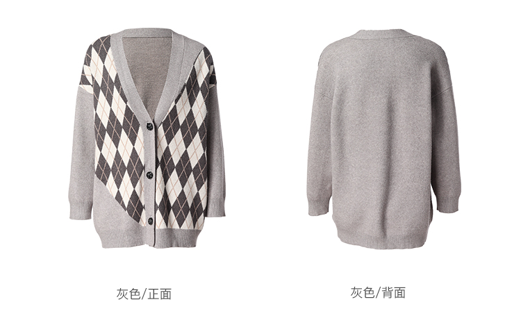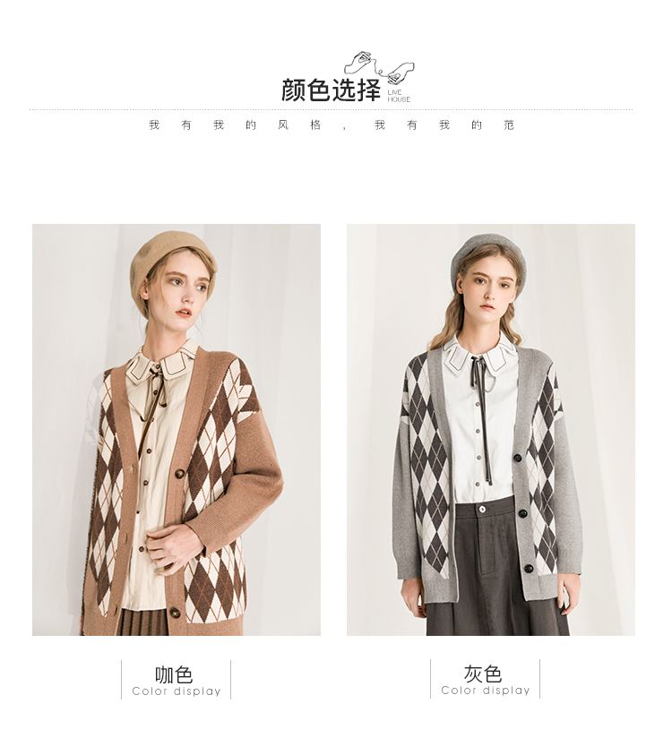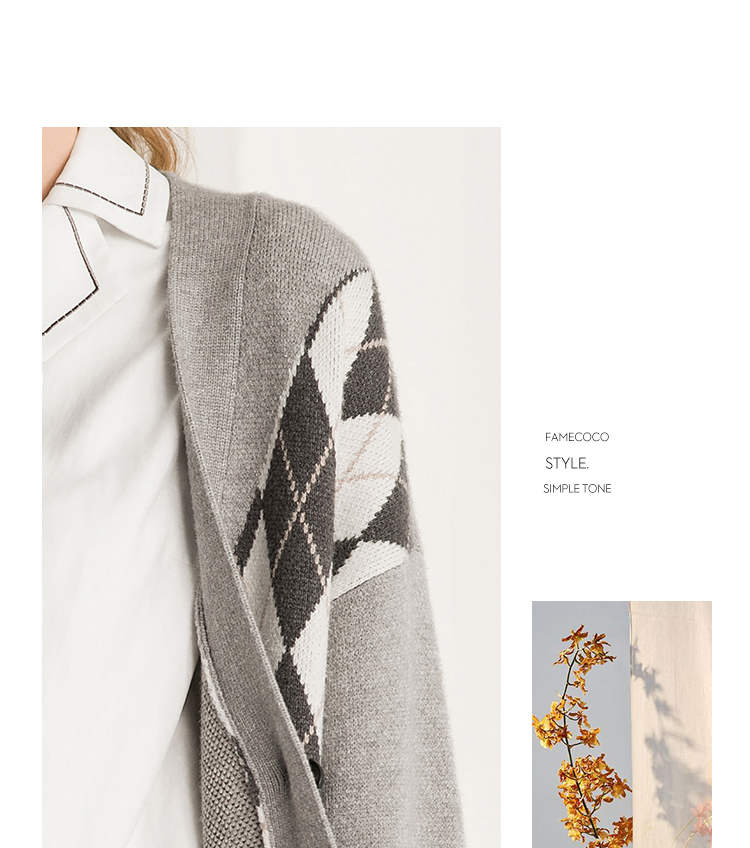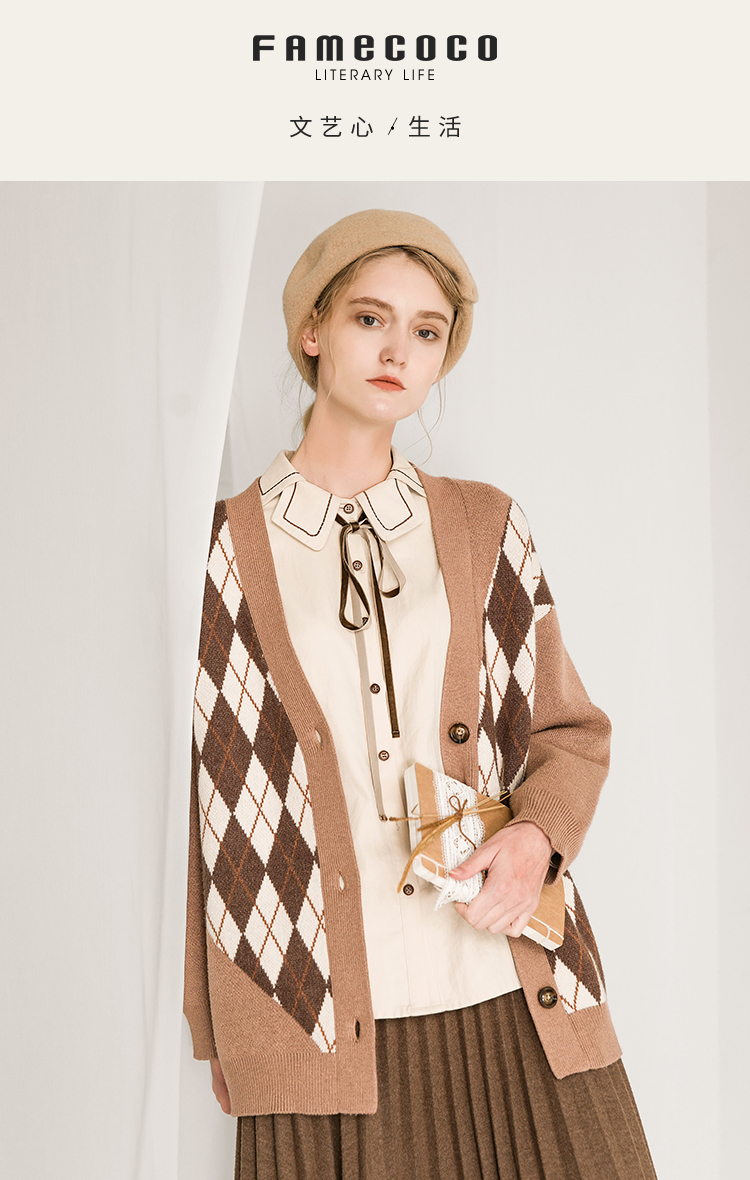 Famecoco范可儿v领毛衣外套开衫女学院风上衣冬F218DA001