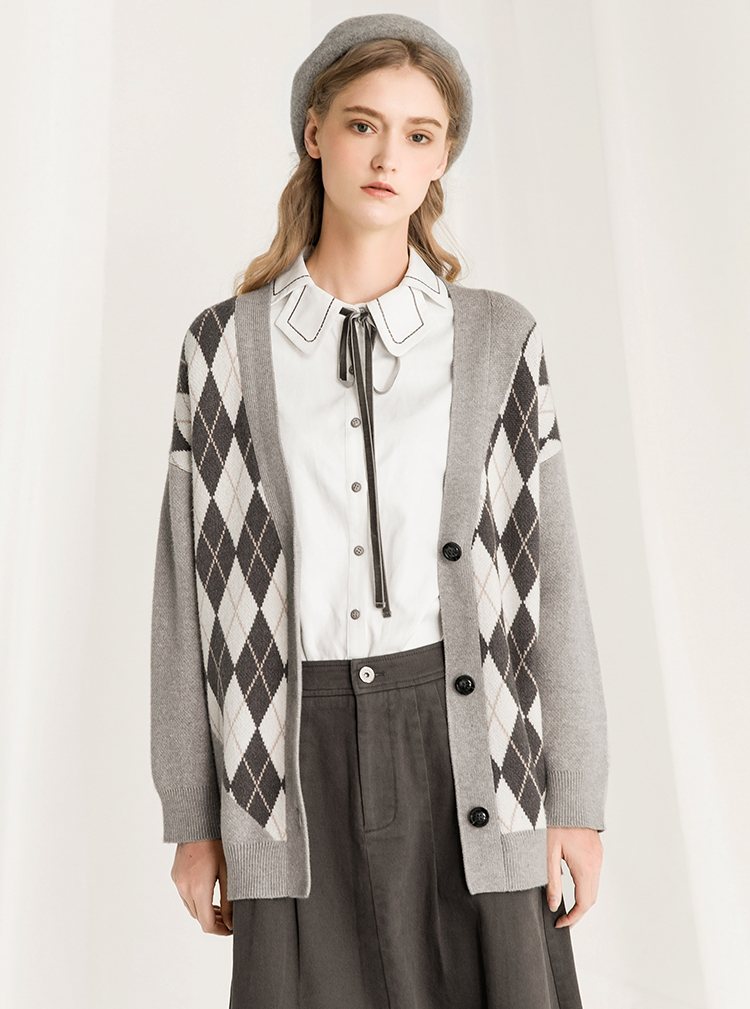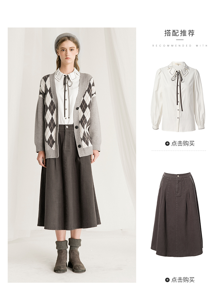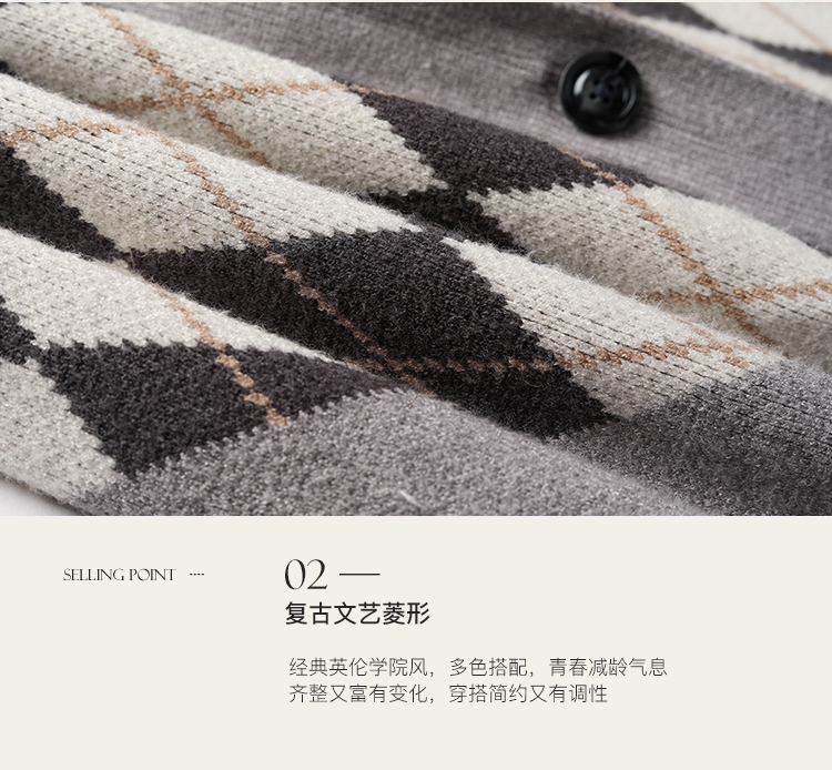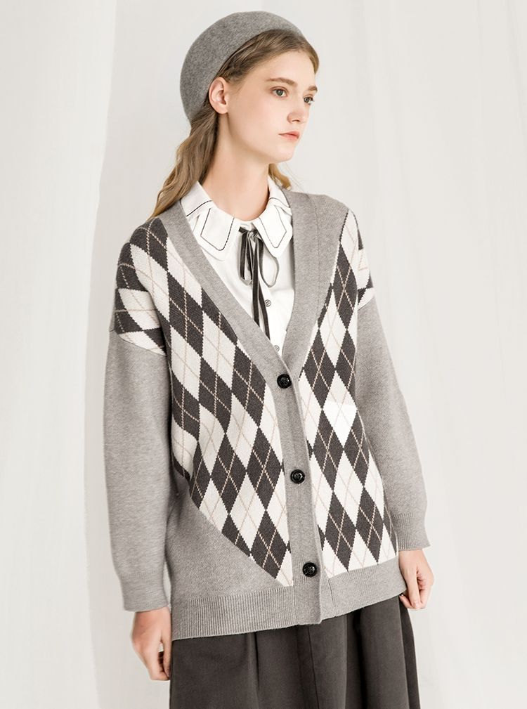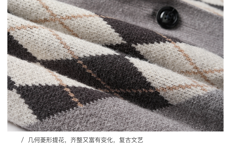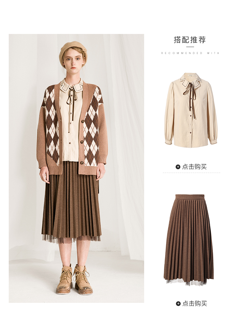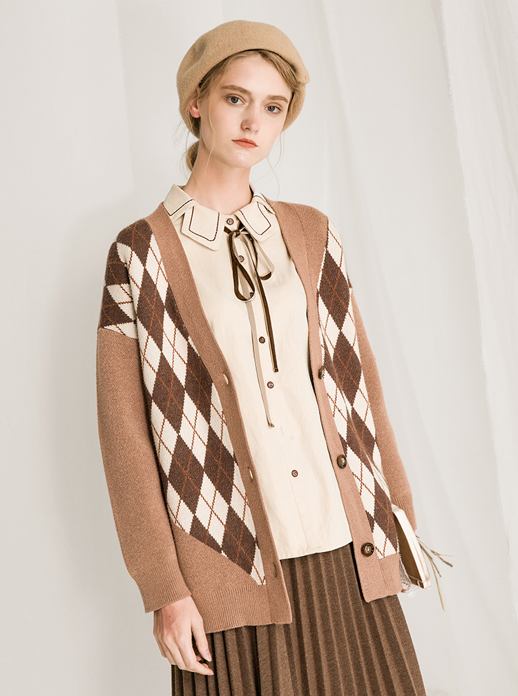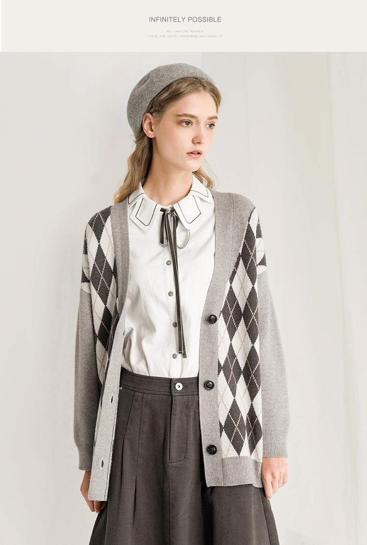 Famecoco范可儿v领毛衣外套开衫女学院风上衣冬F218DA001