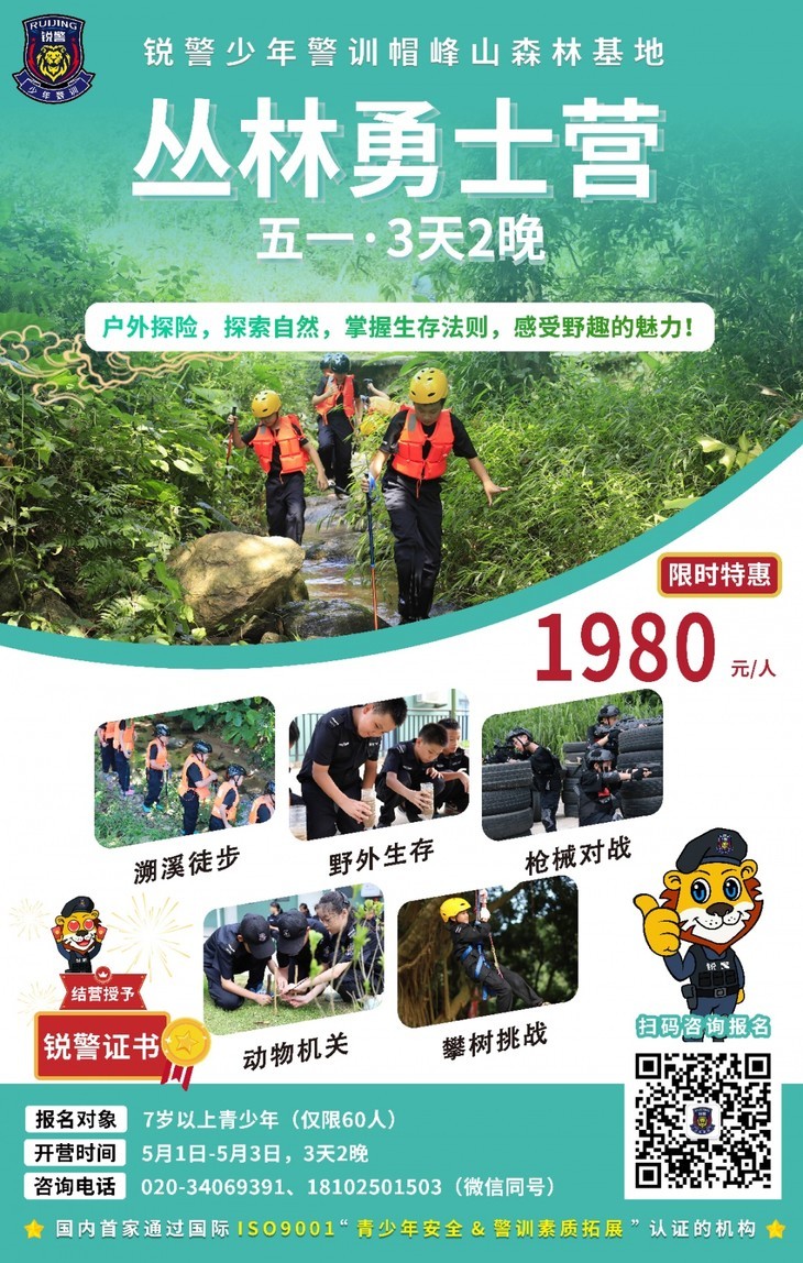 - 锐警少年警训致力于打造“营地教育+安全教育”领航品牌。以专业的警务特色课程体系,为青少年提供沉浸式安全教育,锻造外展自我、内拓素质的现代英武少年。