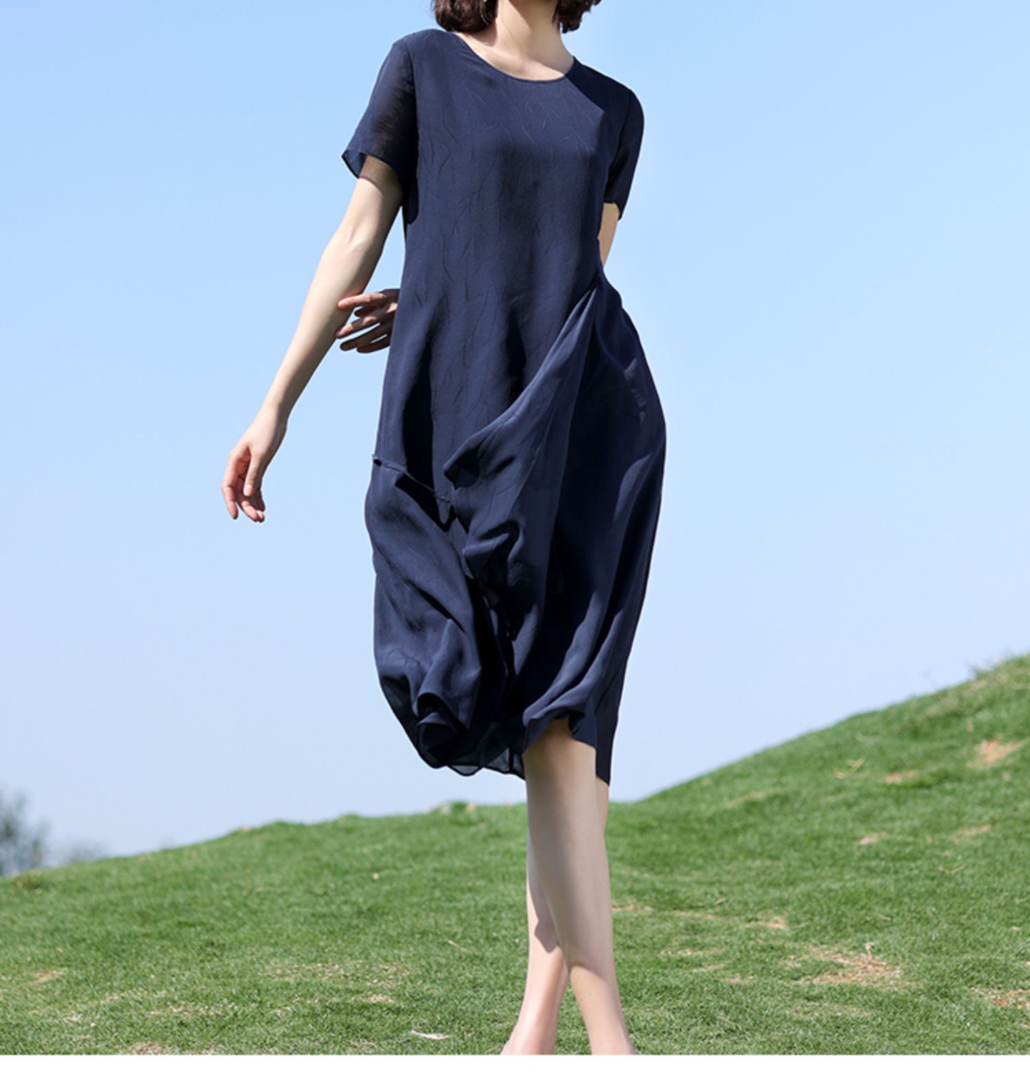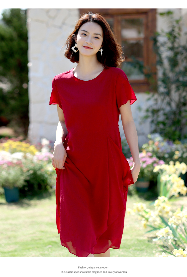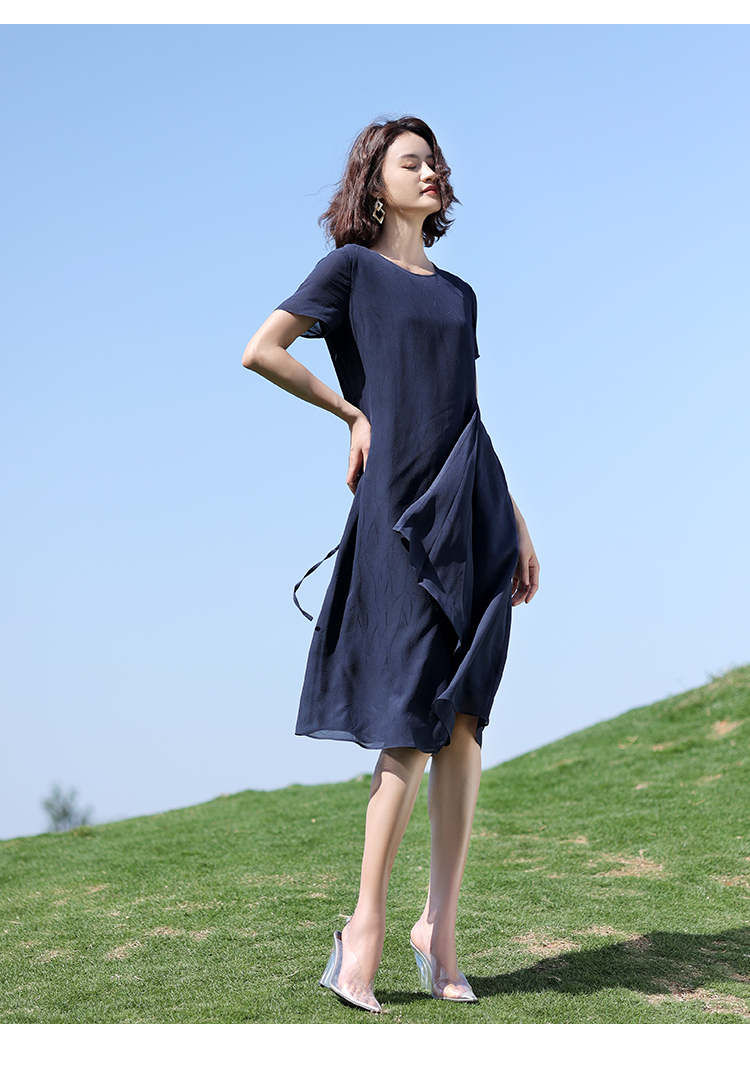 佐尔美2022夏季新款 桑蚕丝真丝乔其提花连衣裙女E12LS87