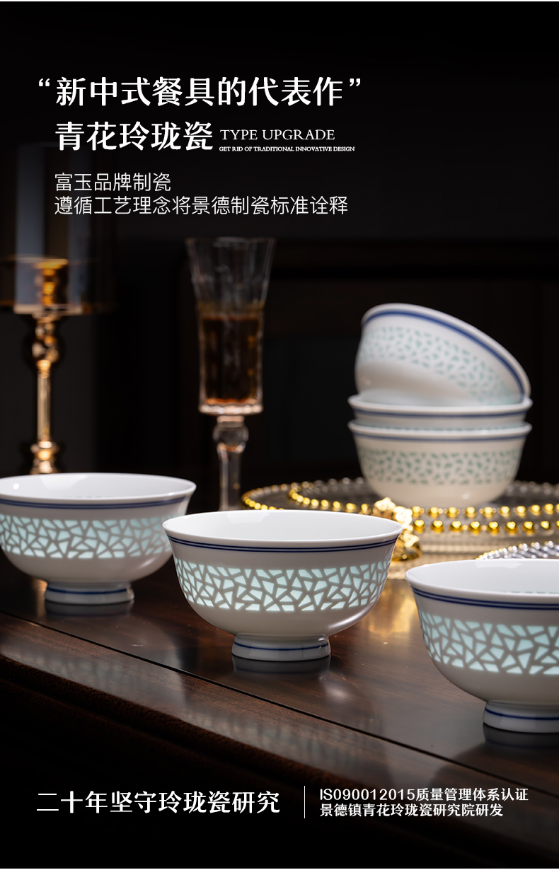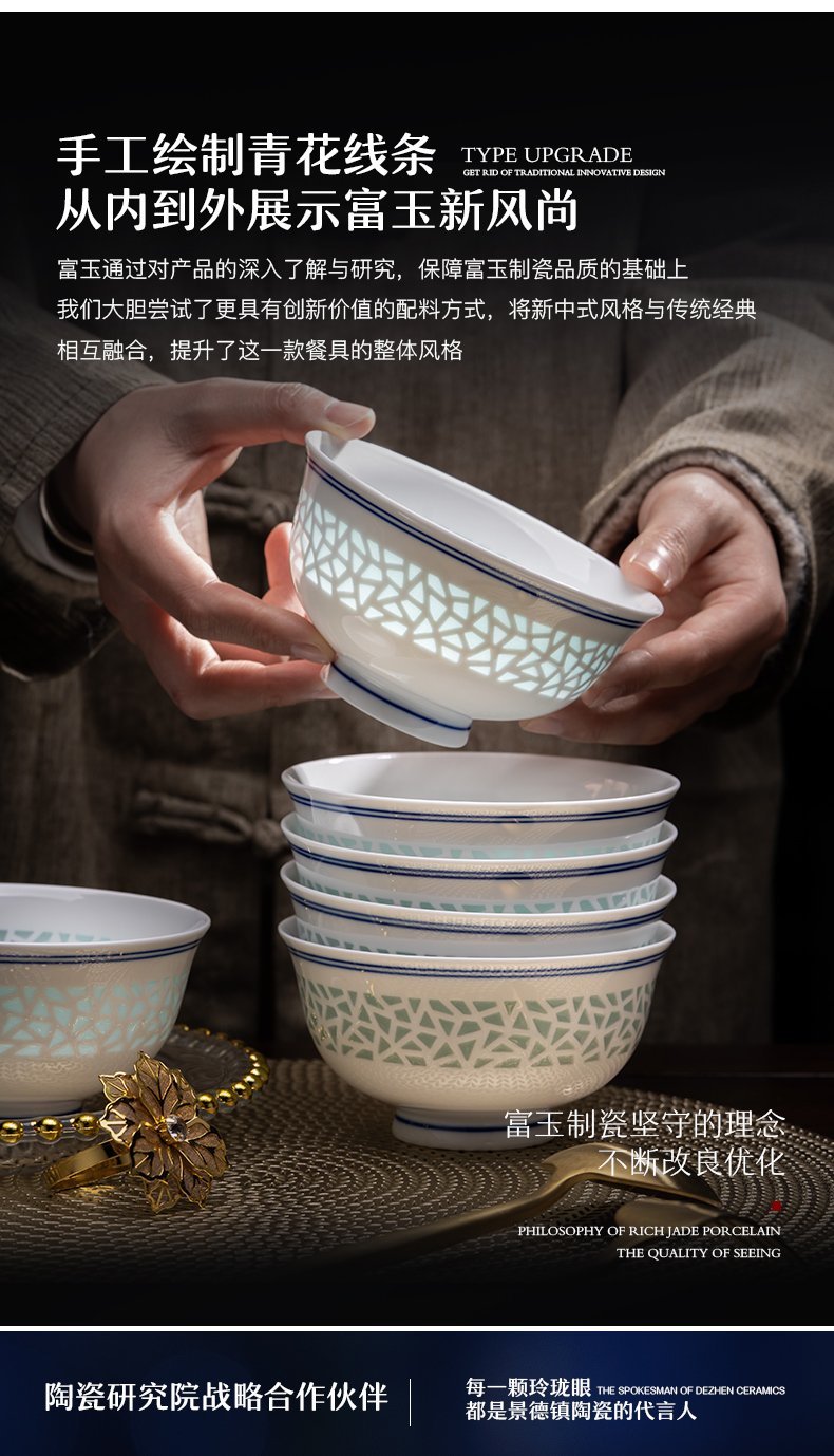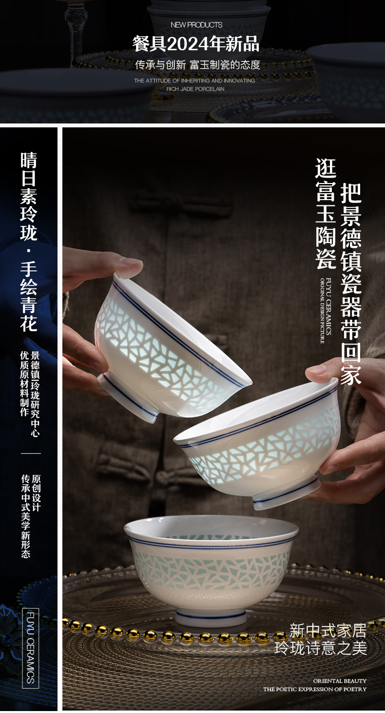 人气餐具 | 富玉陶瓷 青花玲珑晴日饭碗
