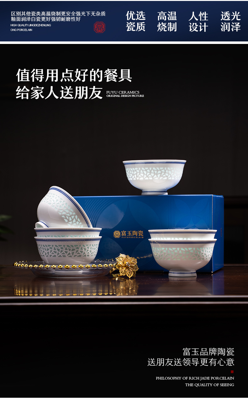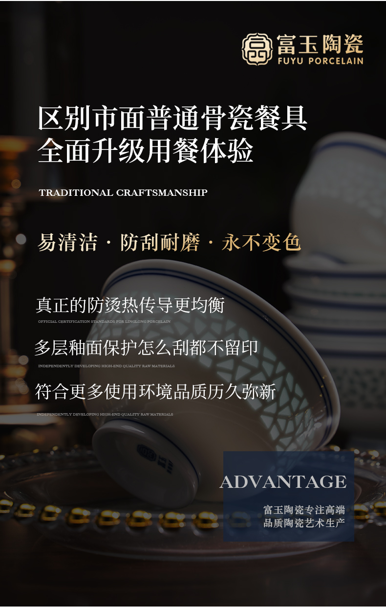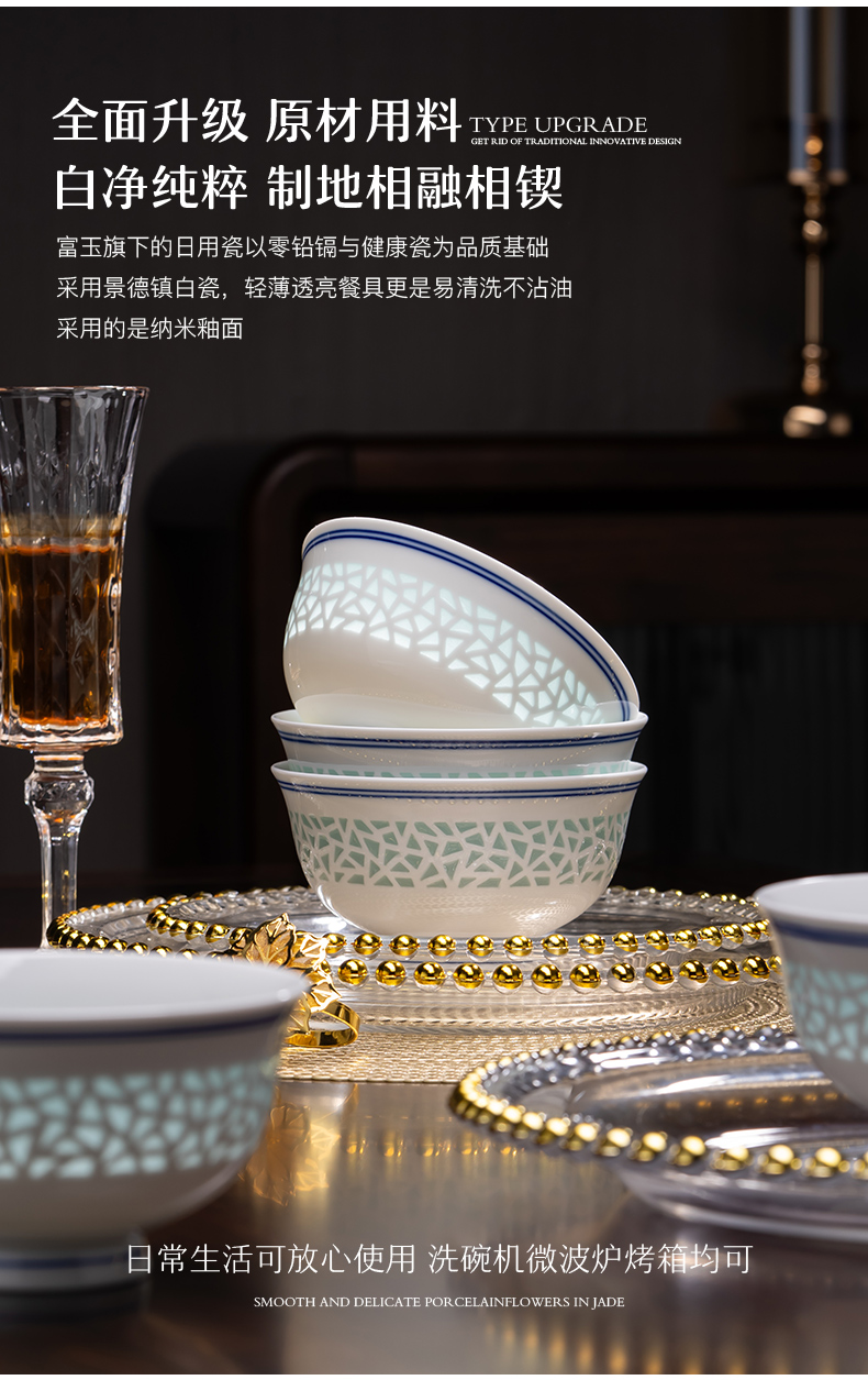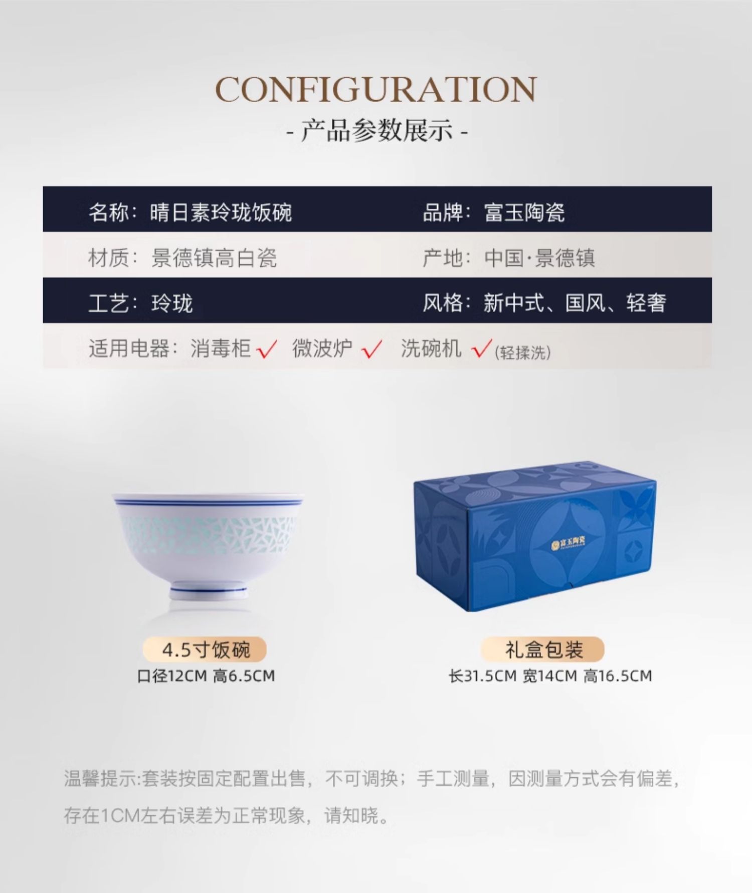 人气餐具 | 富玉陶瓷 青花玲珑晴日饭碗
