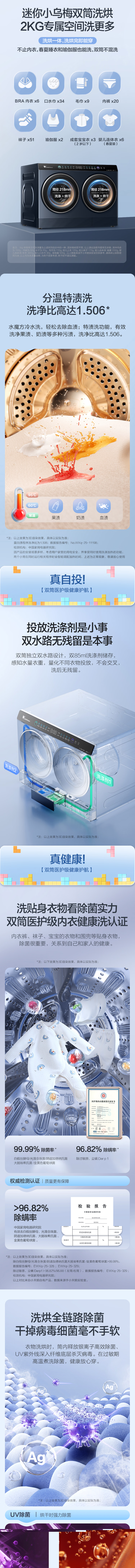 小天鹅(252296)TNDD20-08AIDE 内衣清洗机 瑾瑜蓝 高温杀菌 紫外杀菌