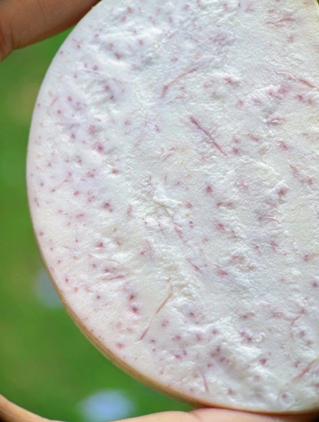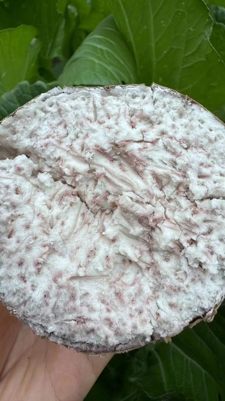 品质与特点:个头大,肉质细腻,具有特殊的风味。其切开后,内部呈现明显的紫色槟榔花纹,芋肉间的黏液还能拉出一道银丝,独具特色。口感松糯、清香,且营养丰富,含有精蛋白、淀粉、多种维生素和无机盐等多种成分,既是制作饮食点心、佳肴的上乘原料,又是滋补身体的营养佳品。