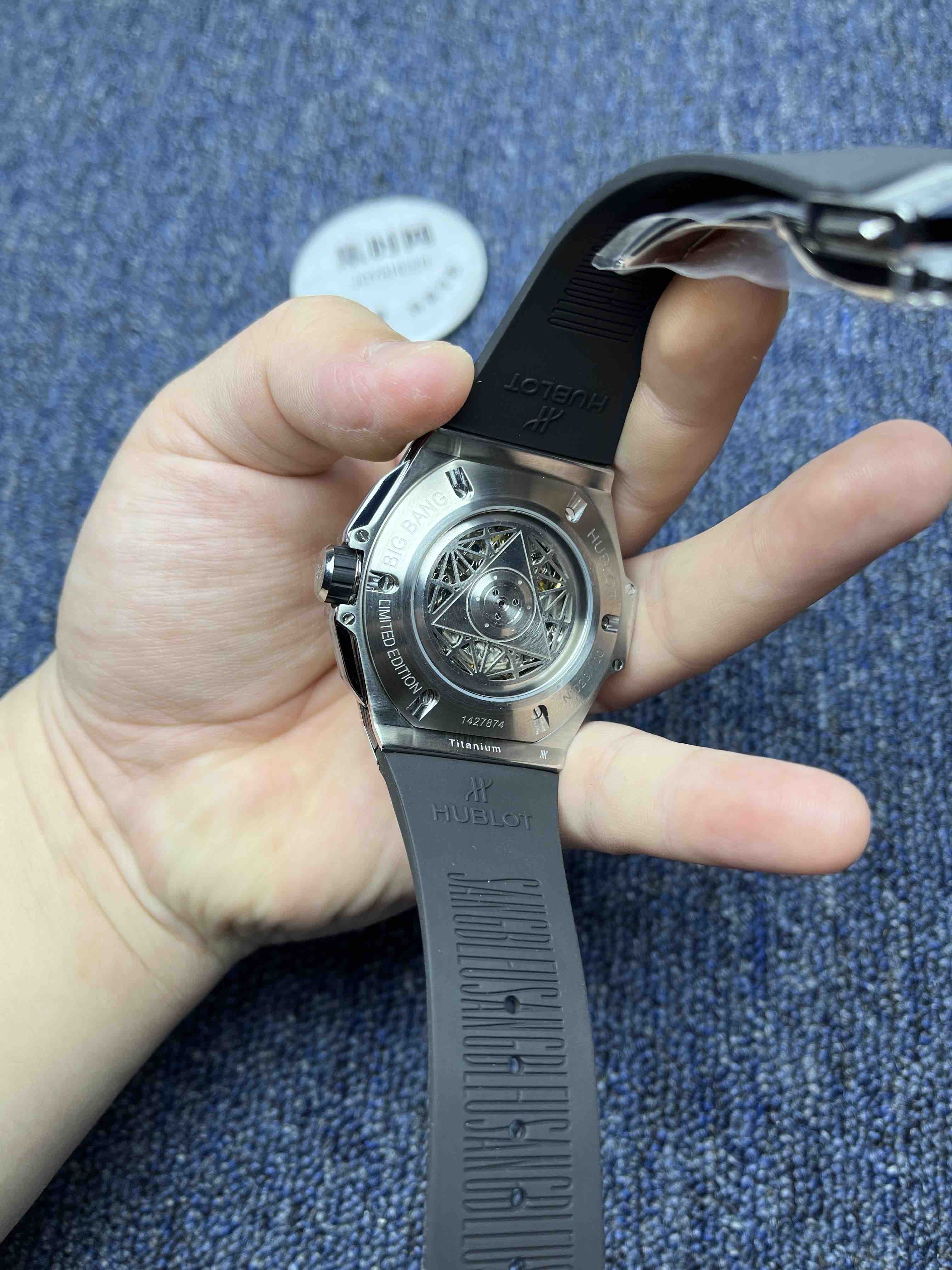 全新Big Bang Sang Bleu II 刺青二代系列 所有细节对版,再次与知名刺青工作室Sang Bleu合作,推出又款利用几何图形巧妙构思的刺青ll腕表,完mei演绎了该品牌的雄心壮志和设计理念。刺青ll腕表运用了更为精细的线条设计,打造出立体生动的三维视觉体验。