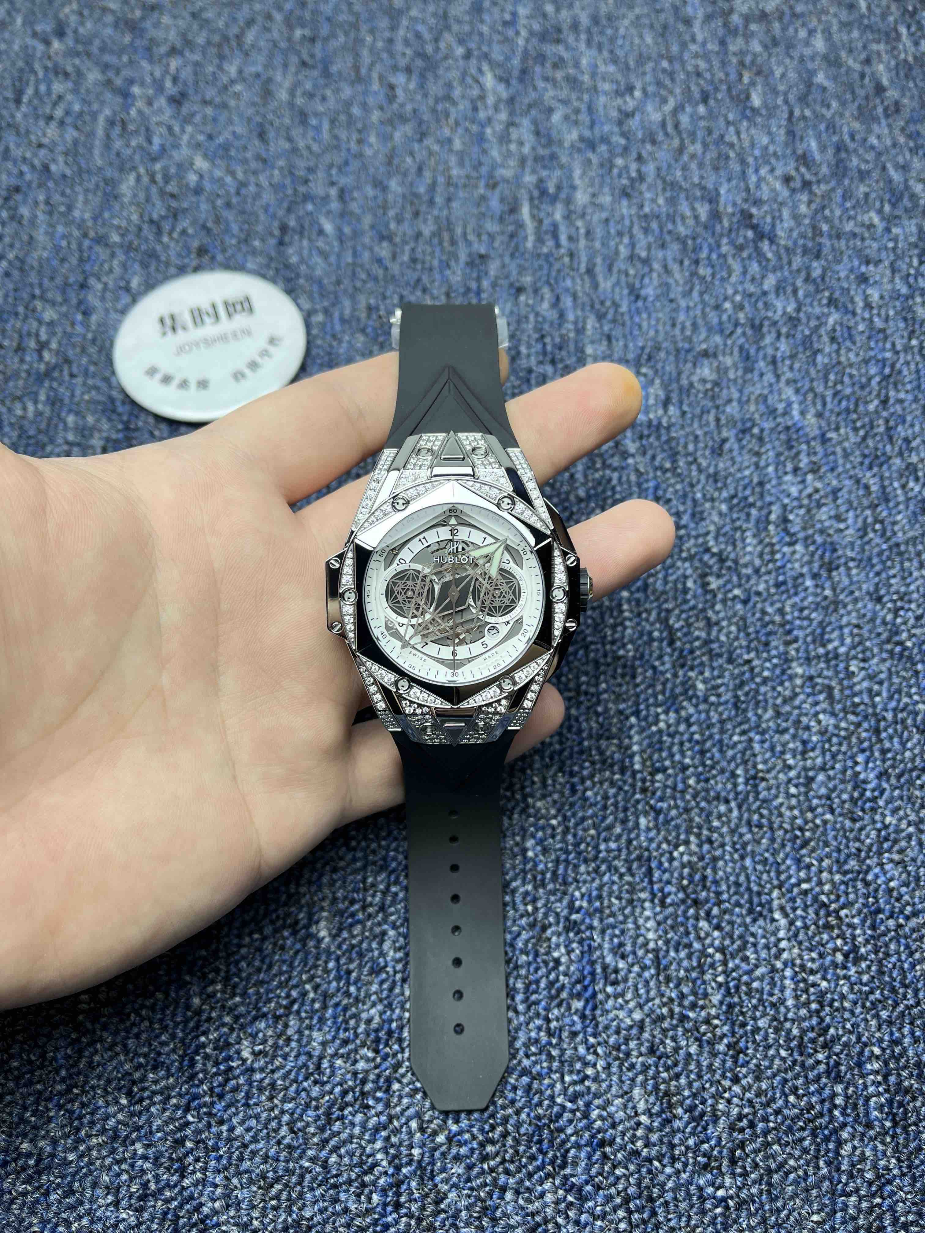 3️⃣进口黑色氟橡胶表带,以几何线条呈现出三维视觉体验。