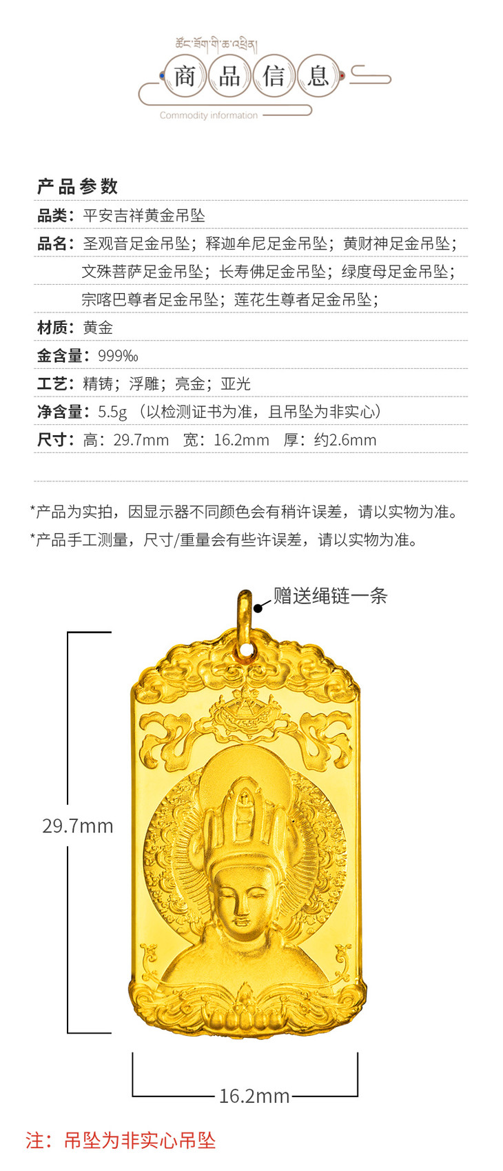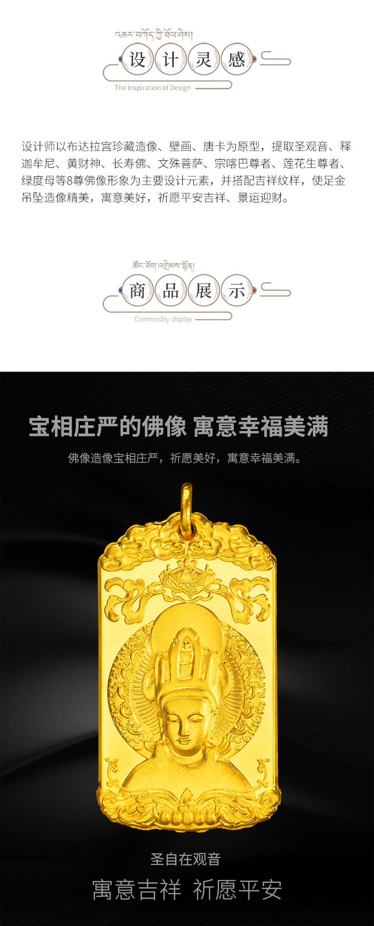 布达拉宫 999纯金足金佛牌吊坠