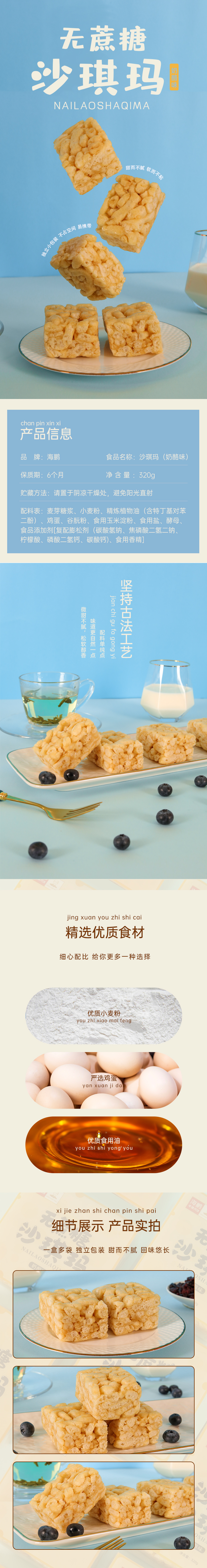 【无蔗糖零食】海鹏甜度低饱腹代餐营养便捷无蔗糖沙琪玛奶酪味320g