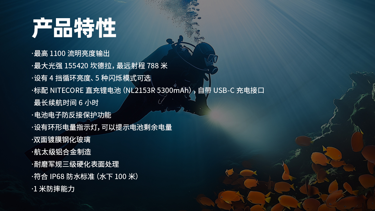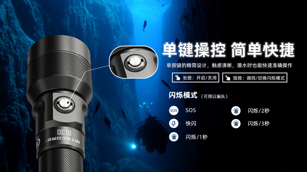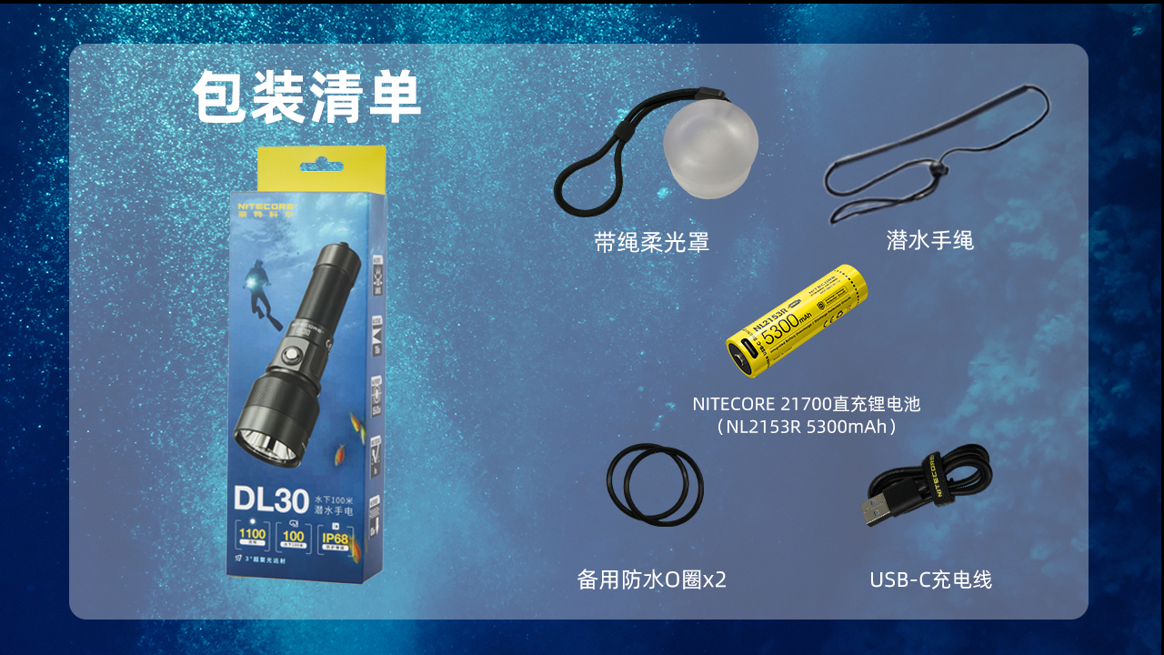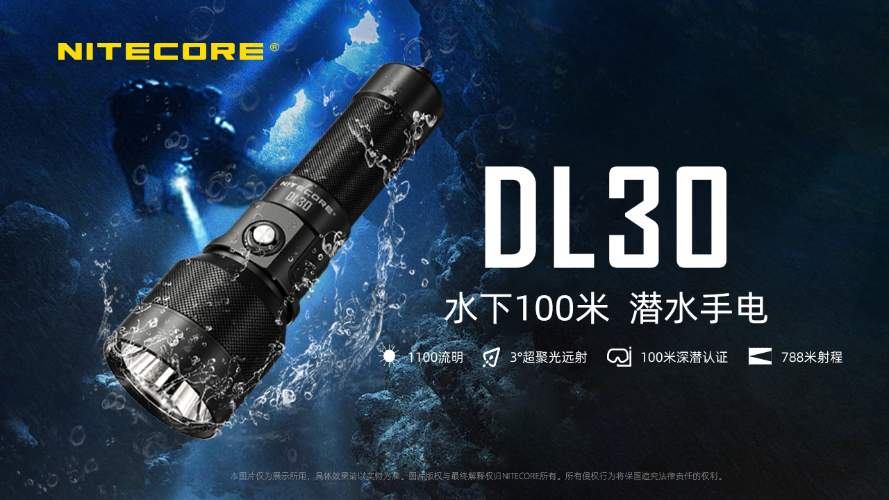 NITECORE奈特科尔DL30强光100米专业潜水手电筒