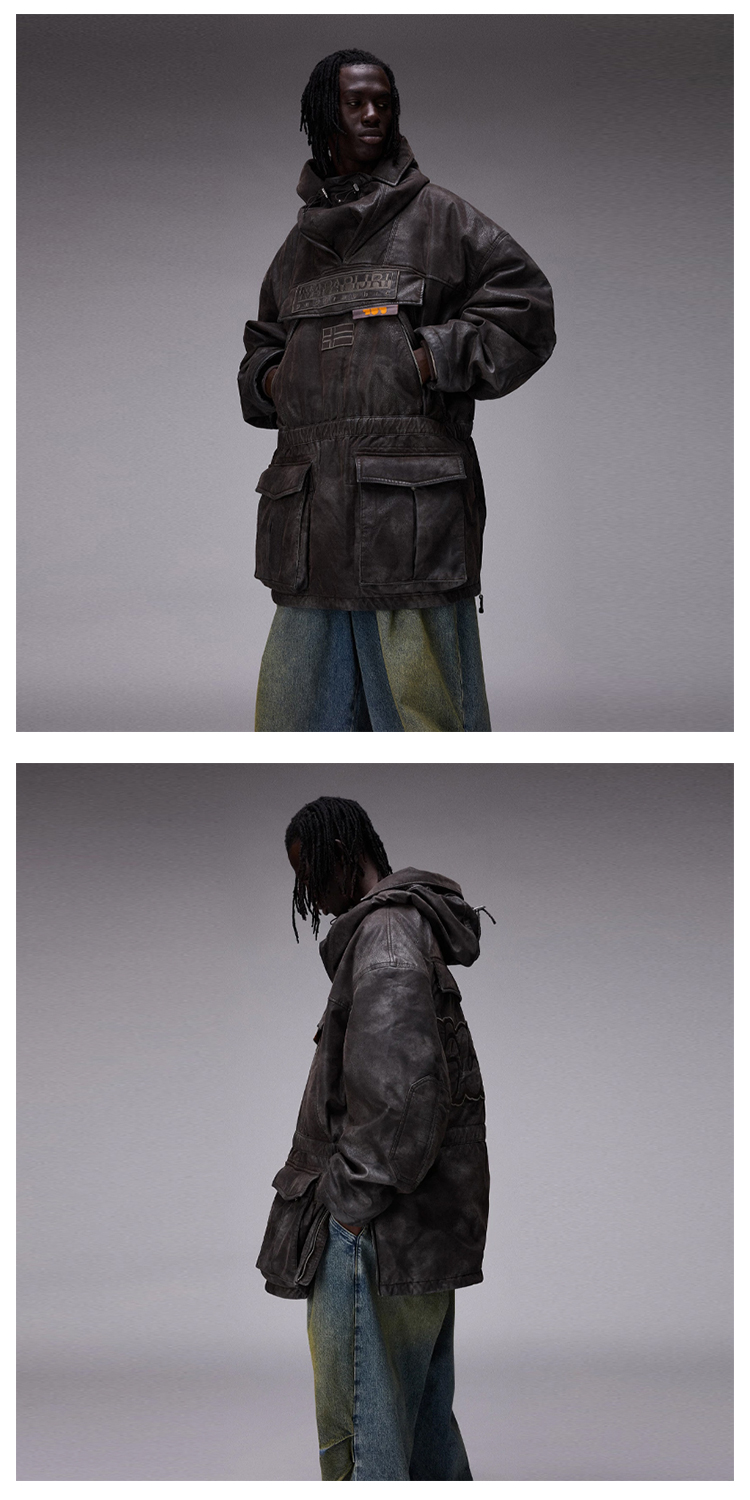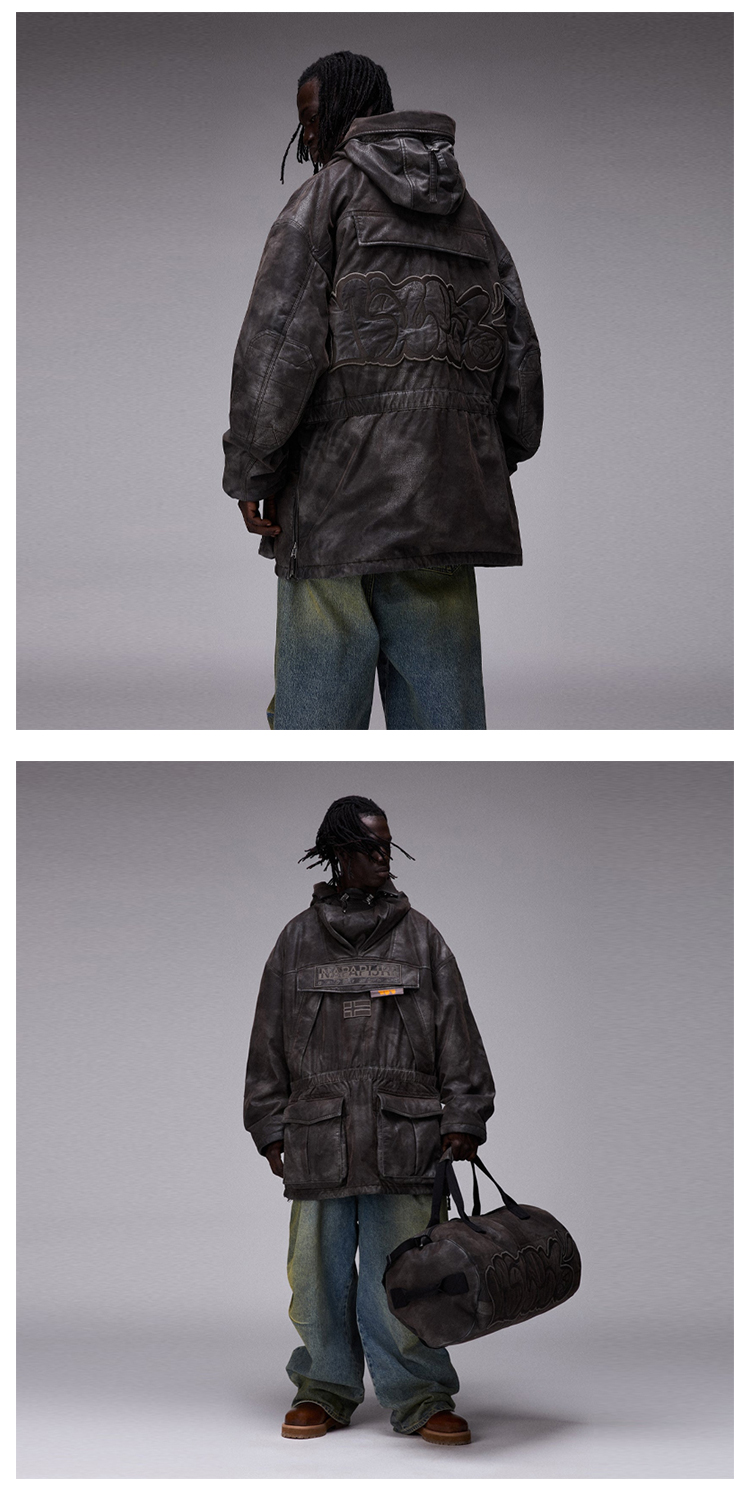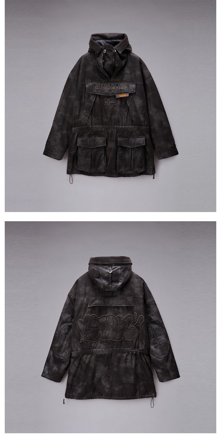 Napapijri 男士字母徽标 Skidoo PDF 防风连帽卫衣 黑灰色 NP0A8B9WFDY1