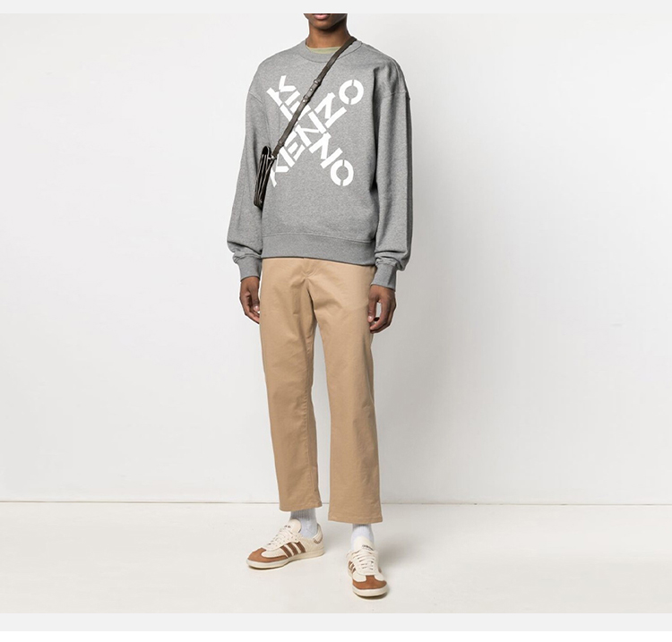 KENZO 高田贤三 男士灰色棉混纺logo印花棉质圆领卫衣 FA65 SW521 4MS 95