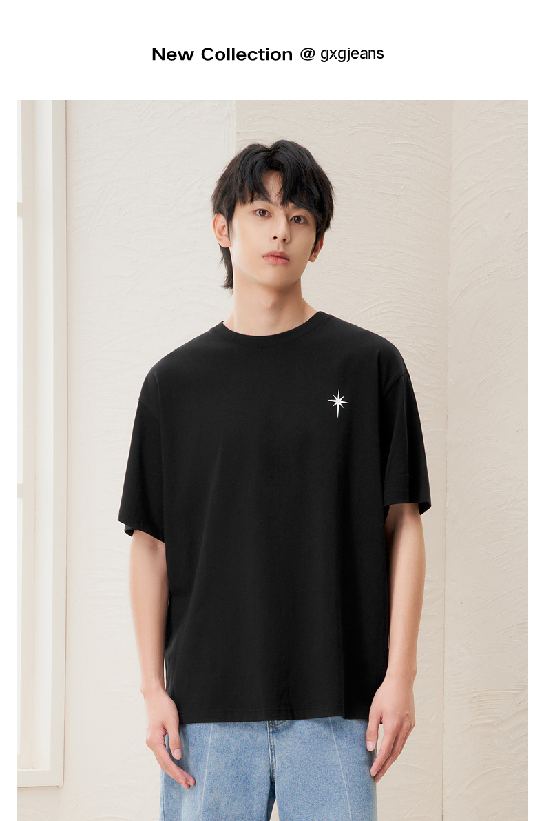 gxg.jeans男装2024年夏季热卖黑色哥特风印花设计圆领短袖T恤J24D442040