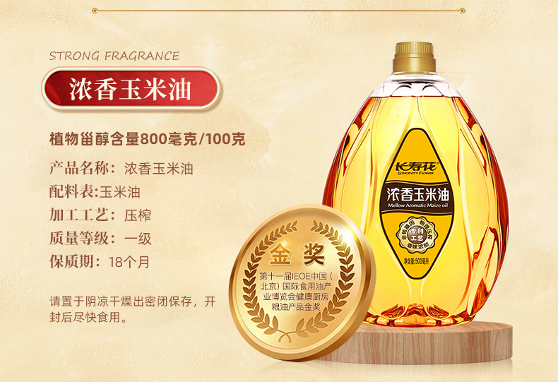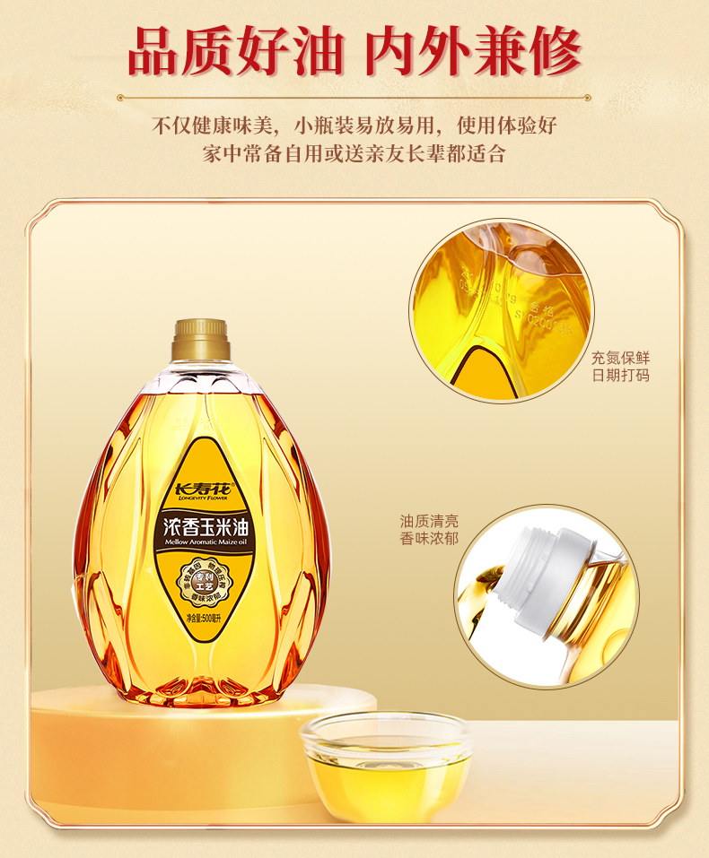 长寿花浓香玉米油500m*5小瓶体验装非转基因食用油植物油烘焙
