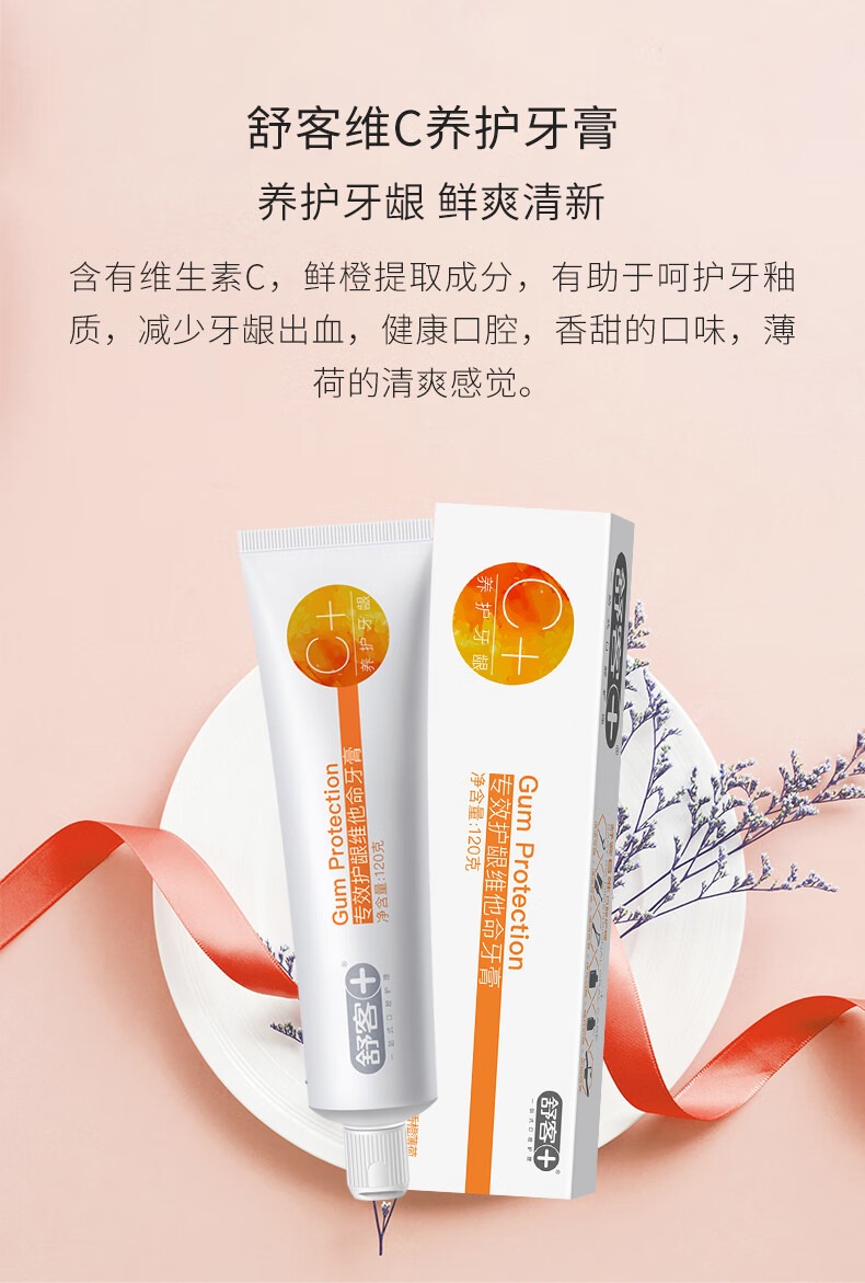 舒客青竹晶盐+维他命牙膏组合(薄荷+香橙)120g*2养护牙龈新老随机发