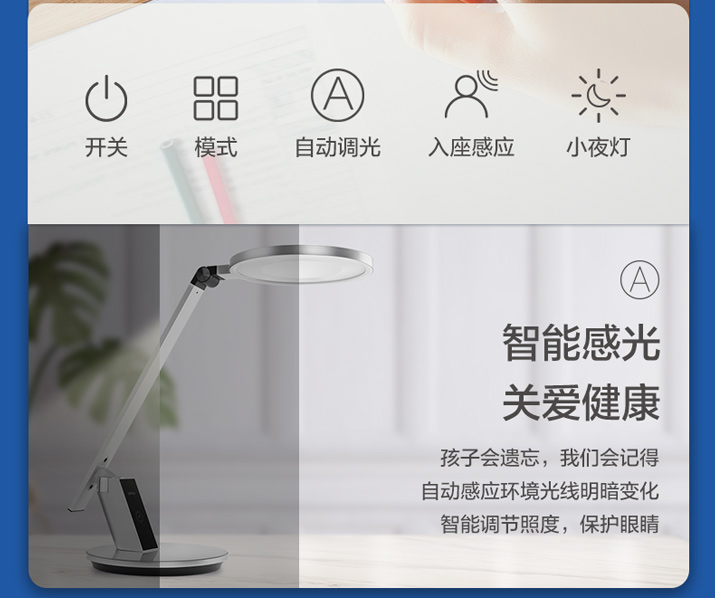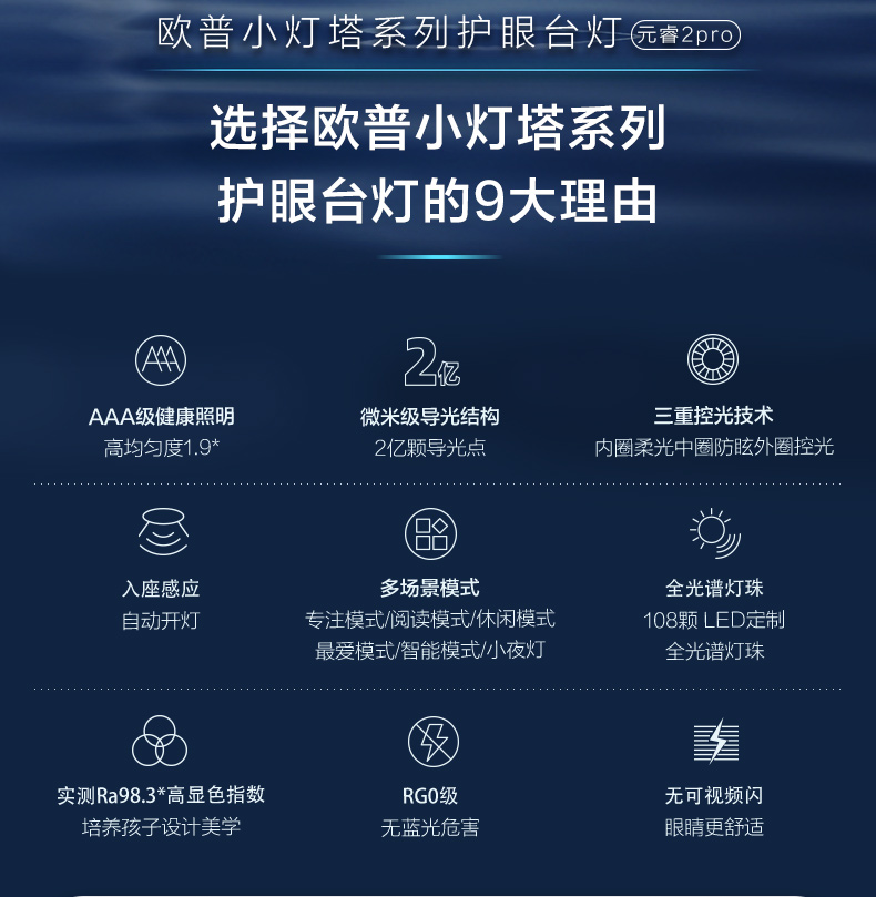 欧普小灯塔(OPPLE)AAA级护眼近视防控台灯儿童书桌学习专用学生写字阅读圆形元睿2Pro
