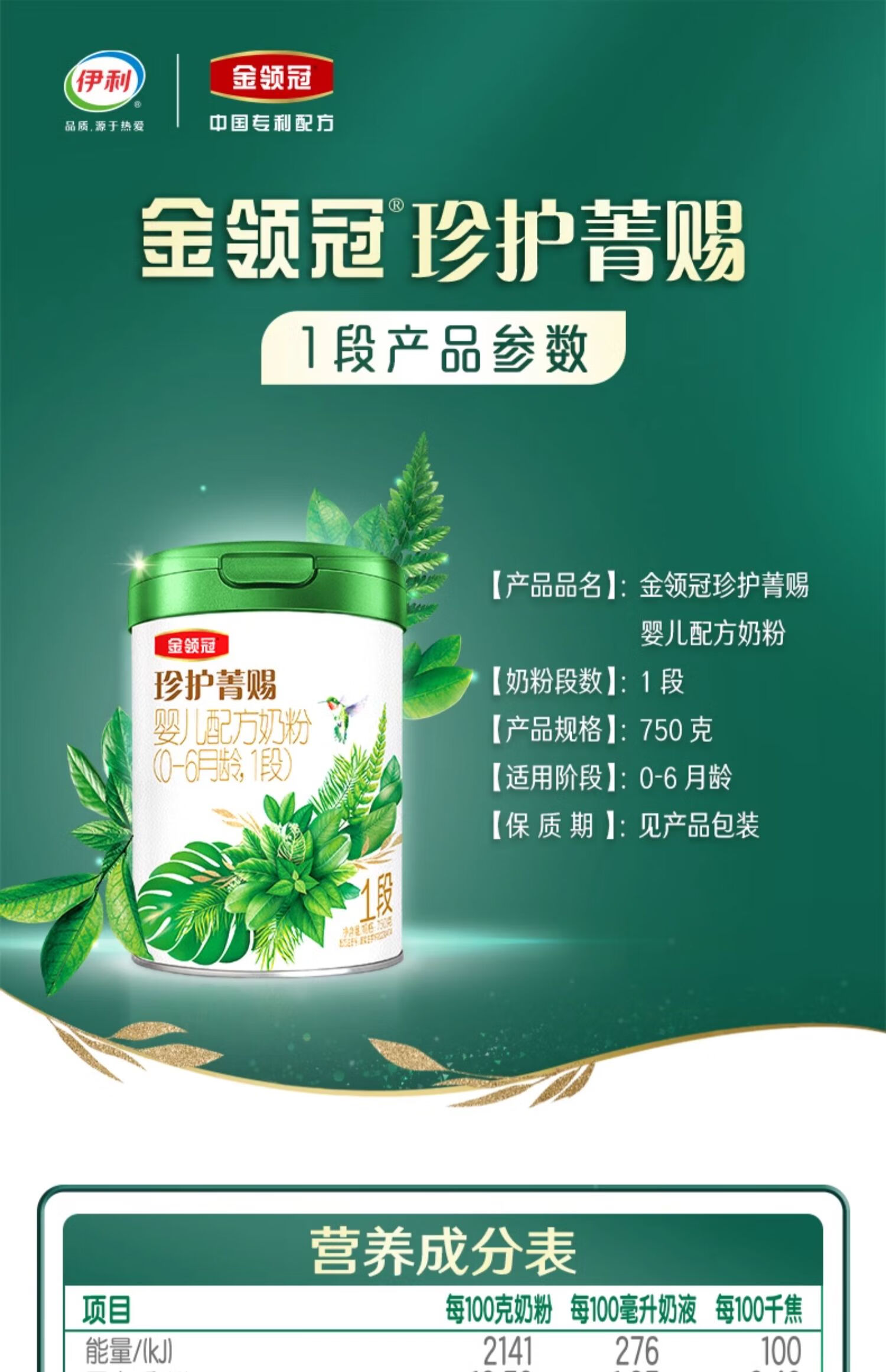 【整理6罐】伊利金领冠珍护菁赐1段婴儿配方奶粉750g/YIL-640792