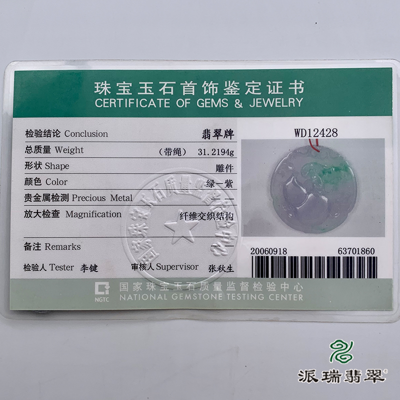 派瑞翡翠 翡翠挂件 糯种 绿色