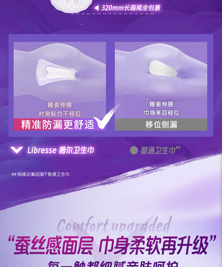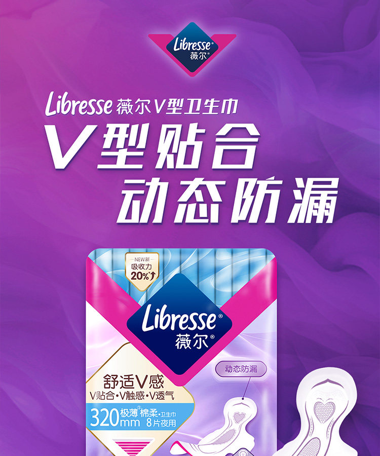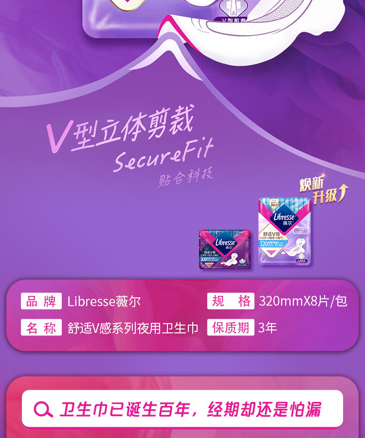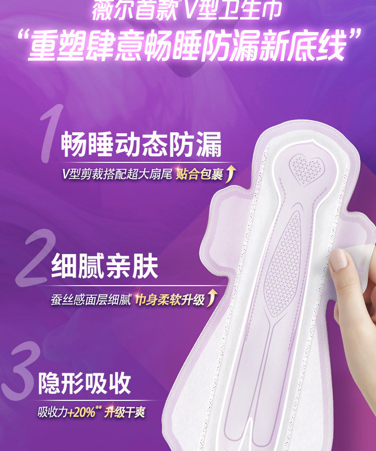 薇尔 舒适V感夜用极薄棉柔卫生巾320mm*8片