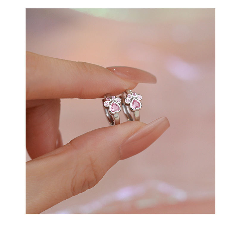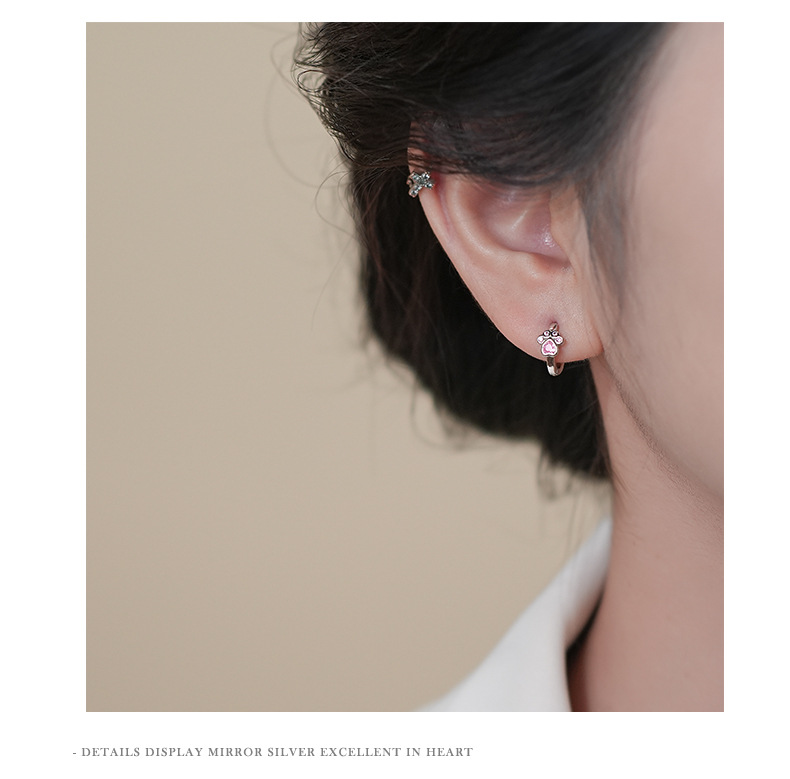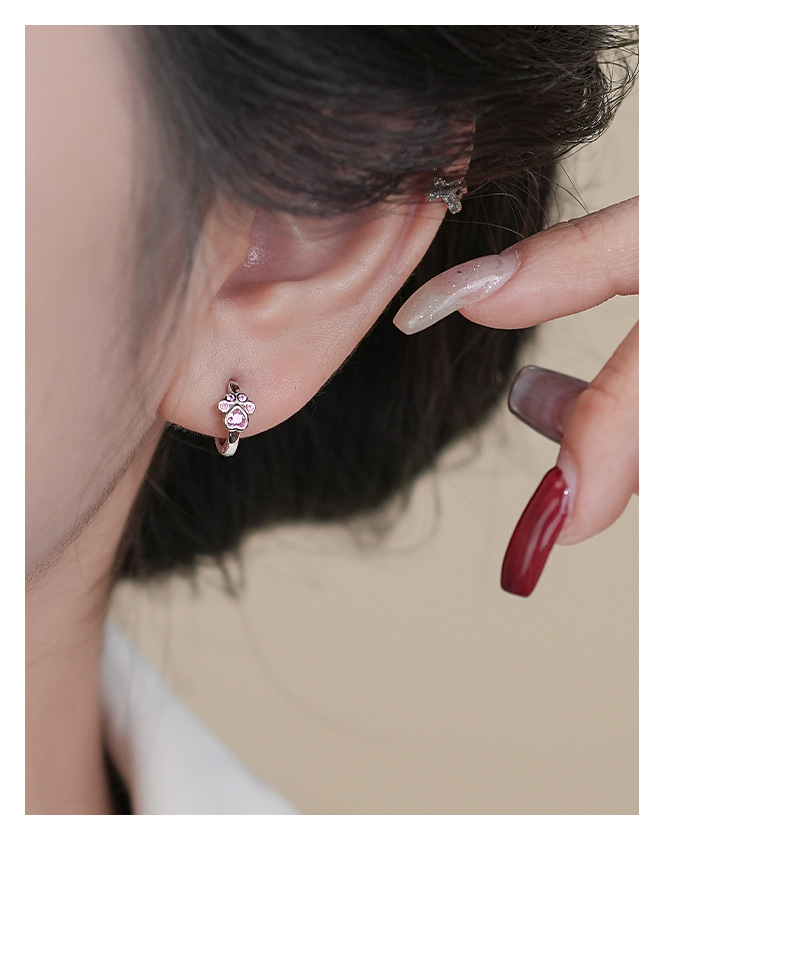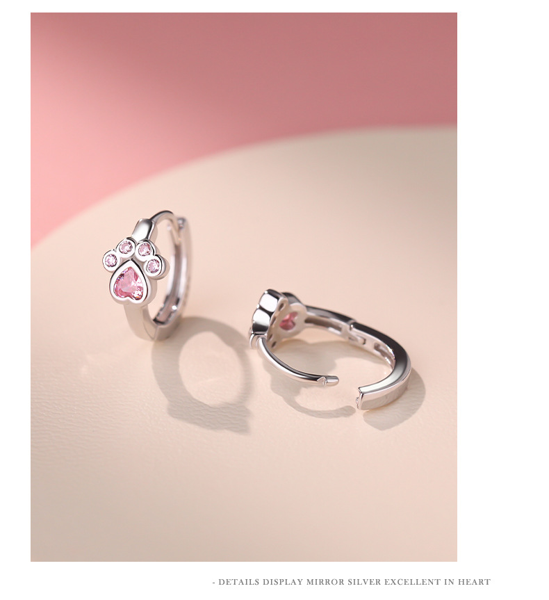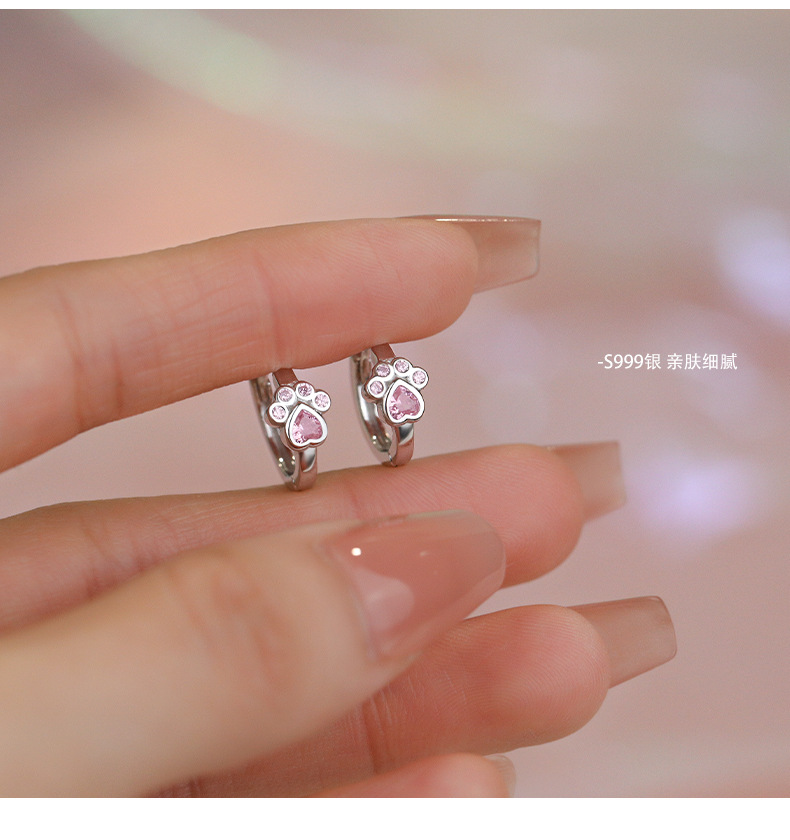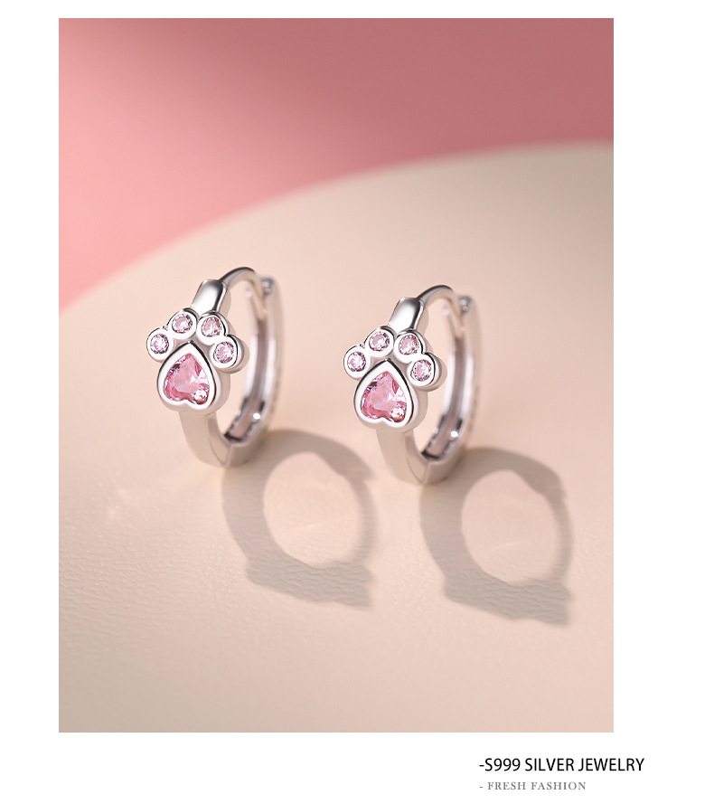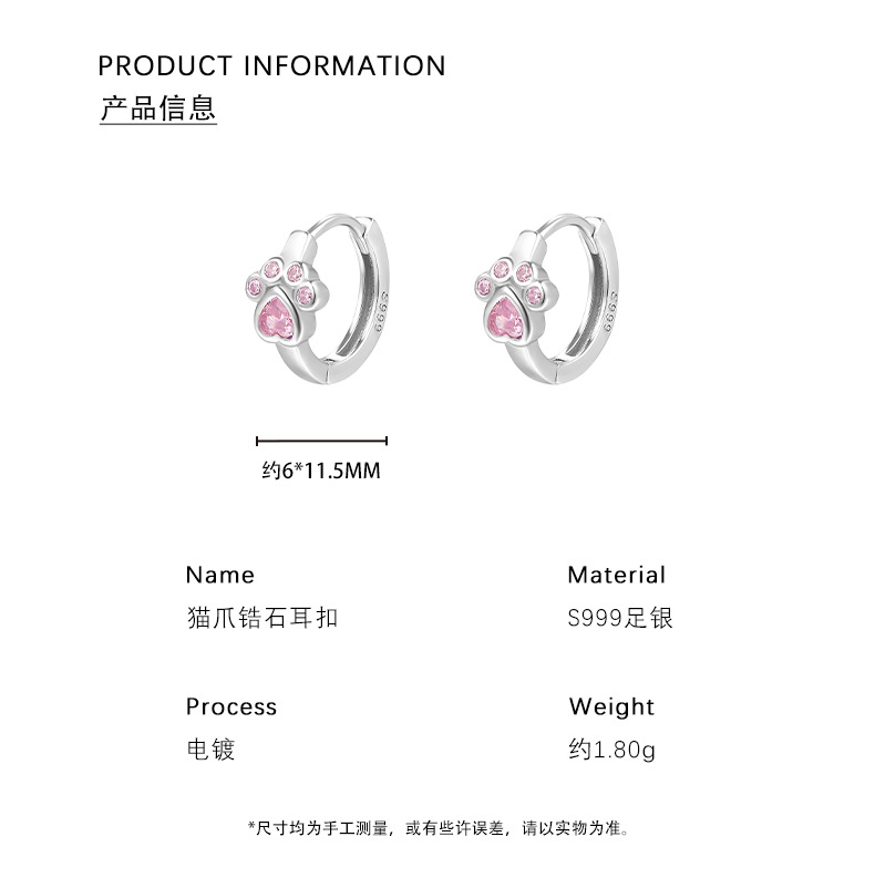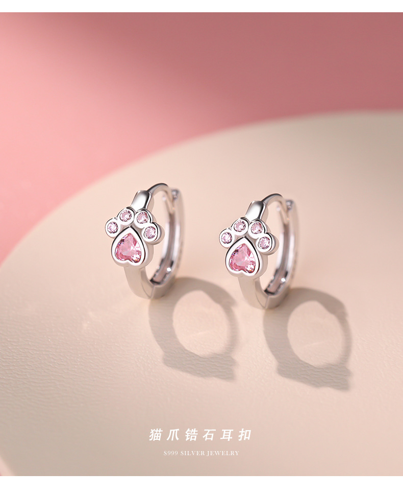 【萌萌猫爪】s999纯银可爱萌宠猫爪锆石耳环【YXS-E5243】