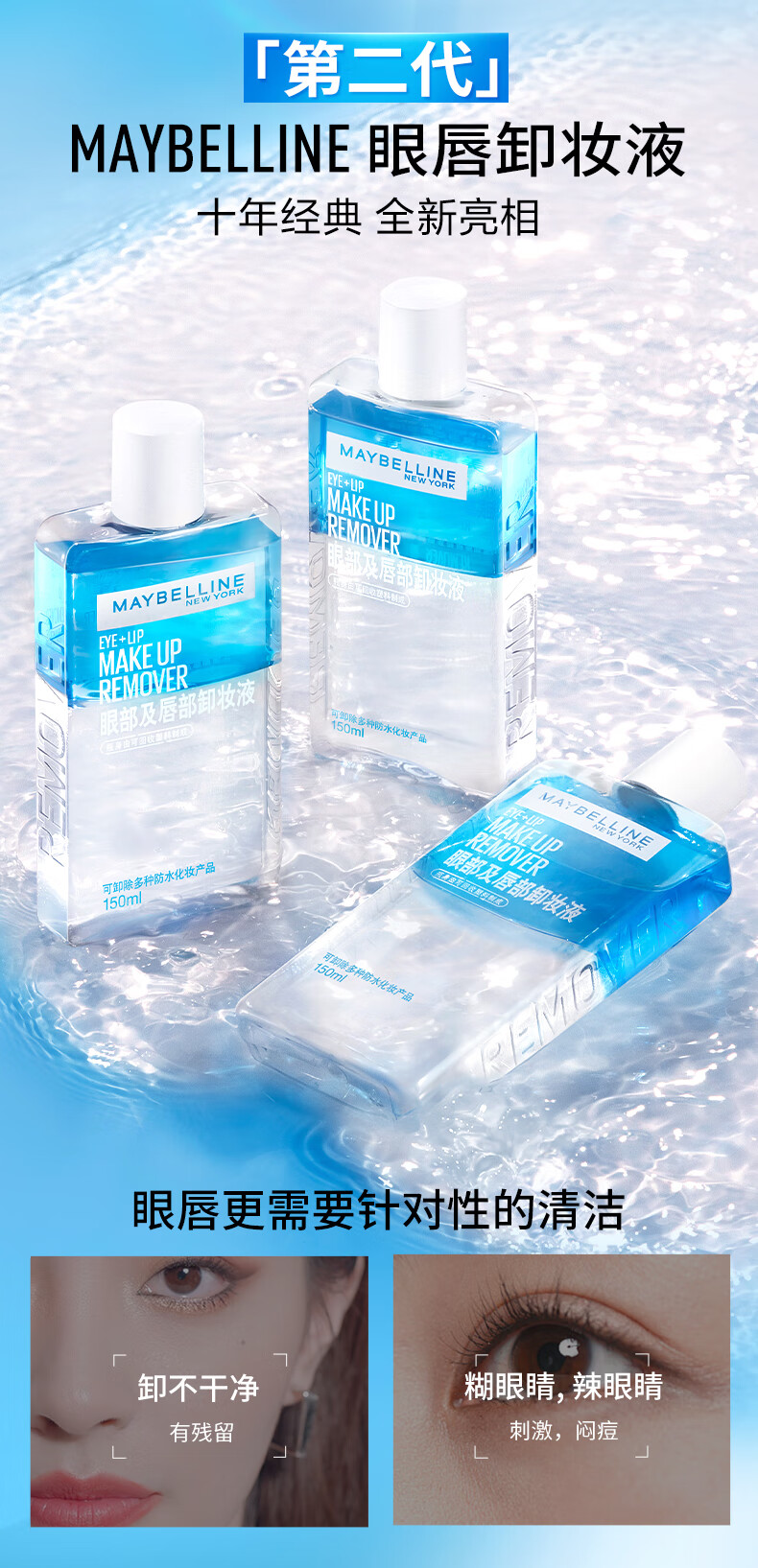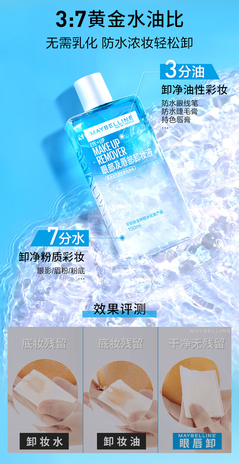 美宝莲眼部及唇部卸妆液 150ml眼 唇卸妆 全脸可卸