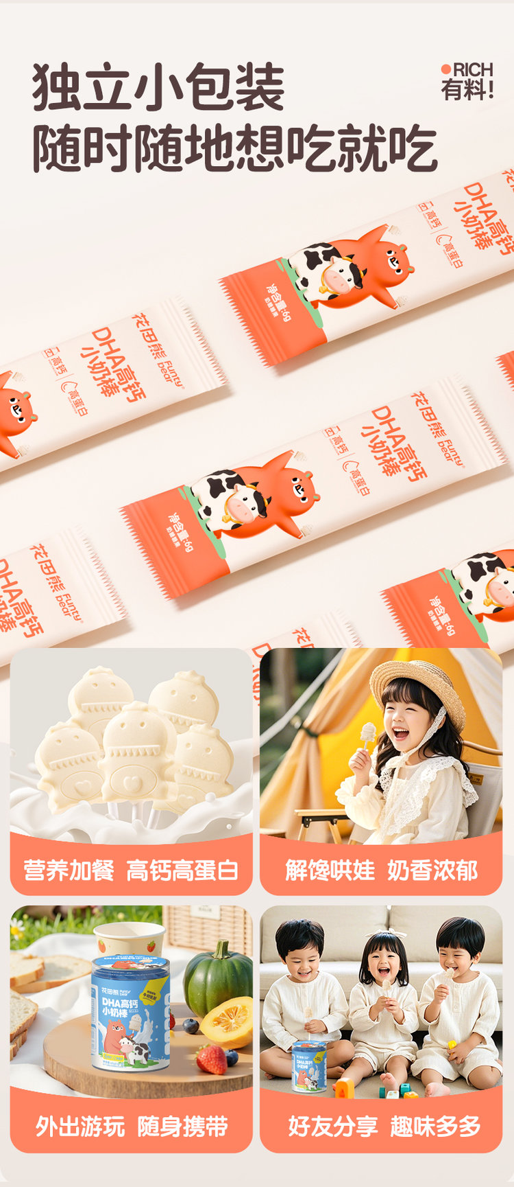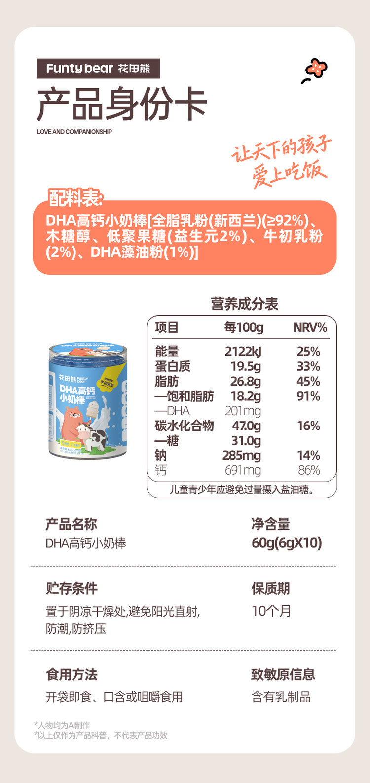 花田熊DHA高钙小奶棒/1桶(6g*10支)
