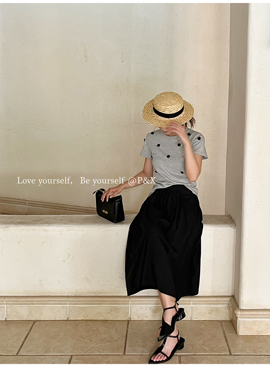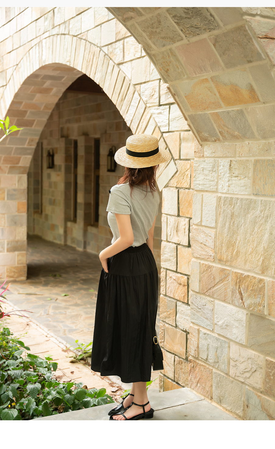 P&X设计师女装夏季 显瘦A字松紧腰纯色半身长裙 824207671 黑色