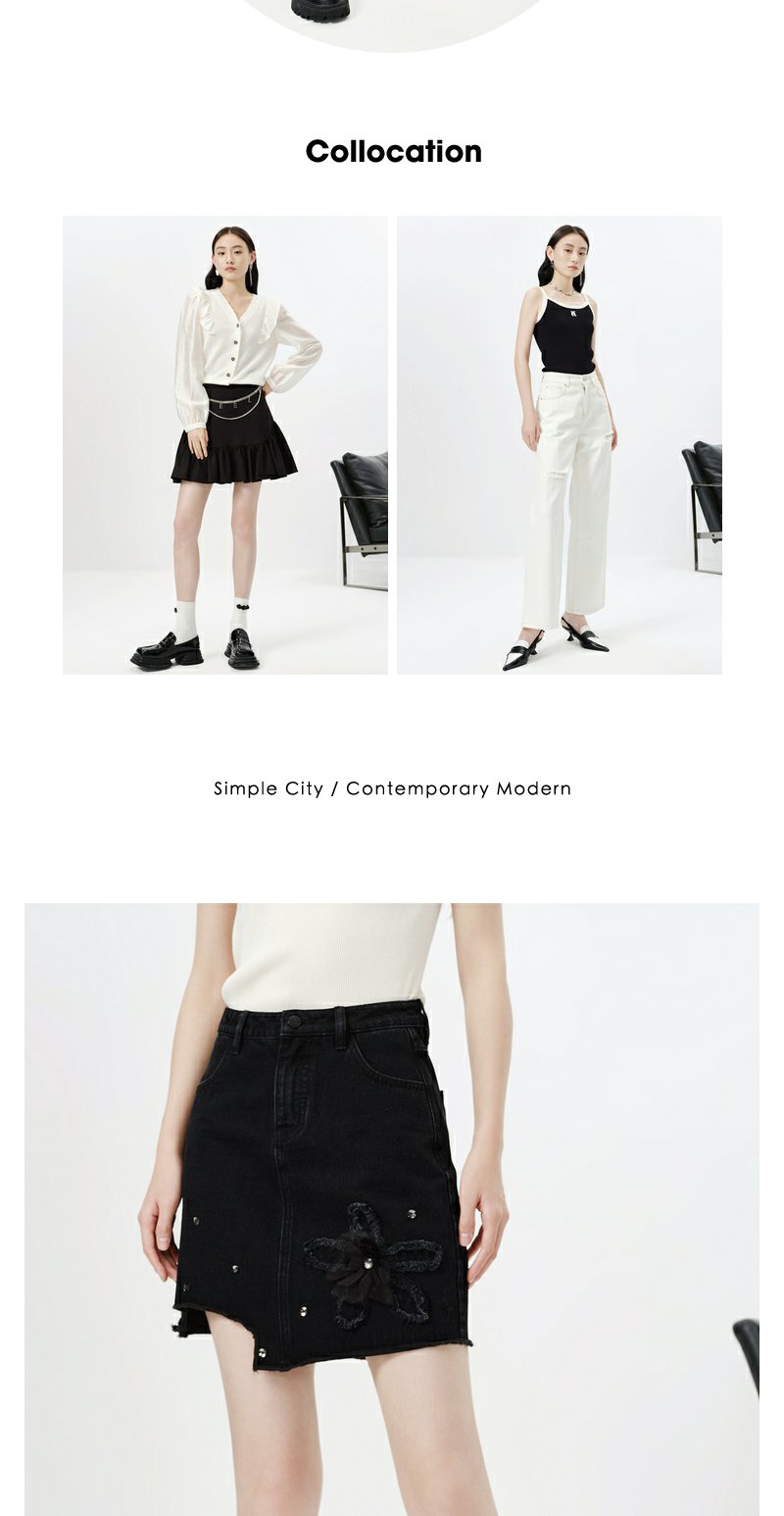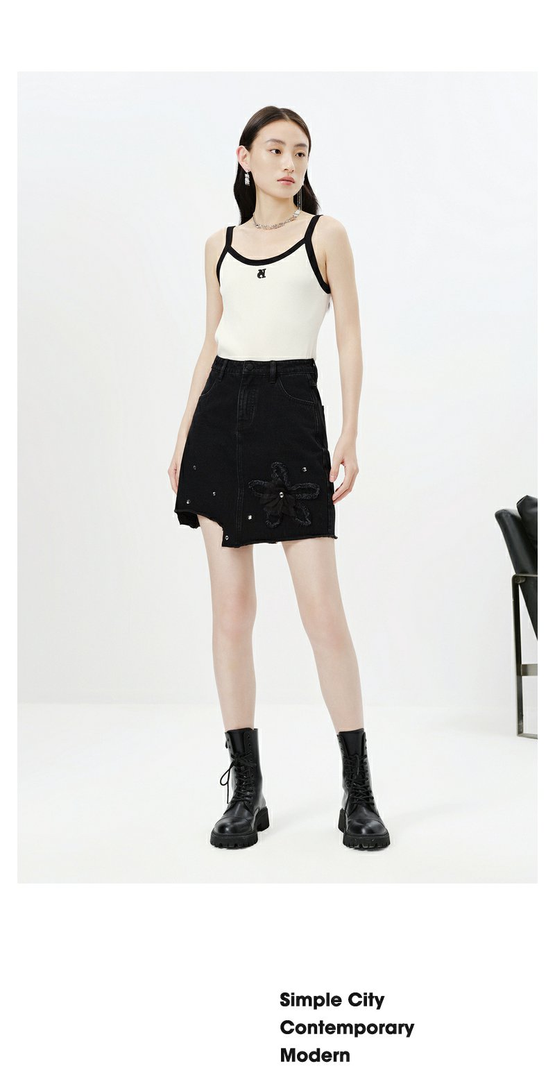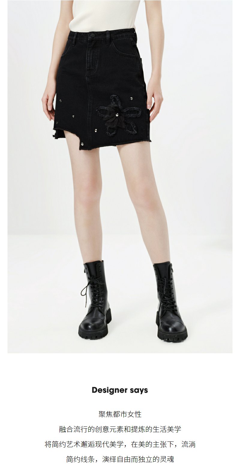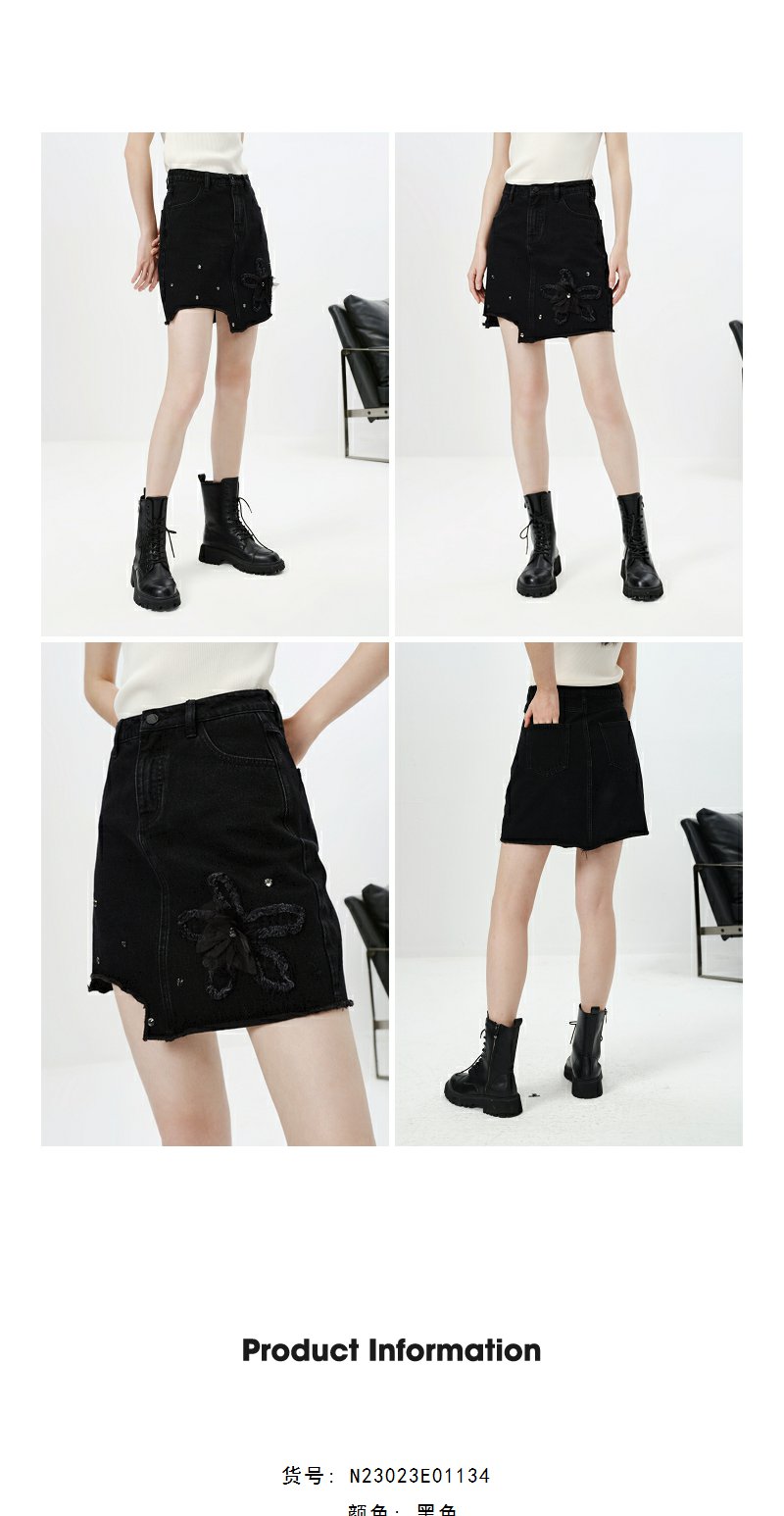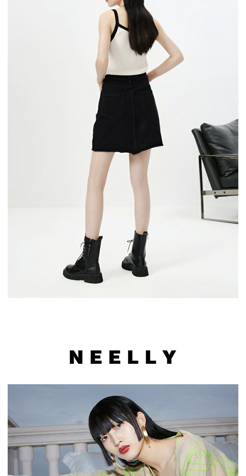 NEELLY纳俪商场同款春季新款牛仔半身裙女设计感A字裙时尚短裙N23023E01134