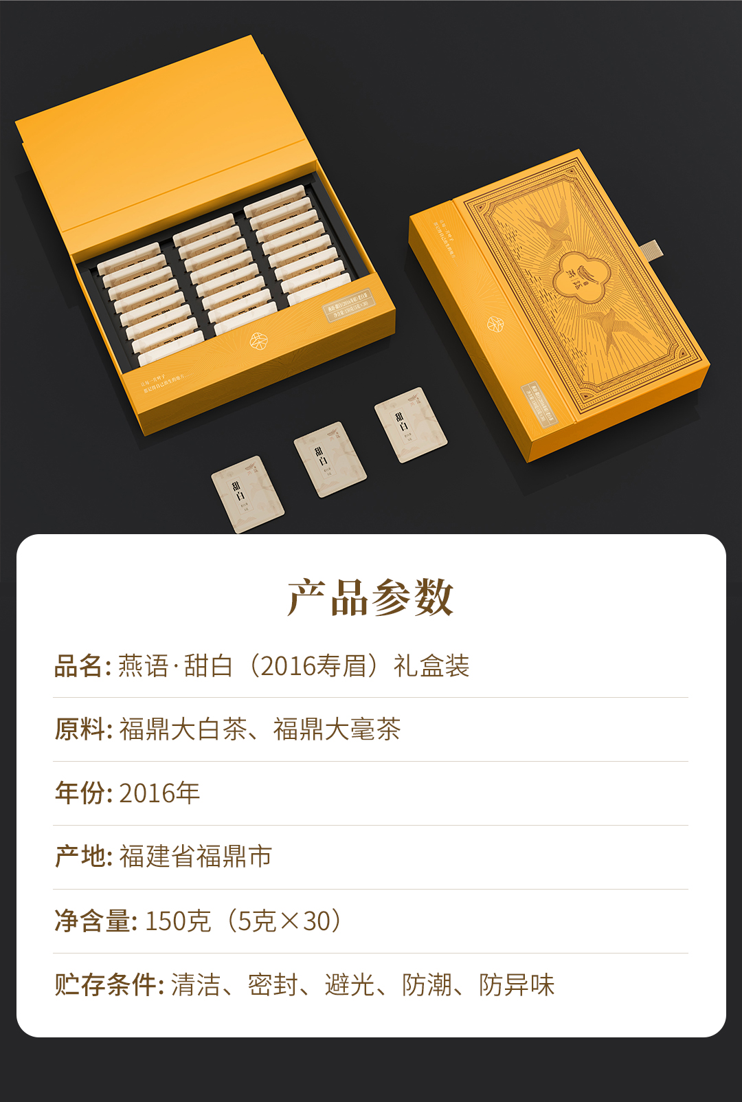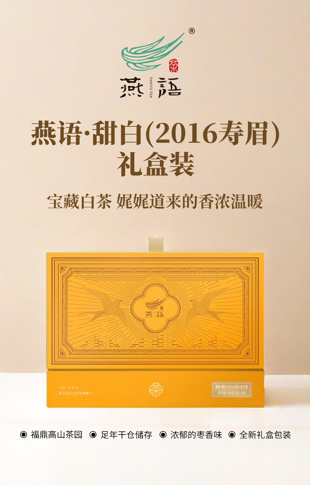燕语甜白(2016寿眉)老白茶礼盒装150g