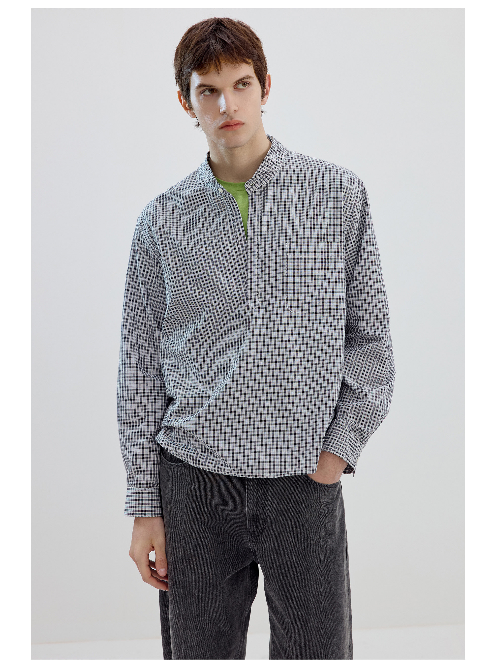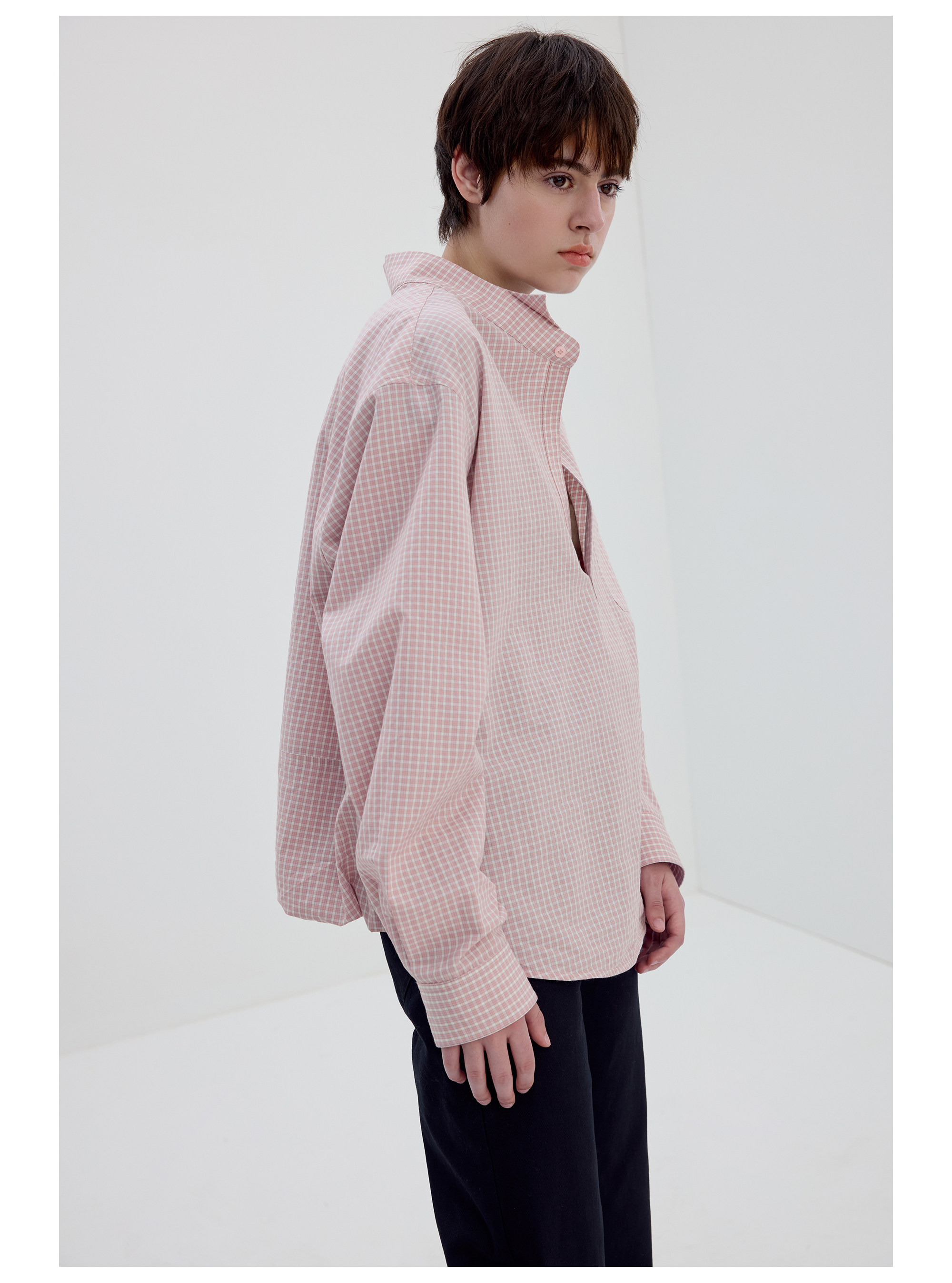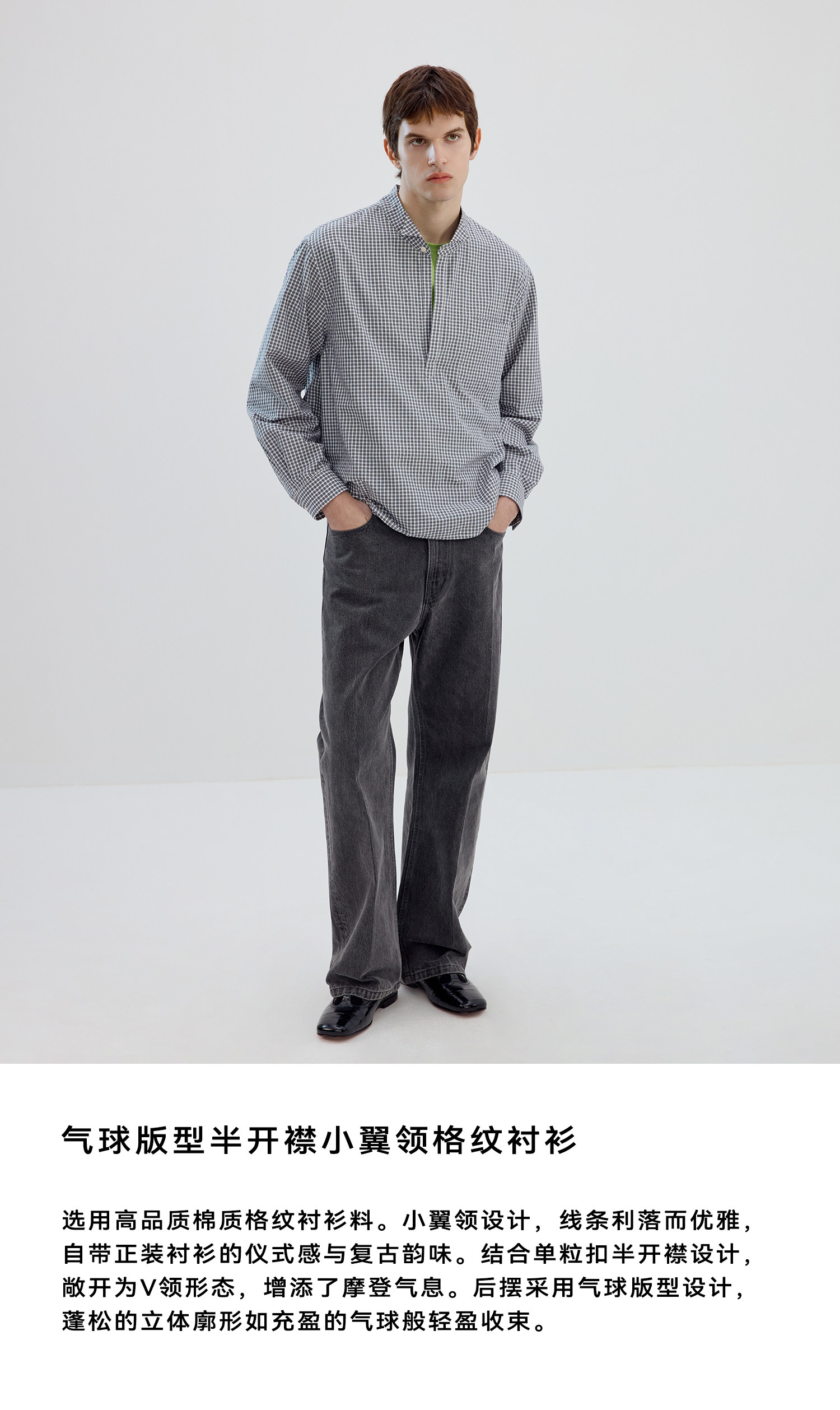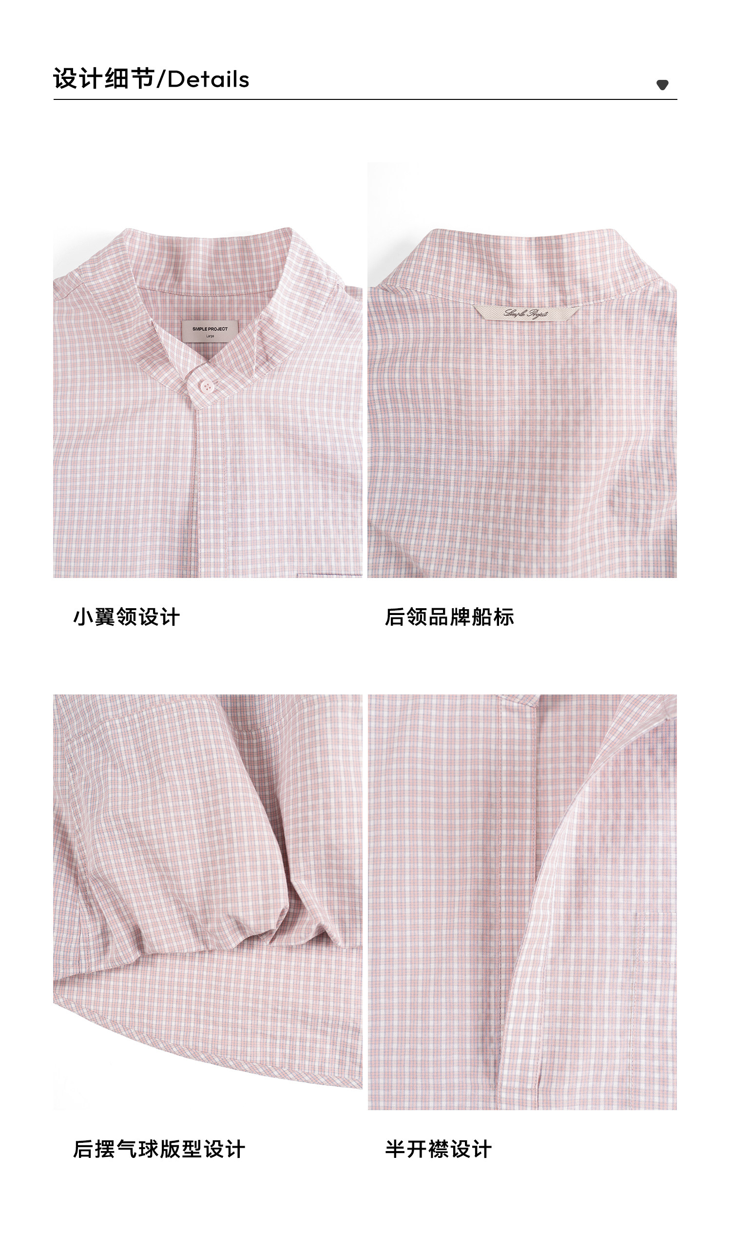 Simple Project/Y2634/气球版型半开襟小翼领格纹衬衫